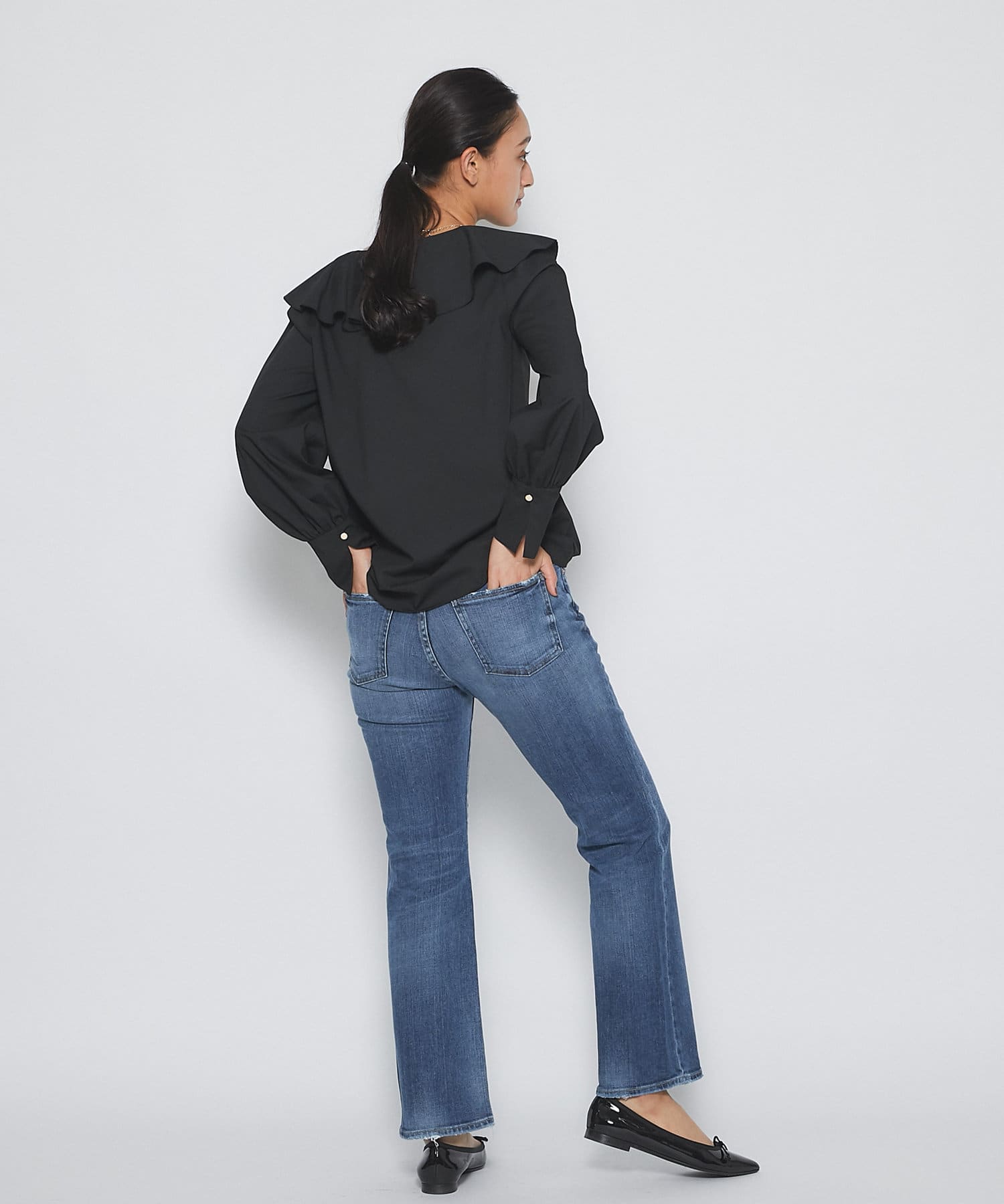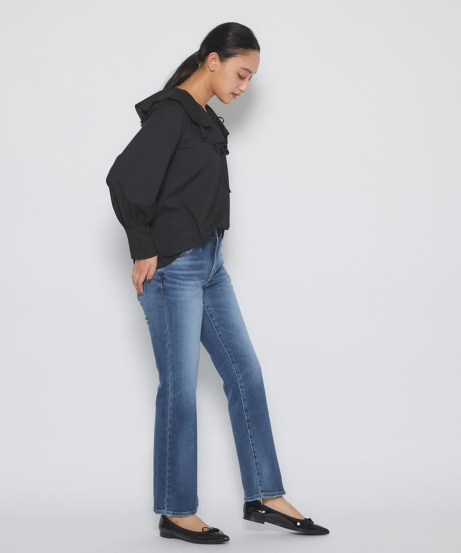 控えめなフレアなので、初めてのフレアシルエットとしても取り入れやすく、ストレートデニム感覚で穿いていただけます。