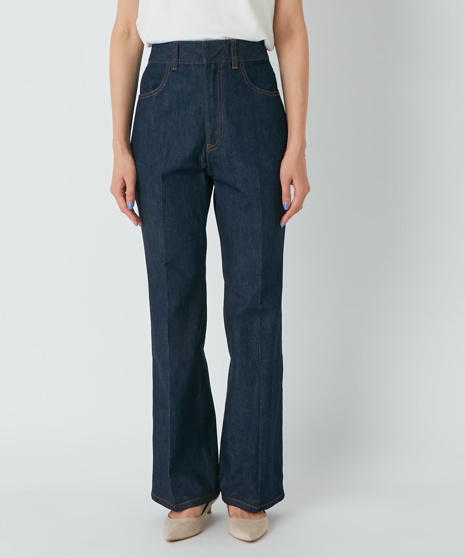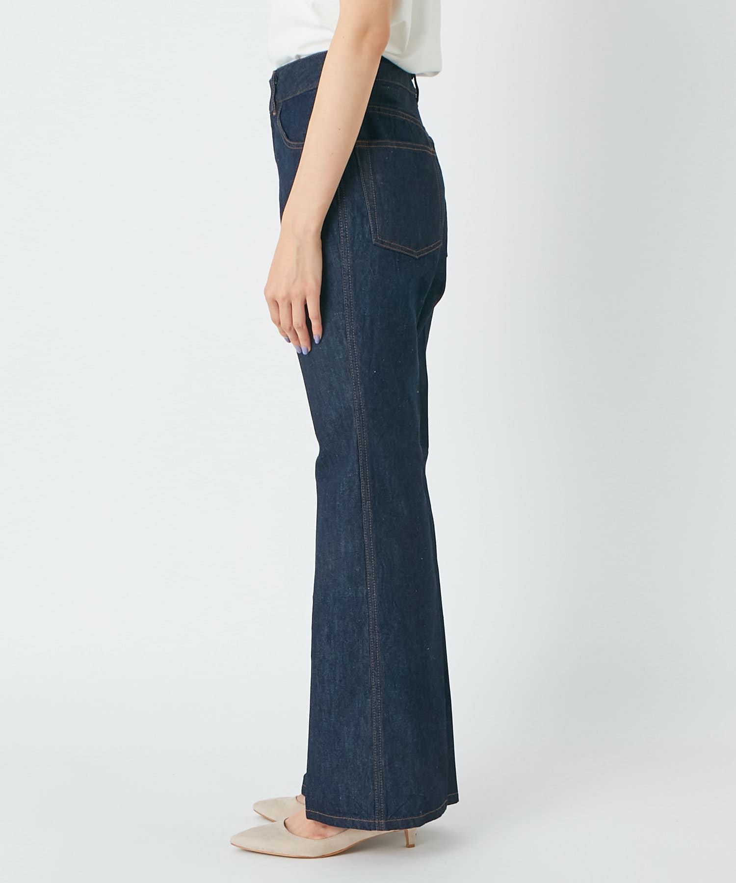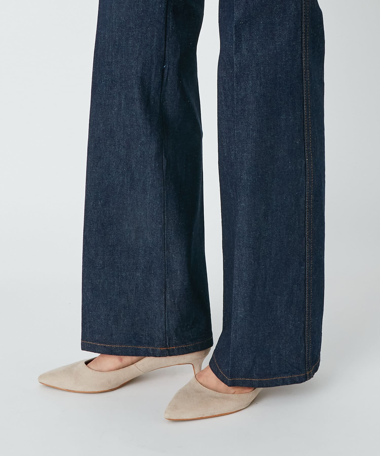 【Iラインで美脚効果・洗える・カレンテージ 】センタープレスフレアデニム