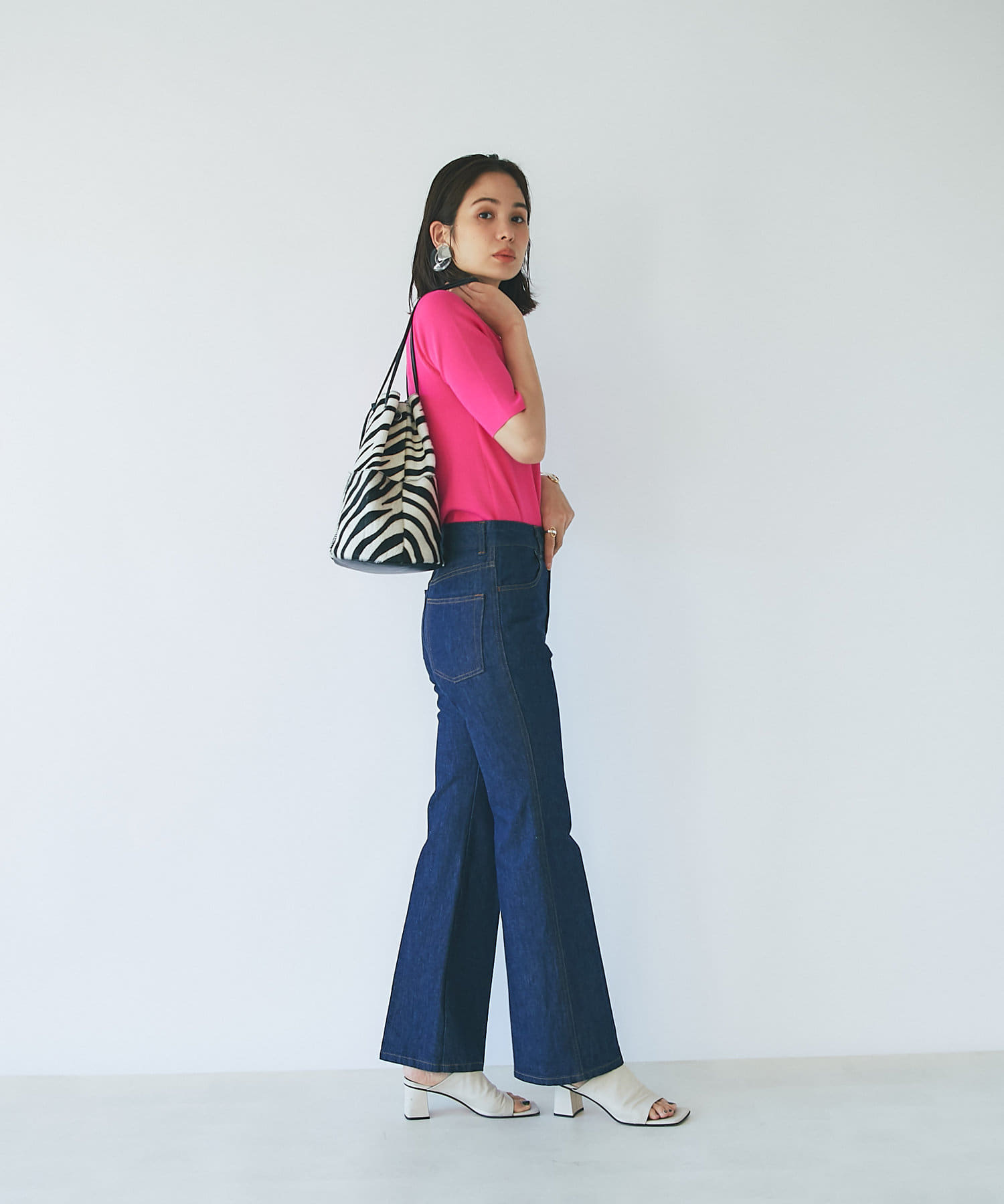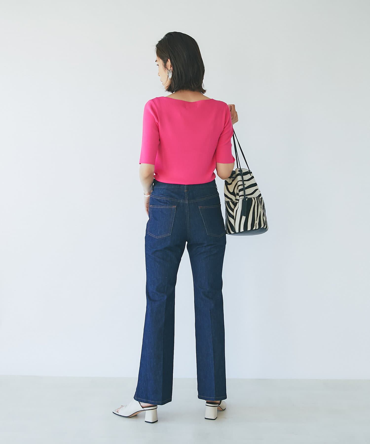 オーバーサイズのカットソーやニットにも合わせやすいのでおすすめです。