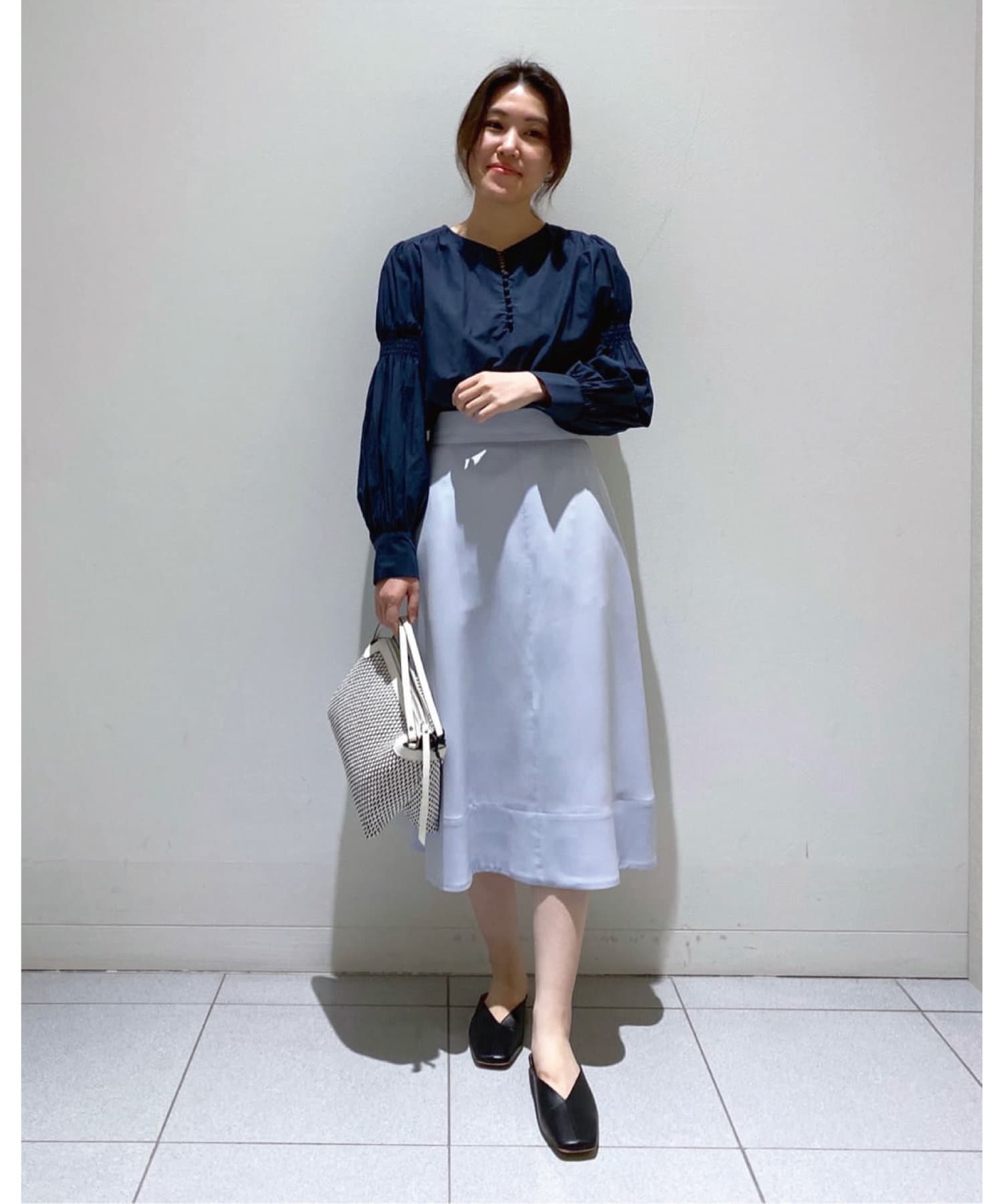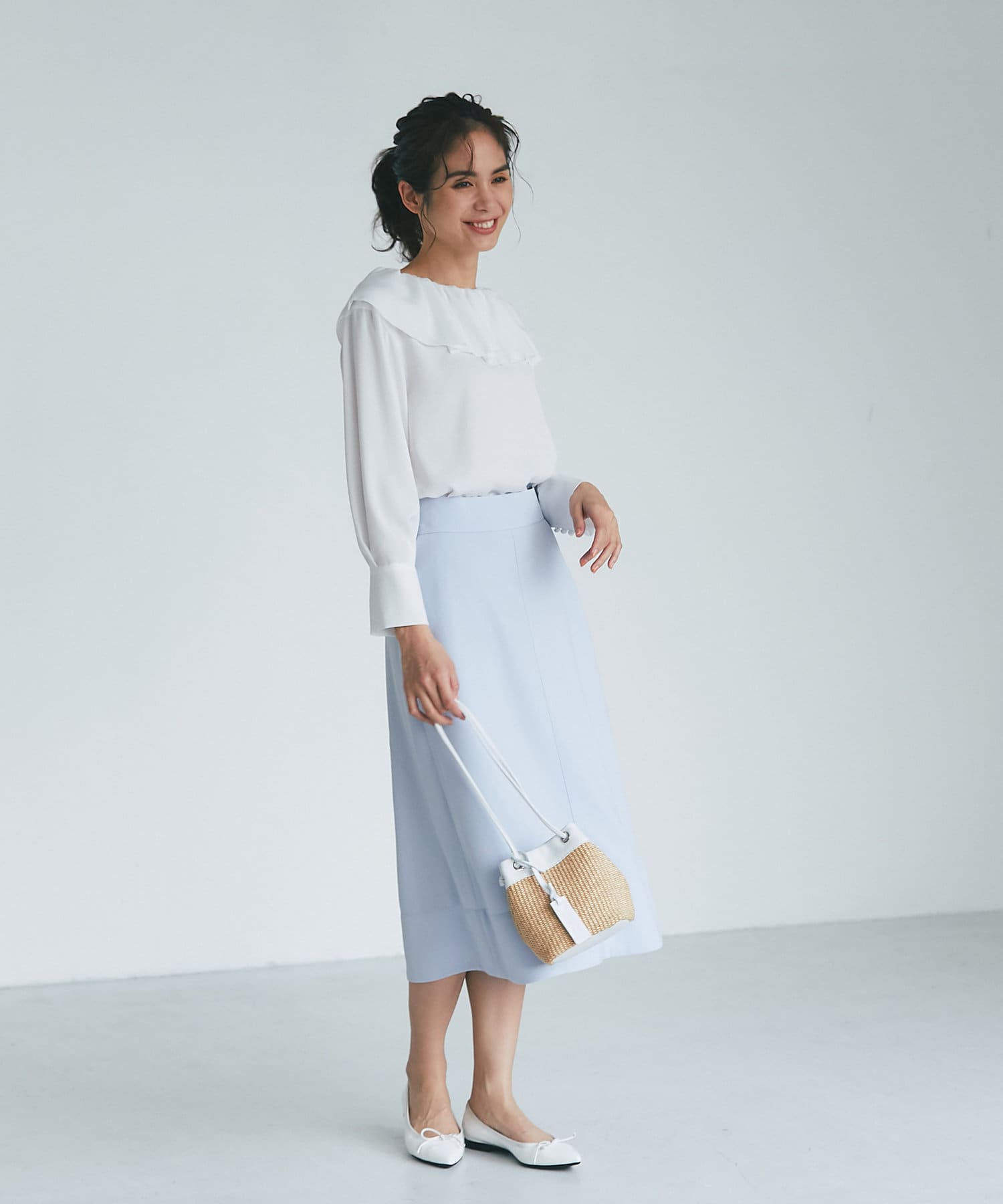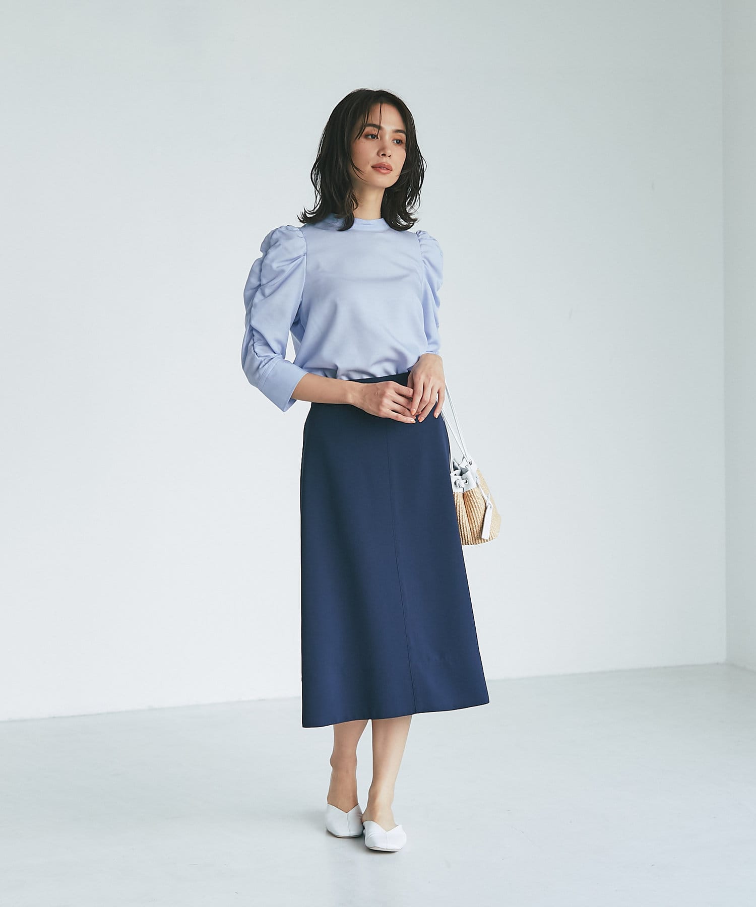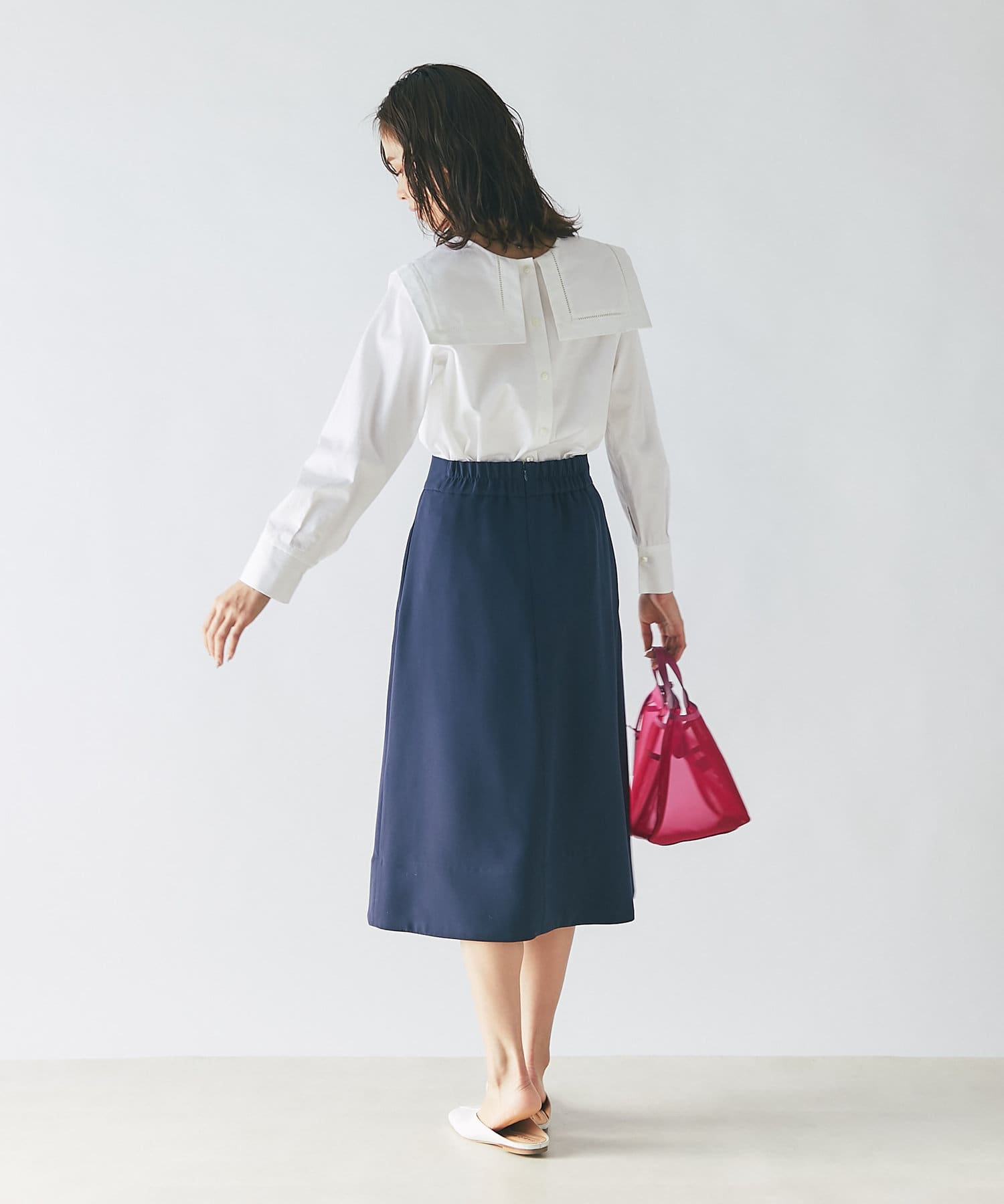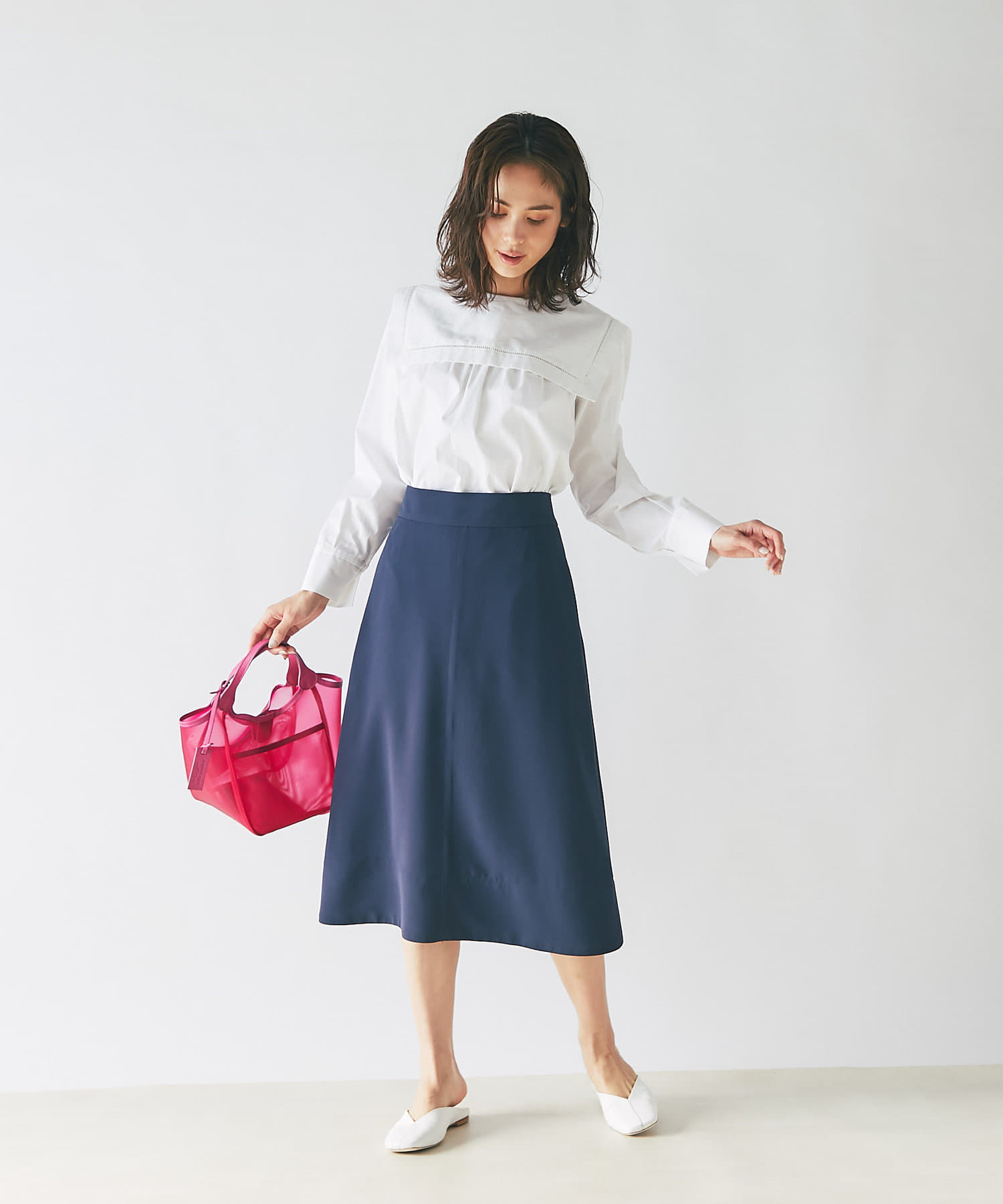 オンスタイルにも使いやすいきれいめスカートなので、きちんと感のあるブラウスなどにもおすすめです。
