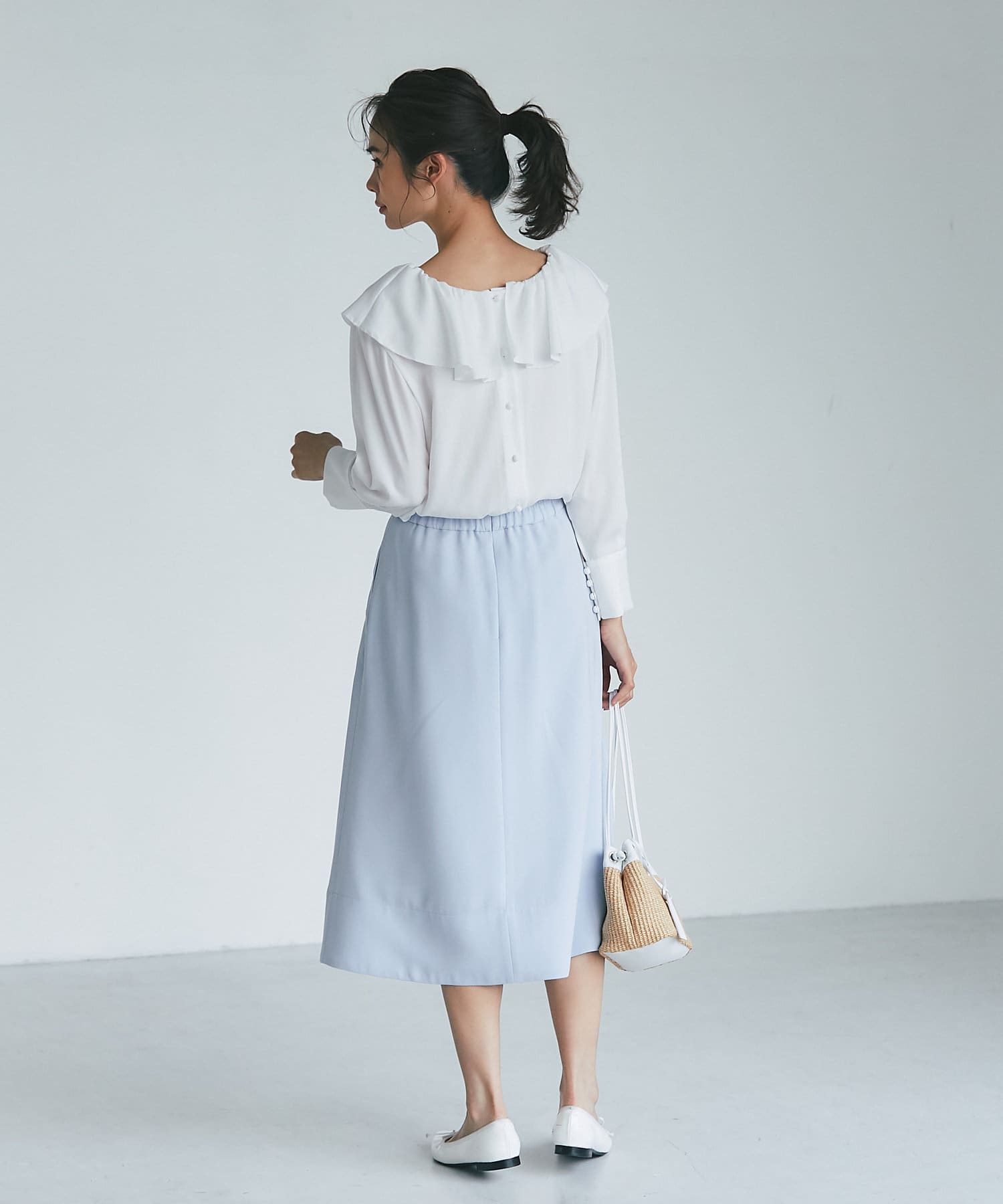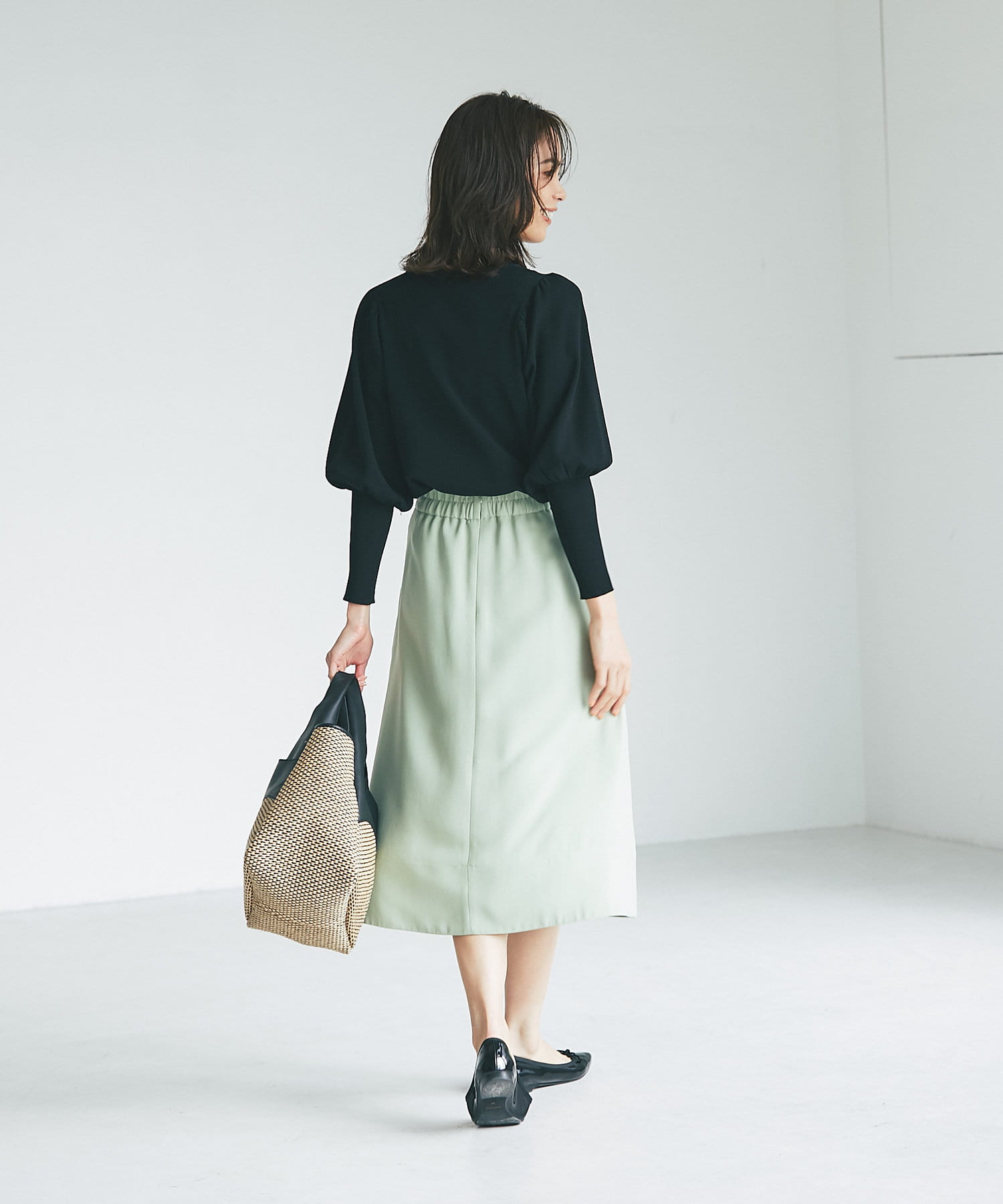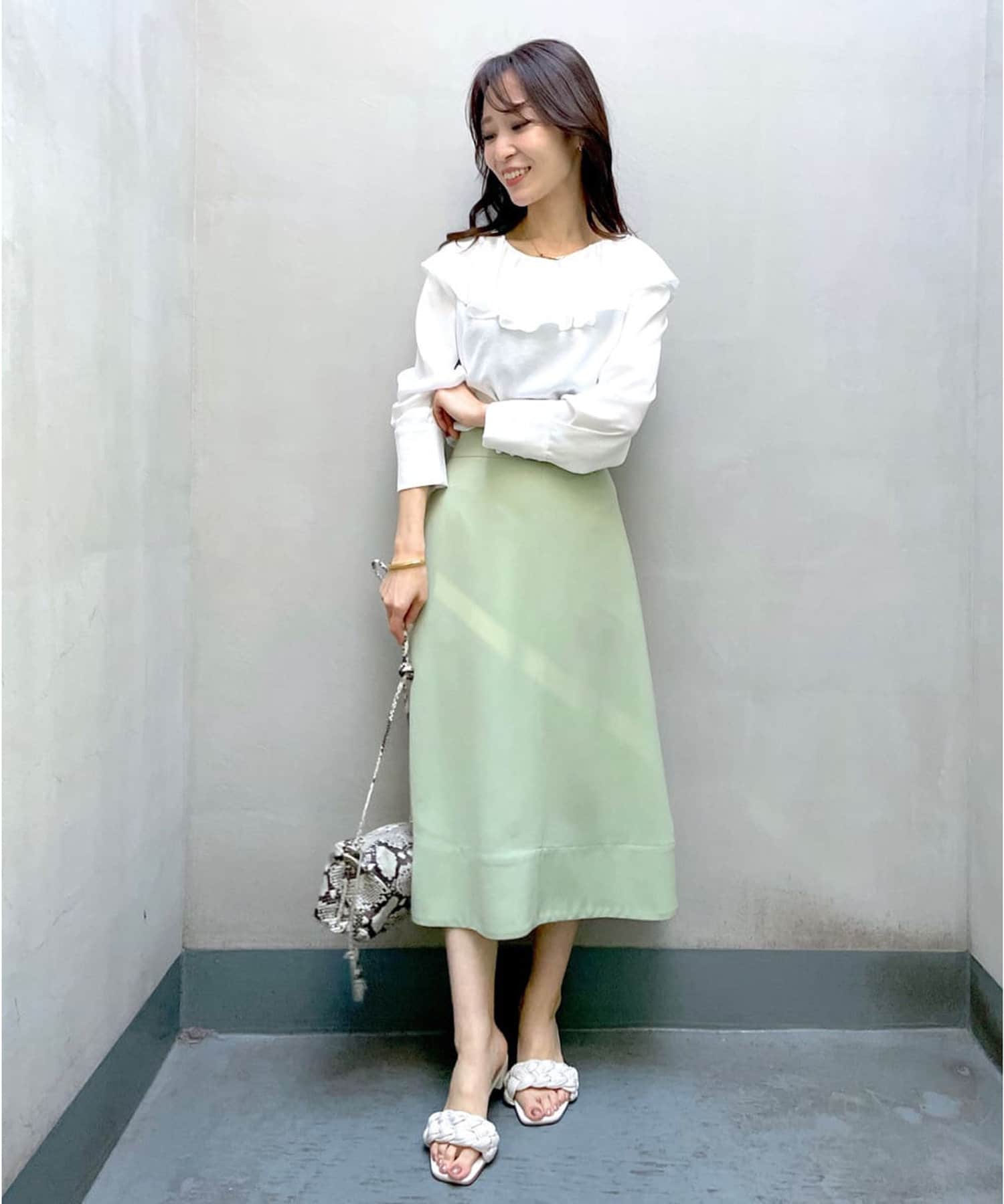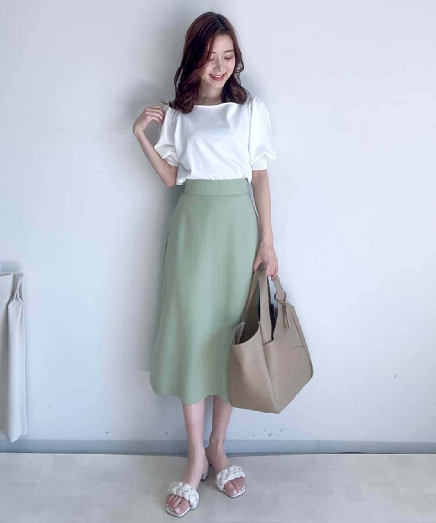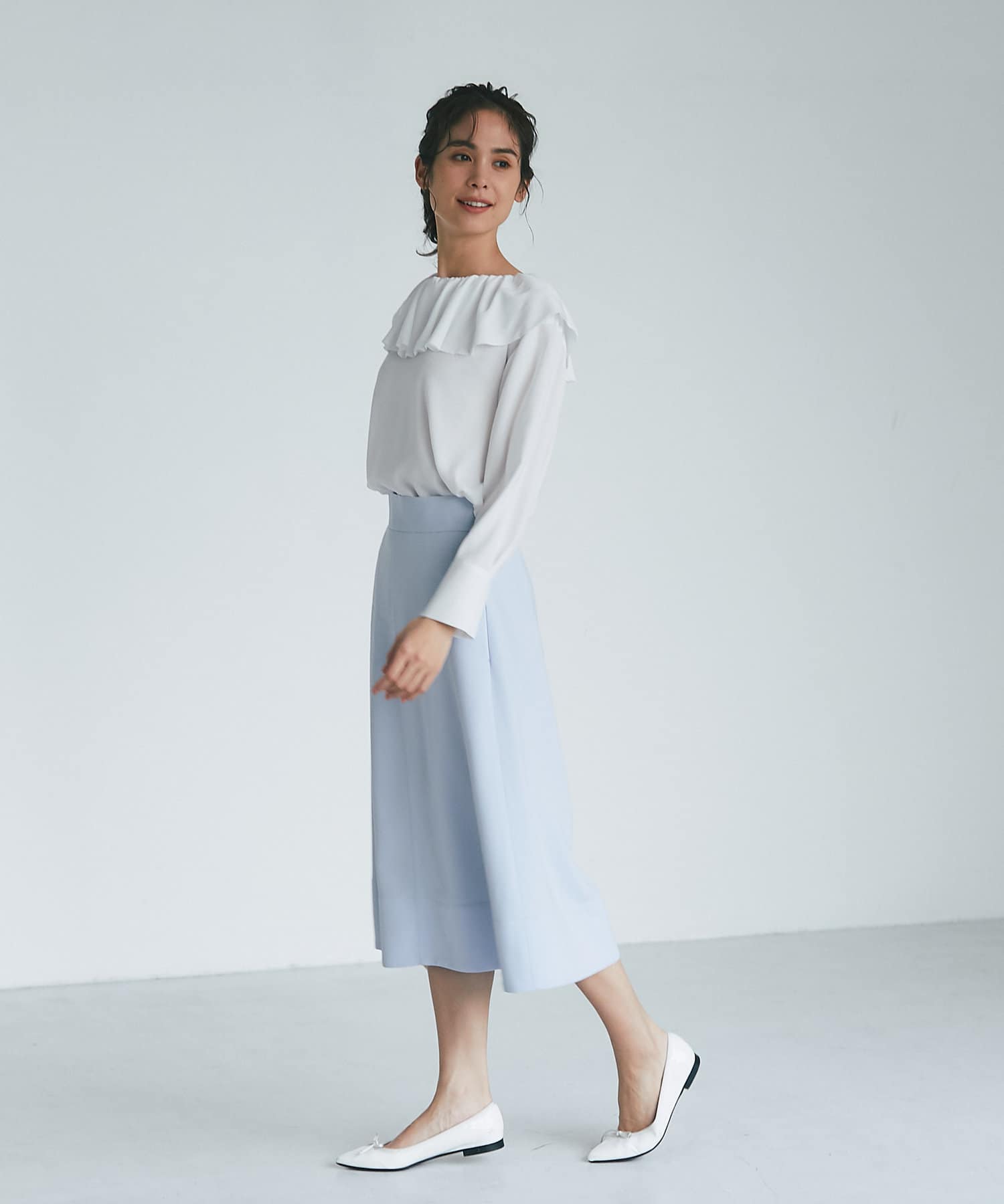 オンスタイルにも使いやすいきれいめスカートなので、きちんと感のあるブラウスなどにもおすすめです。