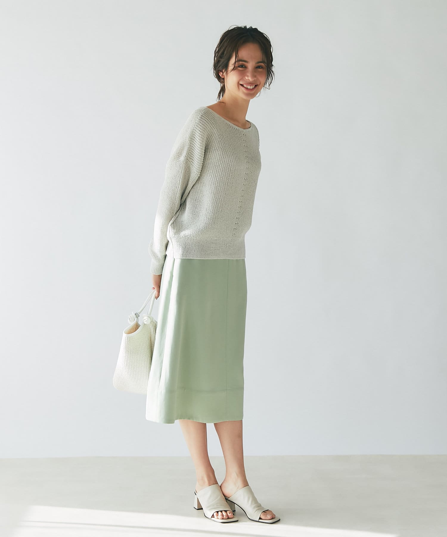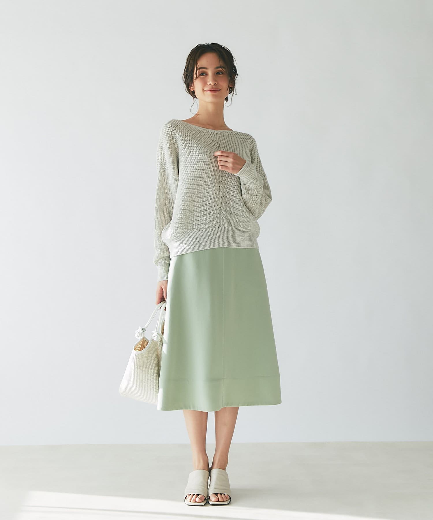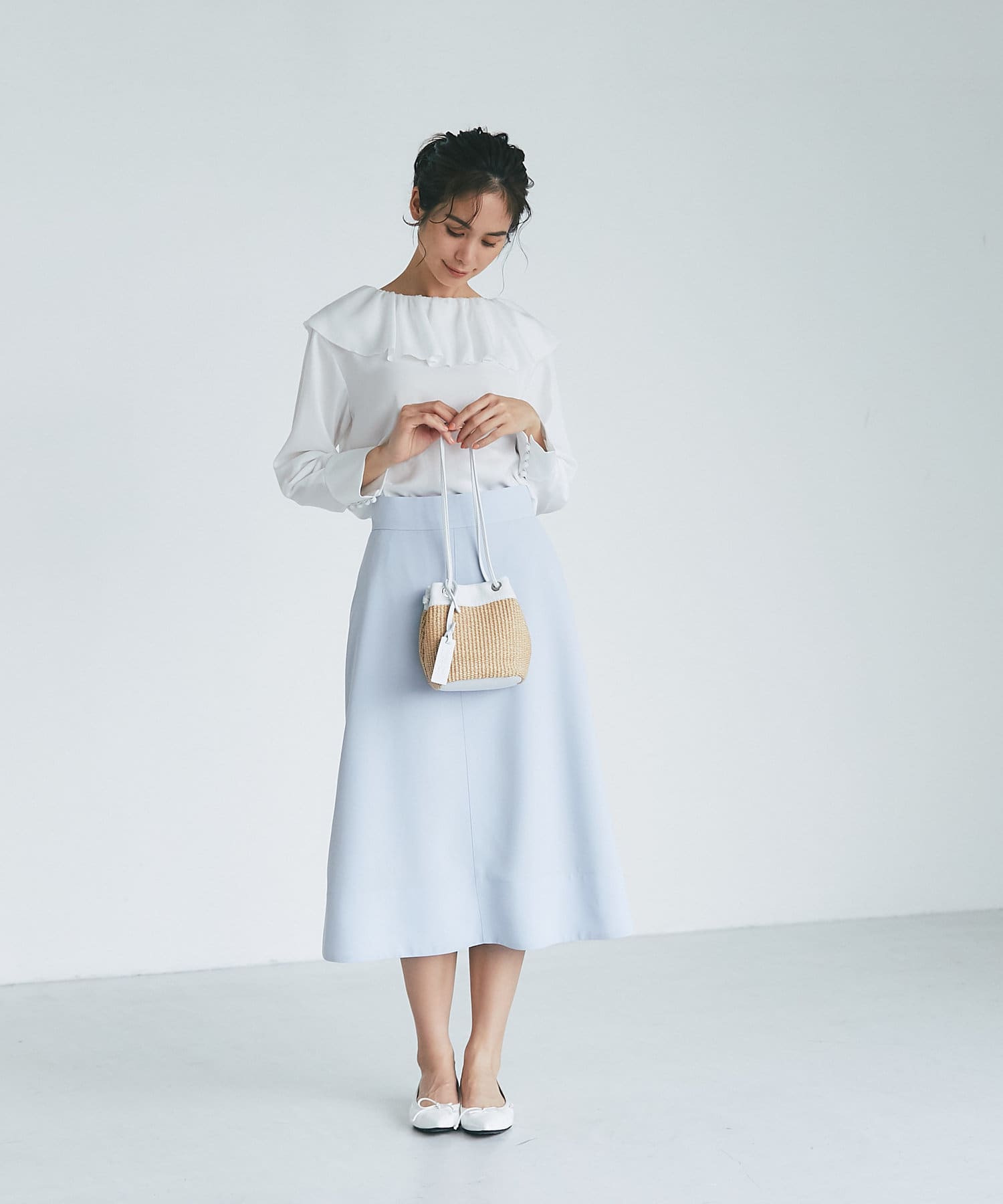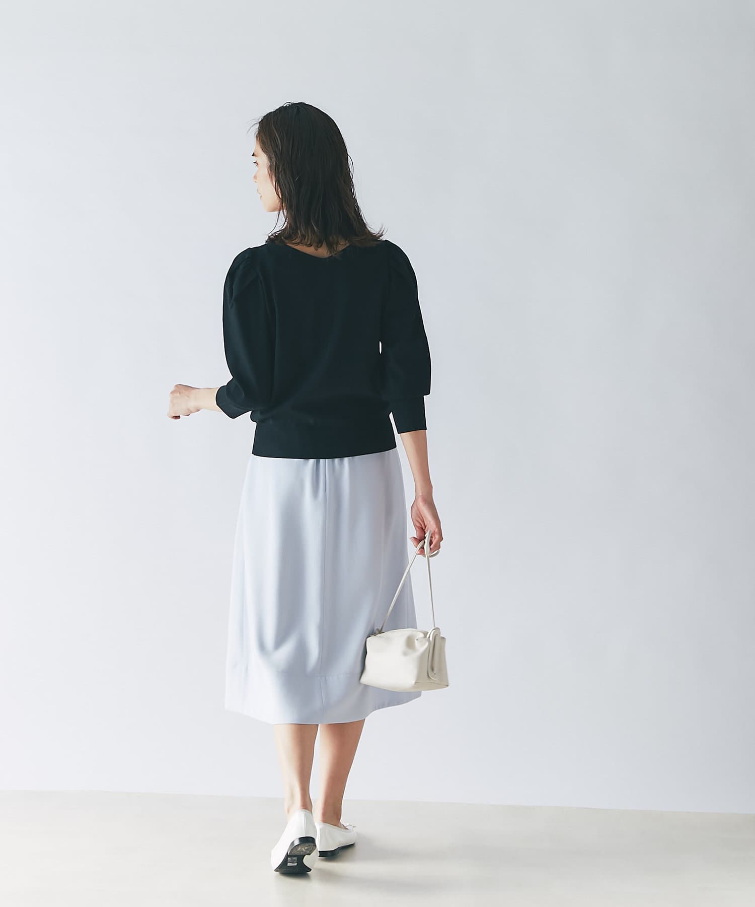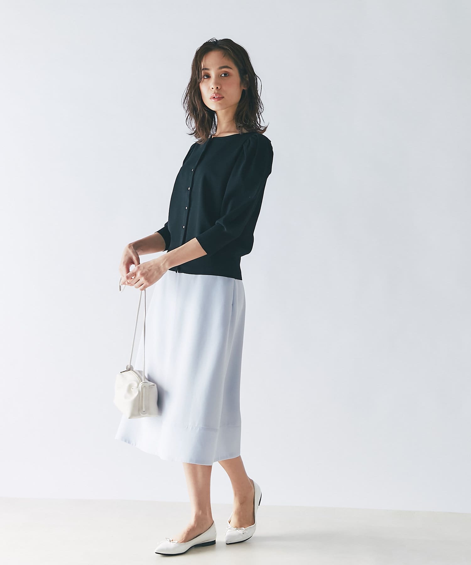 オンスタイルにも使いやすいきれいめスカートなので、きちんと感のあるブラウスなどにもおすすめです。