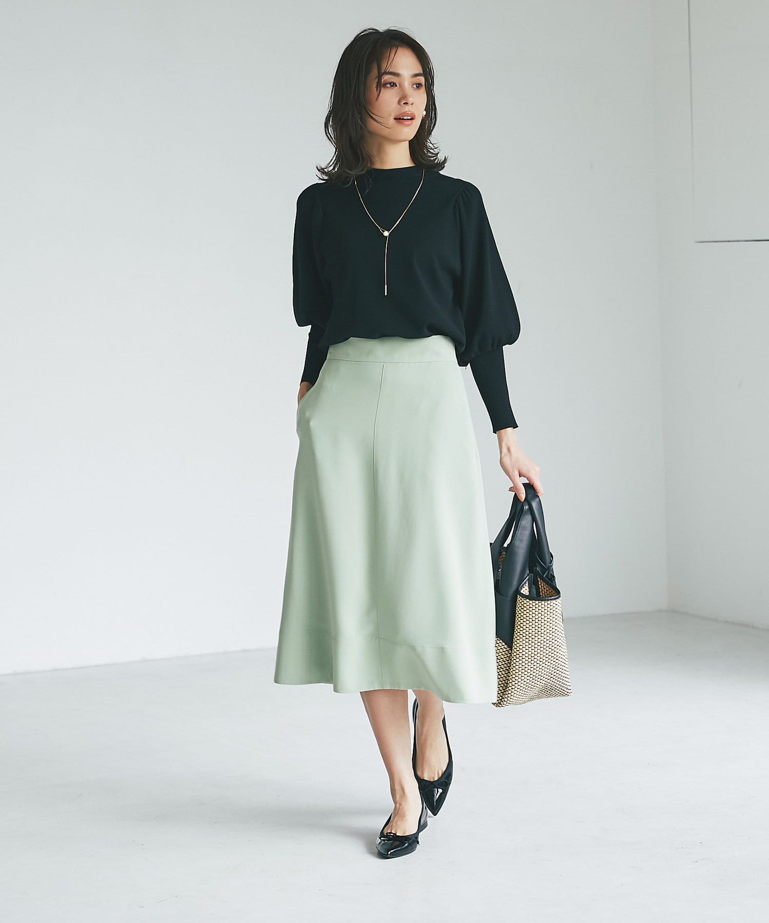 膝下あたりの着丈でベーシックに合わせやすいスカート。