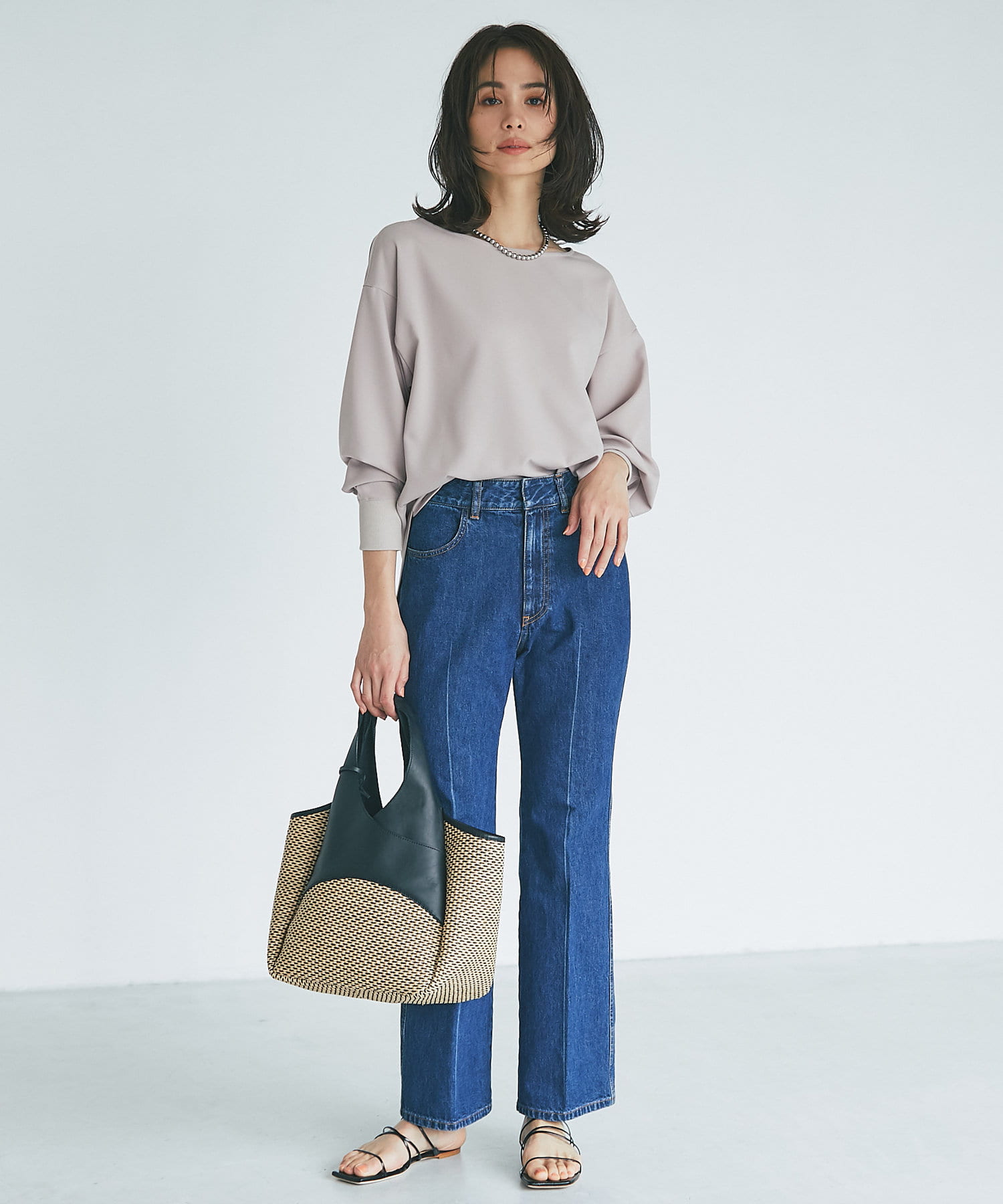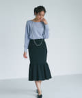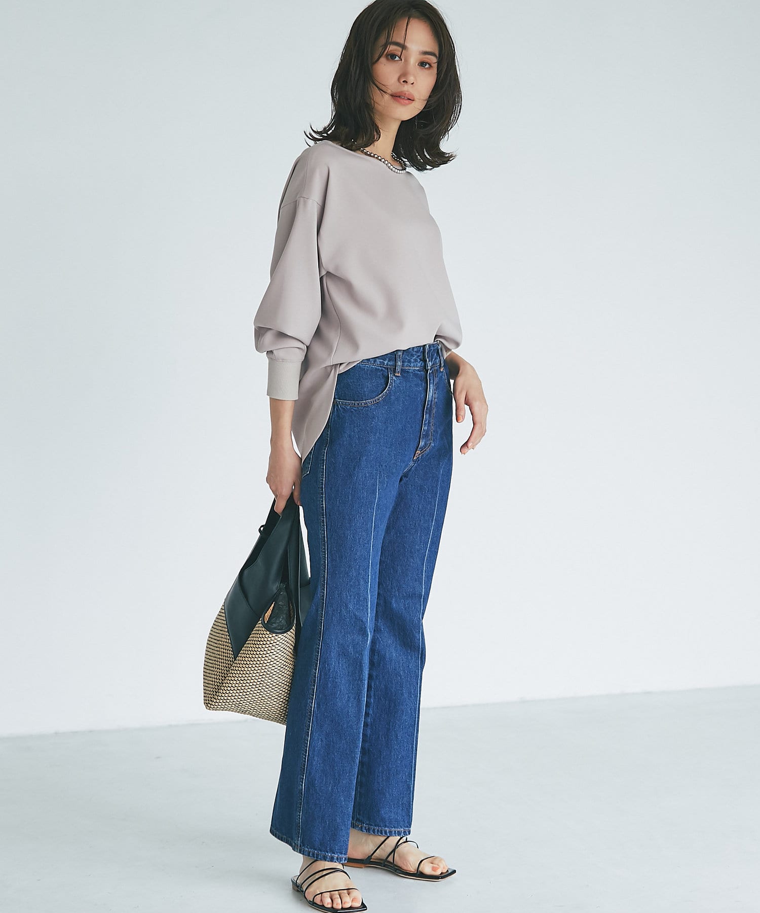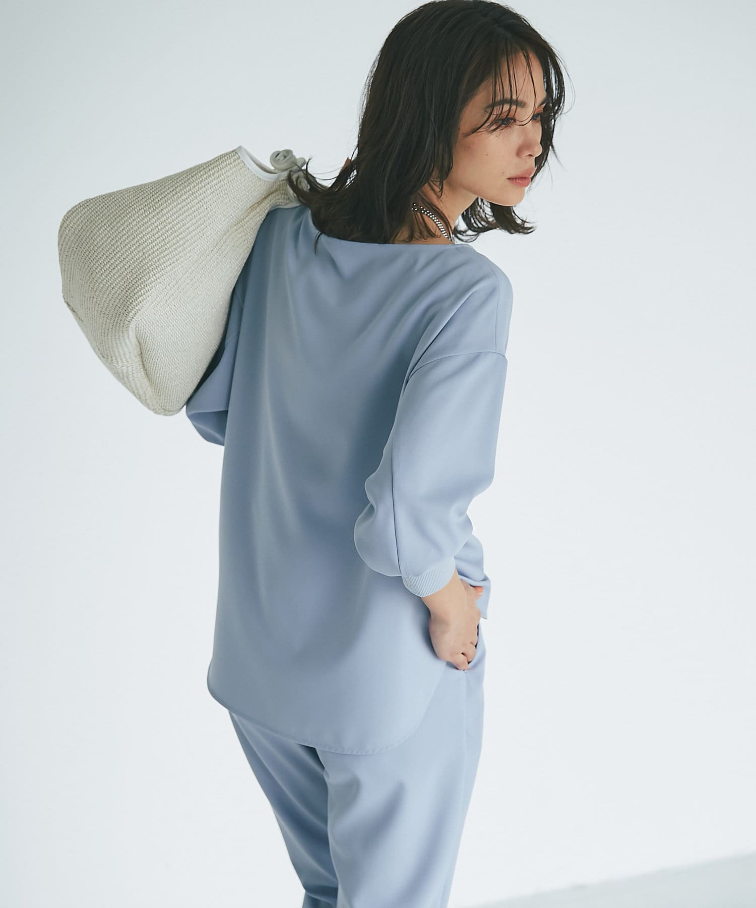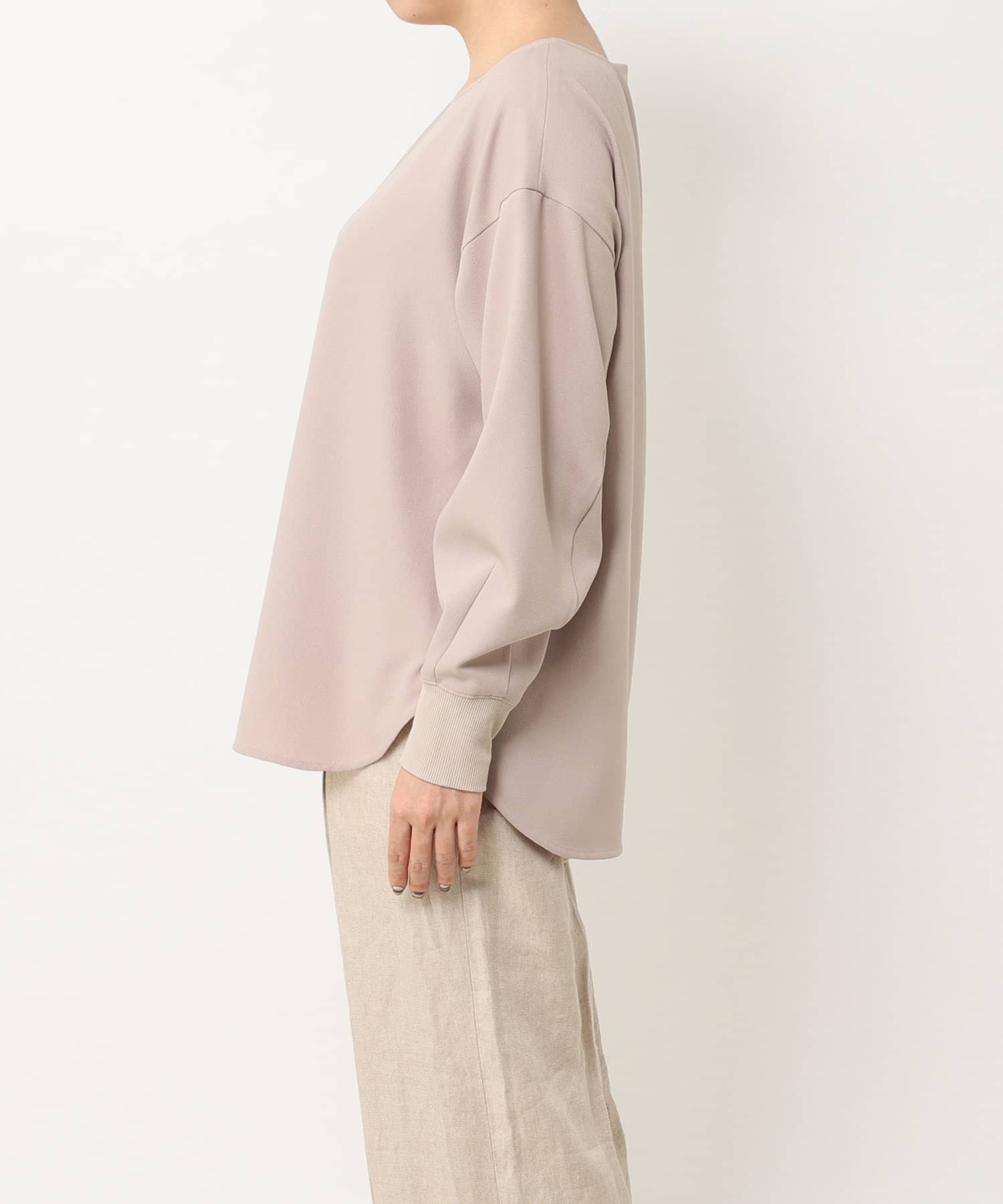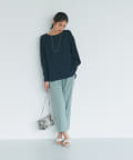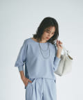抜け感があり、デコルテをきれいに見せてくれるボートネックで、袖口にはリブを施し、トレンドのやや長めカフスに仕上げました。