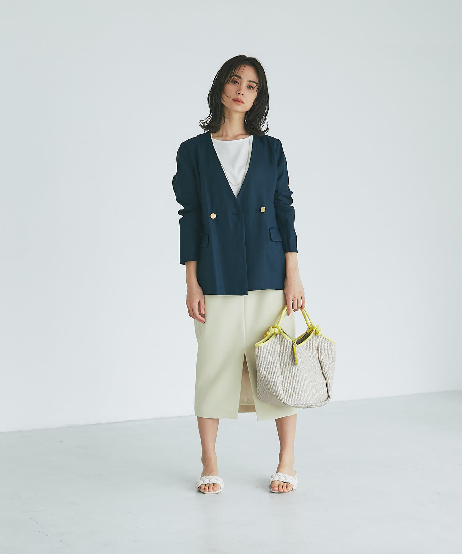 オフィスにもディリーにも着回しできる万能アイテムです。