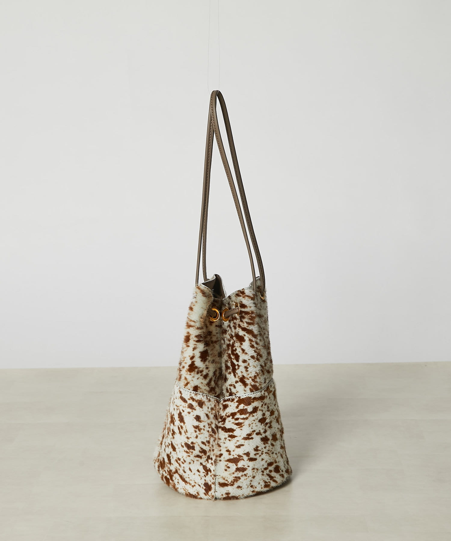 存在感たっぷりのカウ柄のハラコポシェットです。