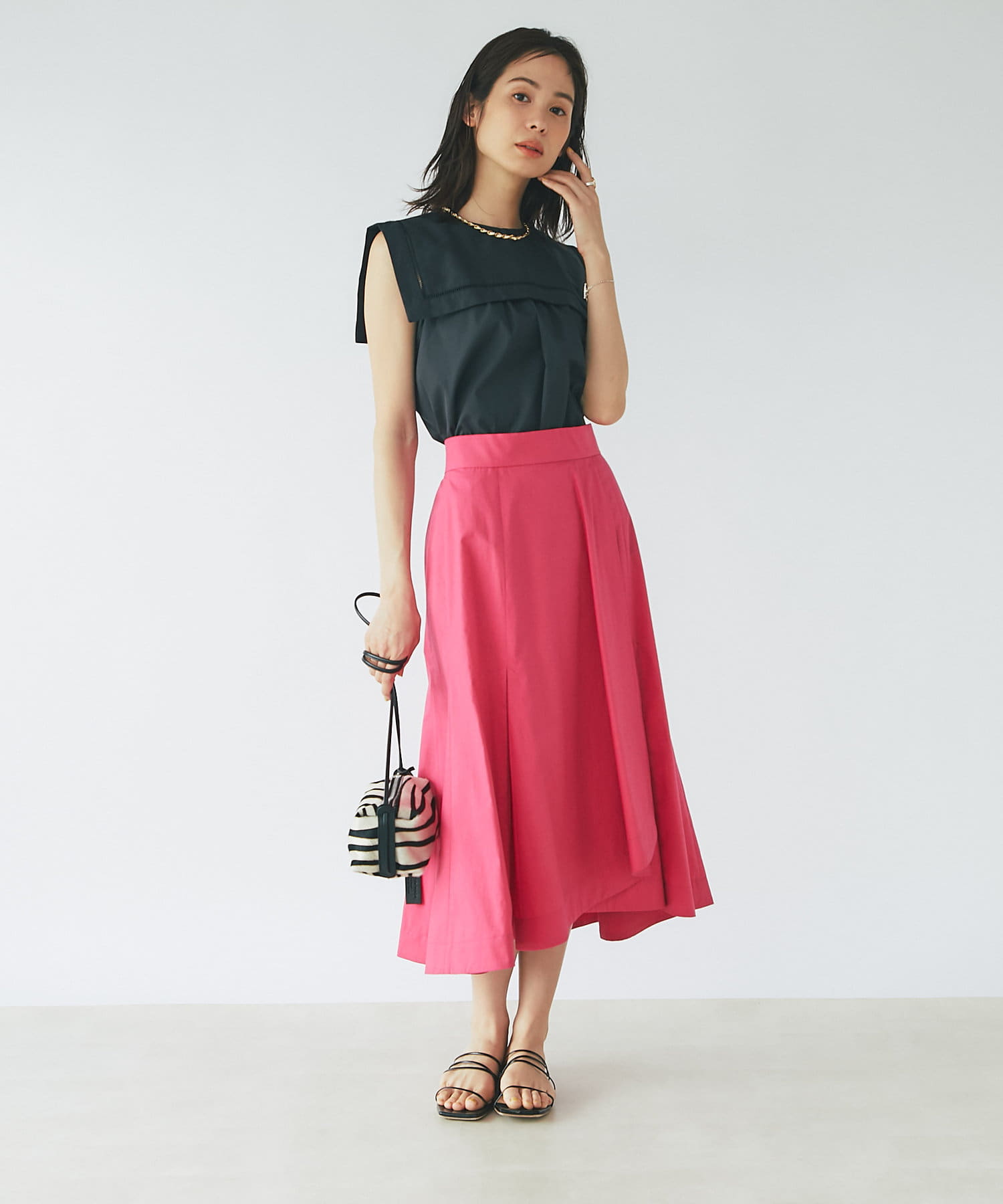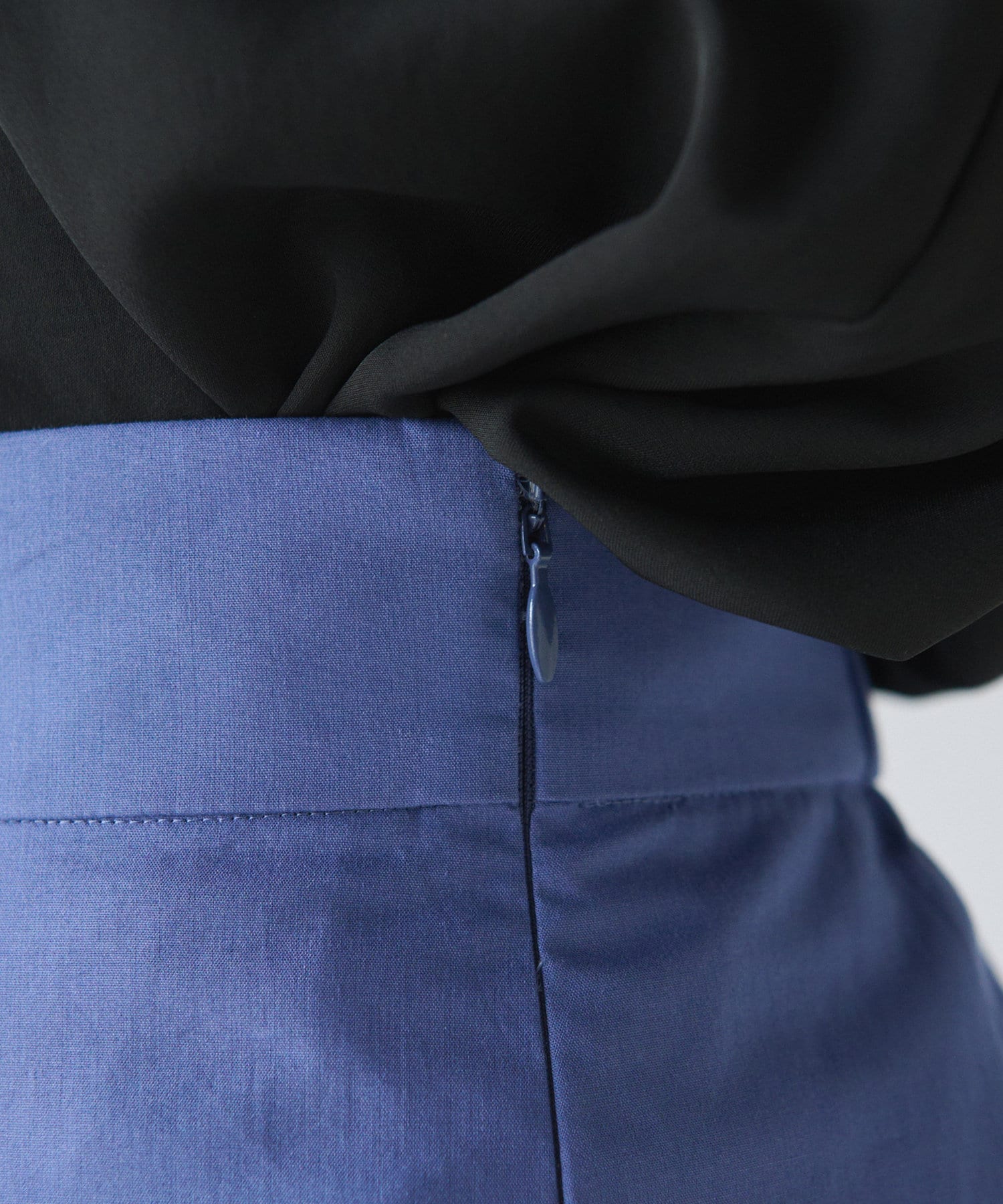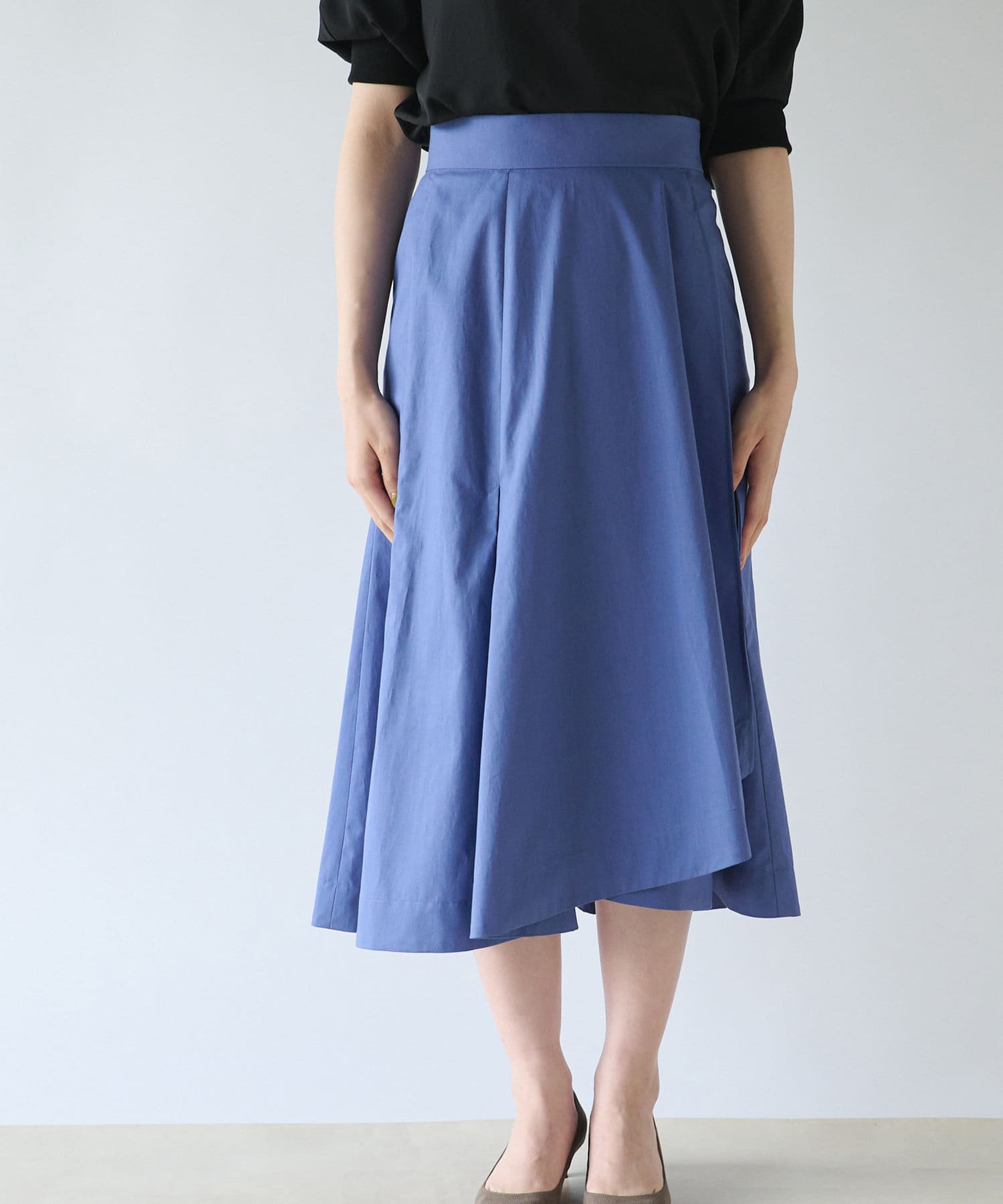 イレギュラーに重なった裾がラッフルのような見た目のラップスカート。
