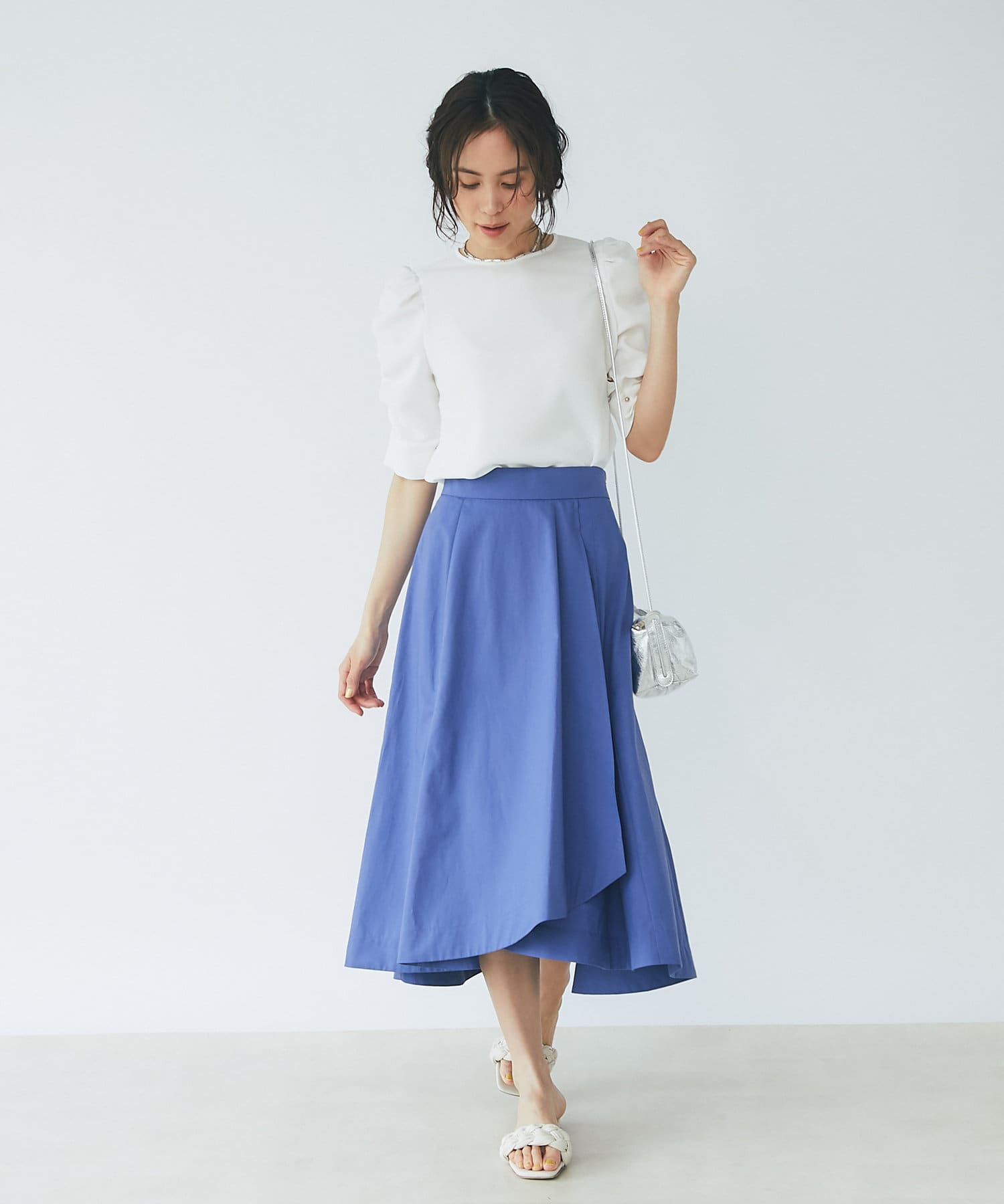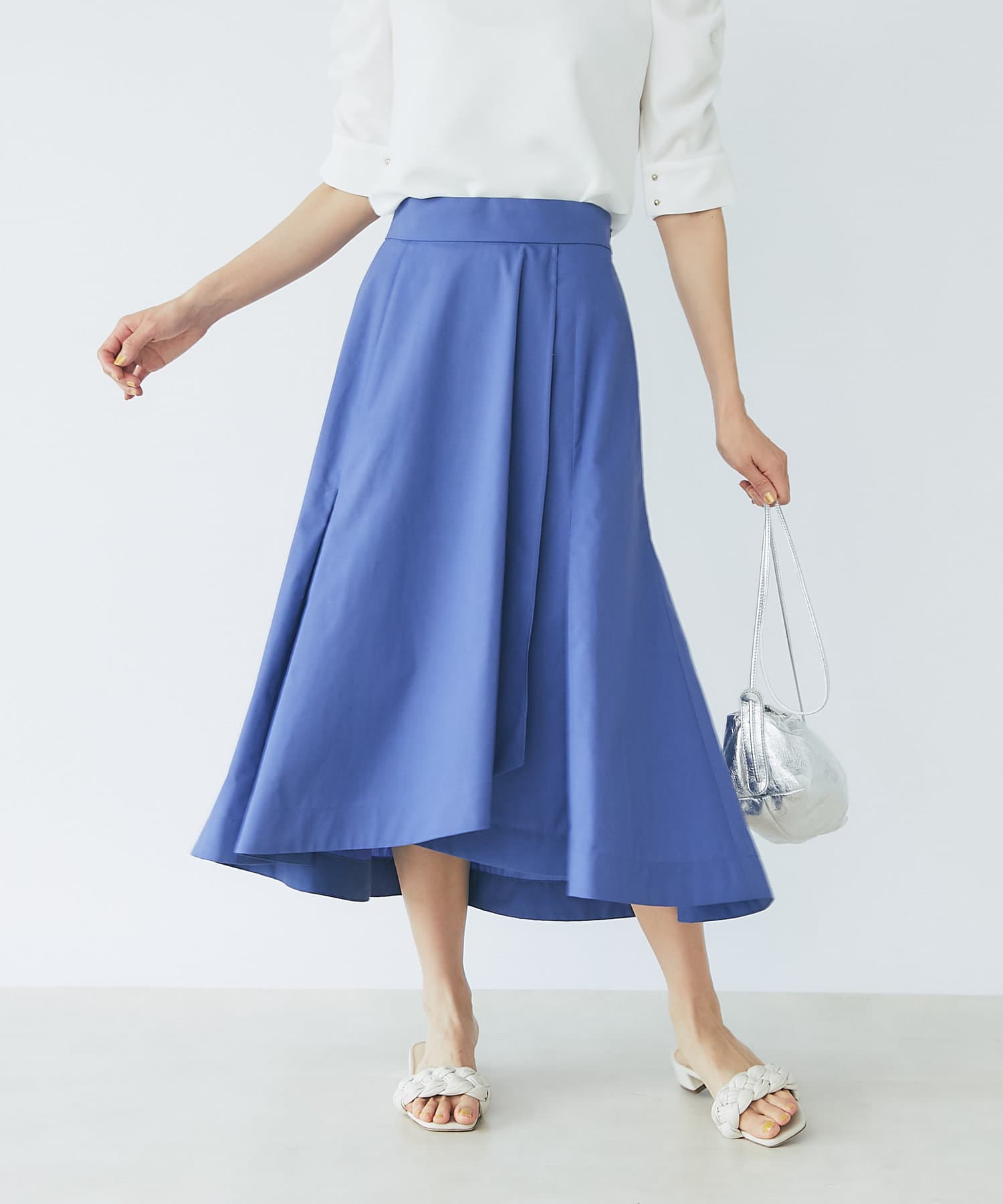 イレギュラーの裾で女性らしさをアップするラップスカート