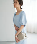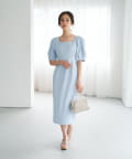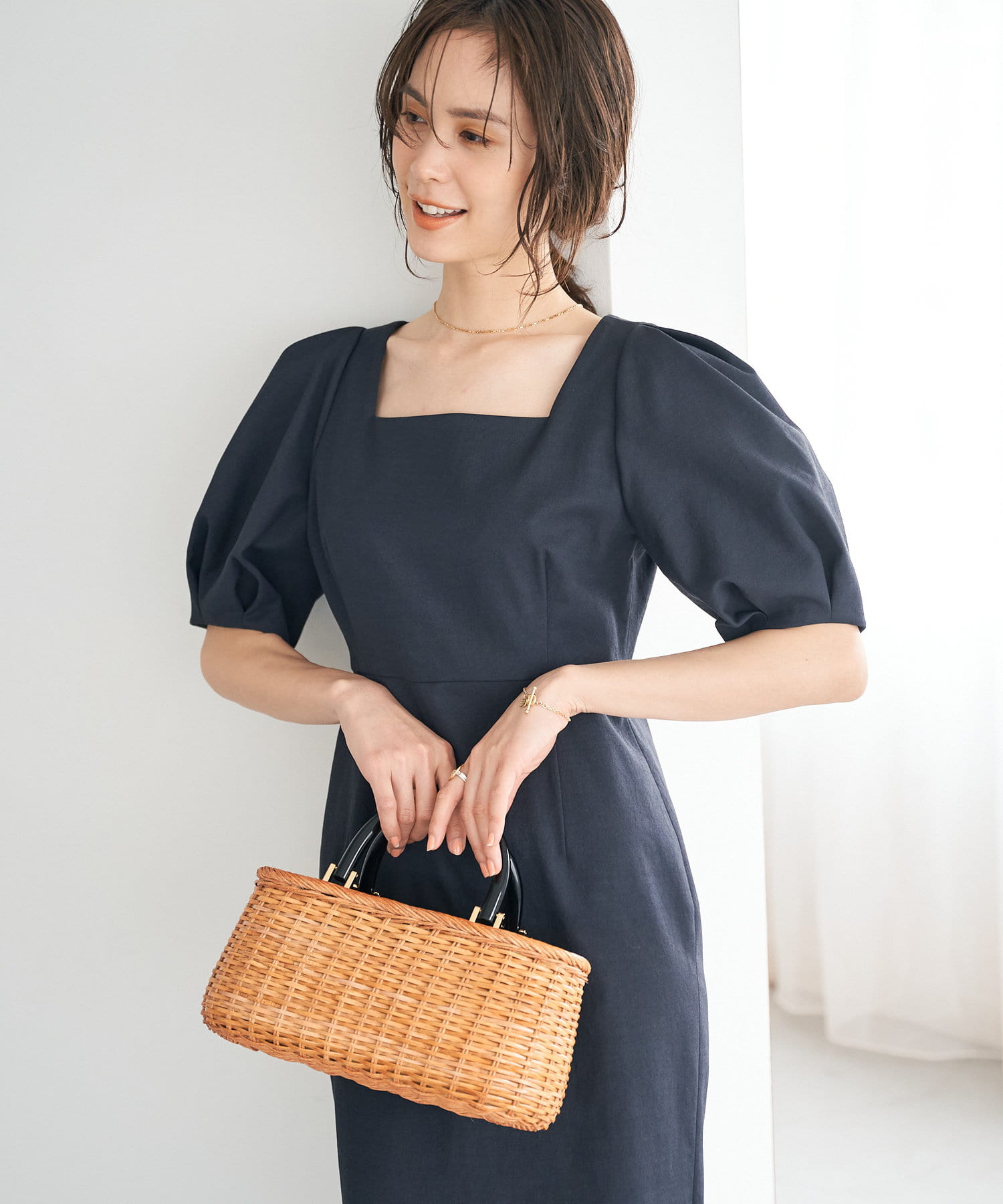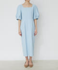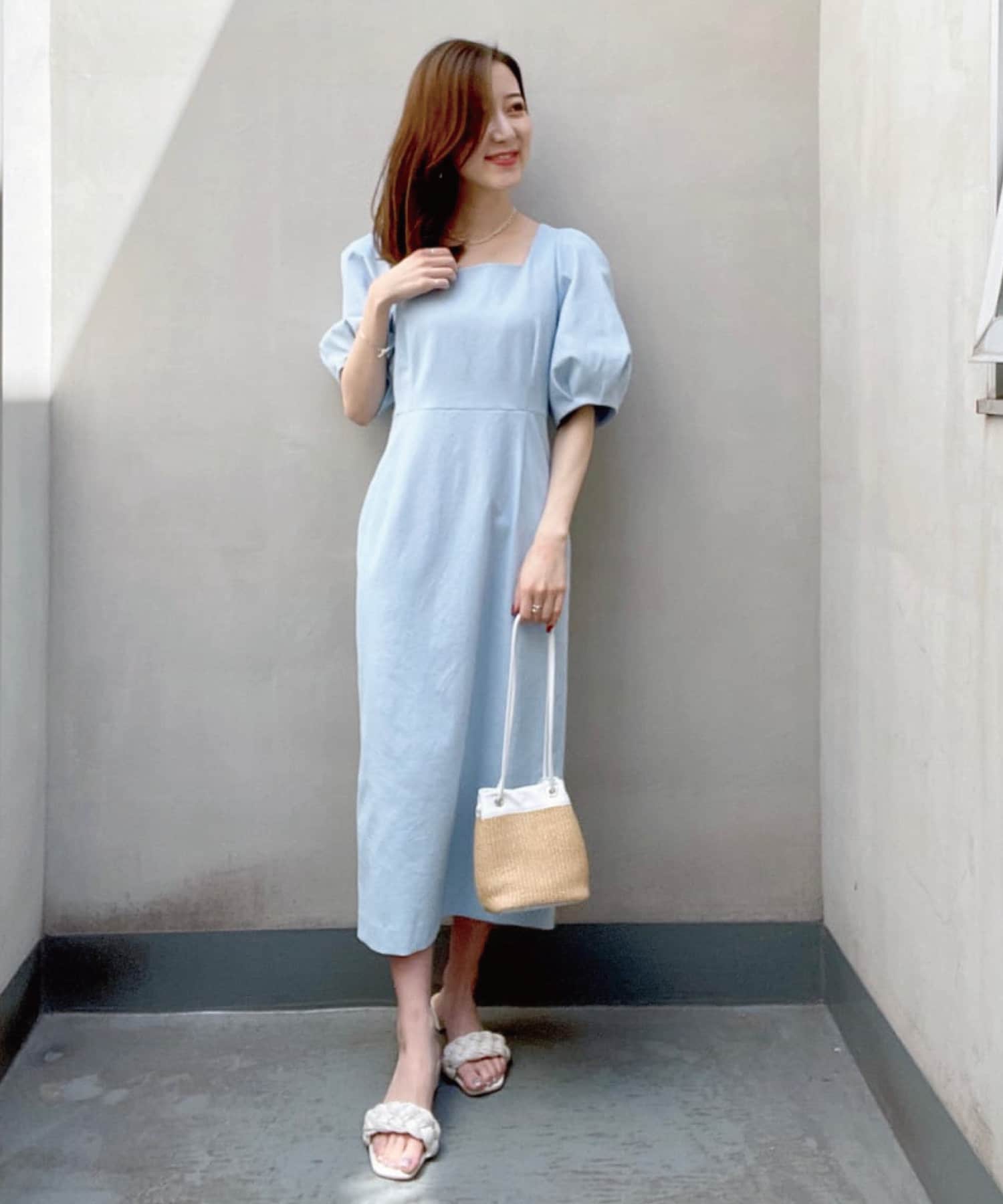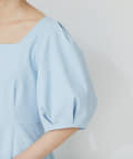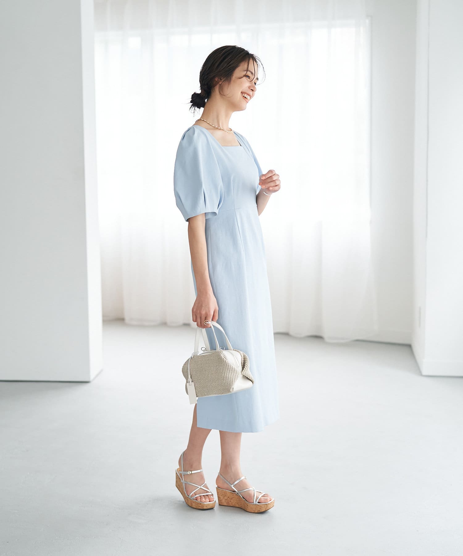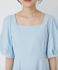 スクエアネックにボリュームスリーブのバランスが女らしい上品なワンピース。