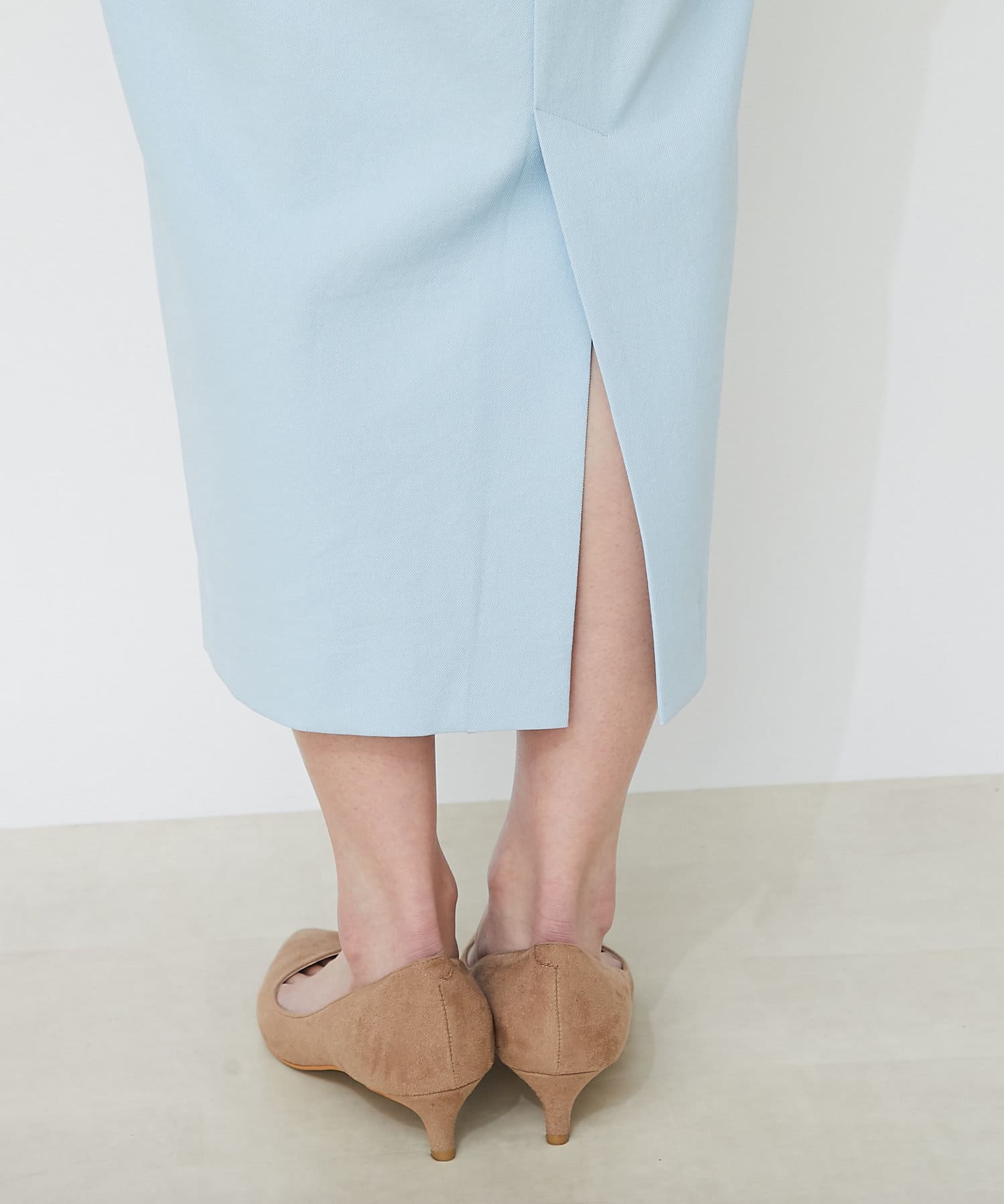 きれいめシルエットのワンピースですが、ドライオックスの素材感でオンオフどちらも着用可能な一枚です。