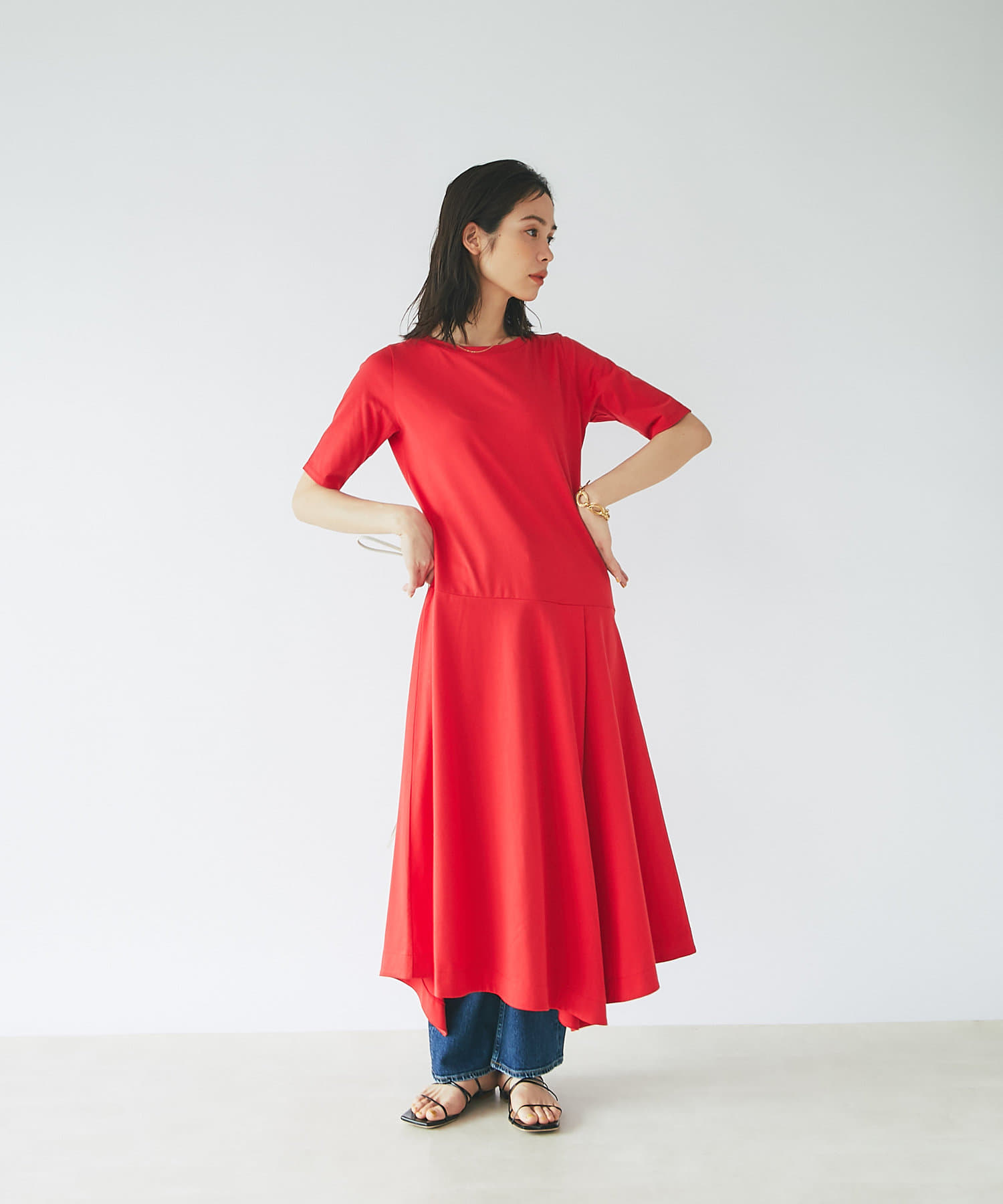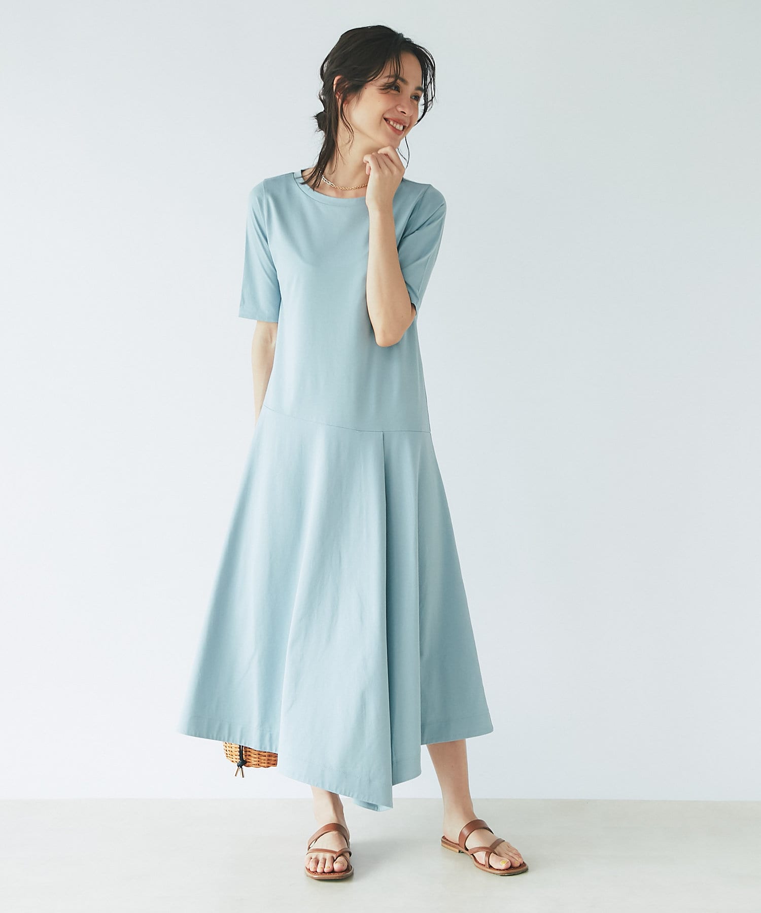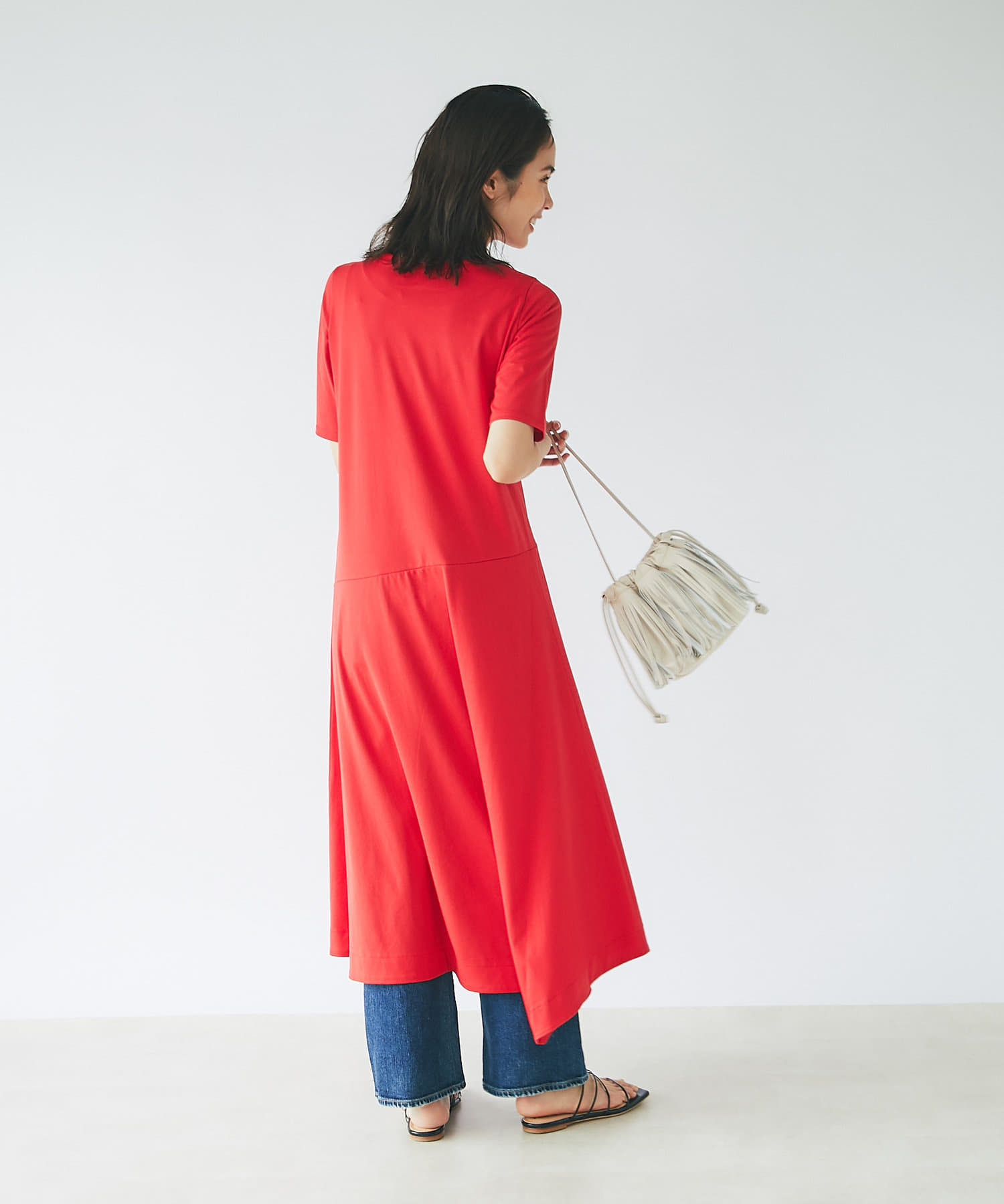 さらっと1枚で着まわせるイレヘムカットワンピースは、今季のワードローブに必須。コットン100%素材を使用した、さっぱりとした柔らかな肌触りが味わえます。