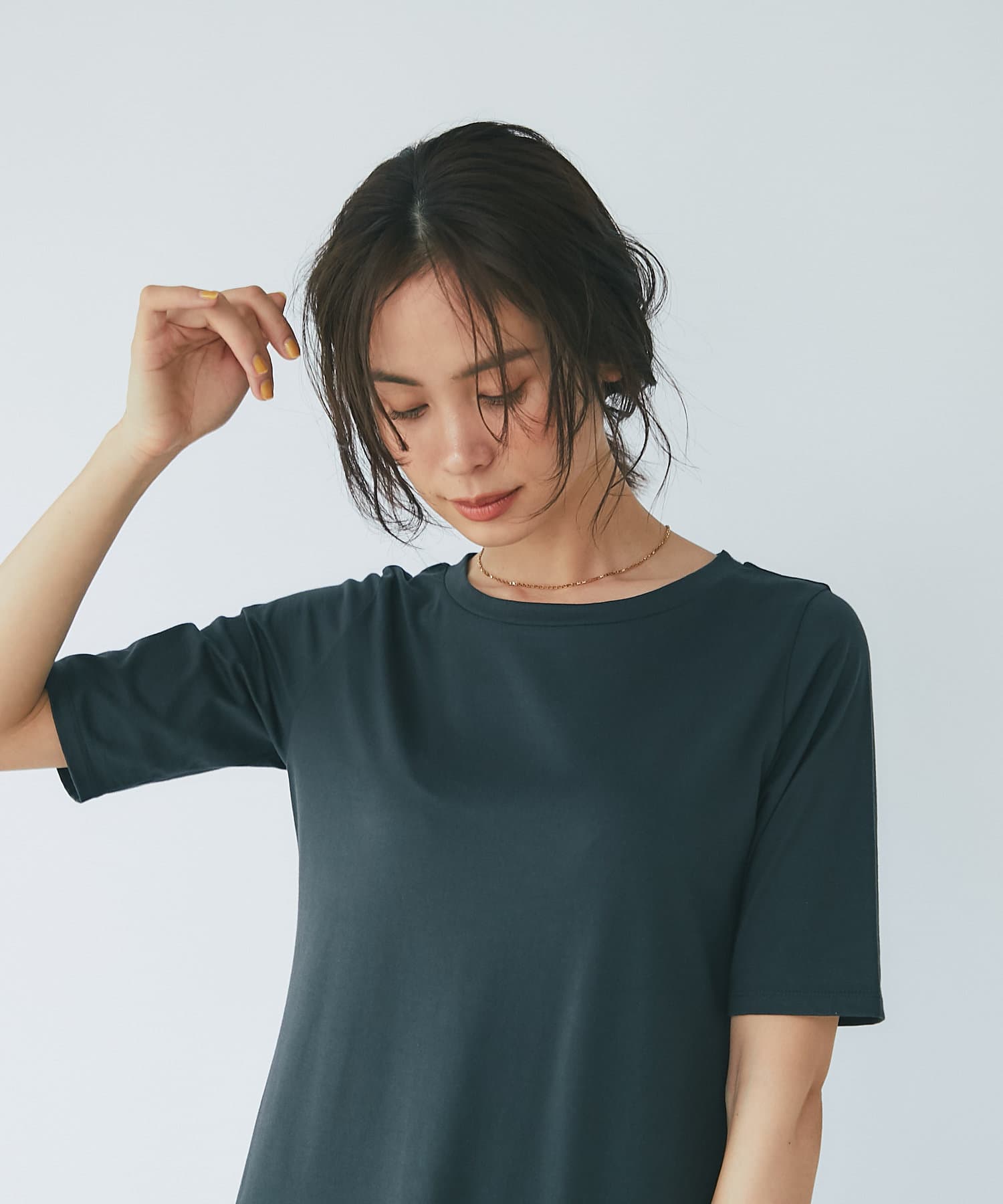 透ける事なく、さらっとした肌触りが心地よく、シンプルながらもお洒落な一枚。