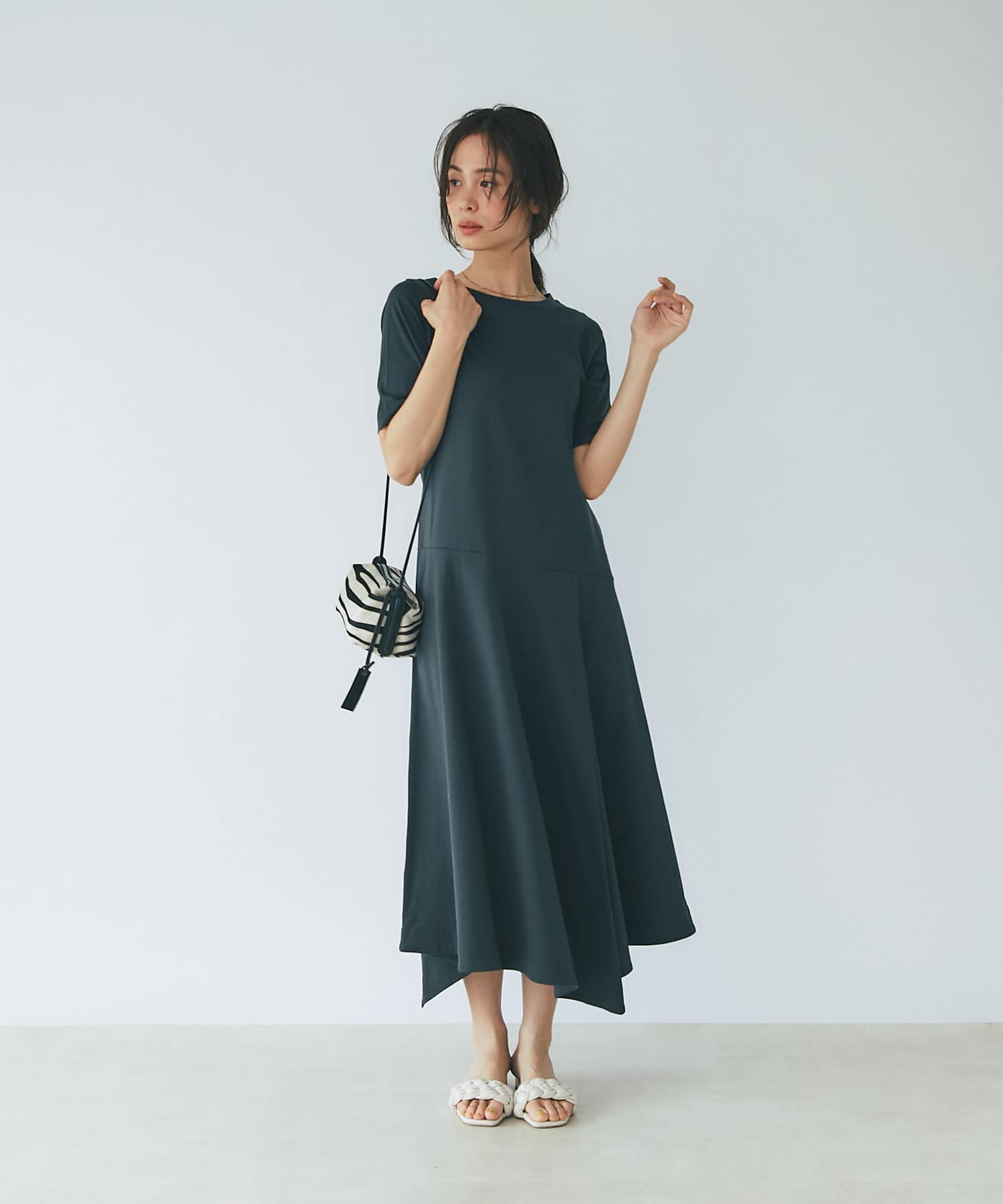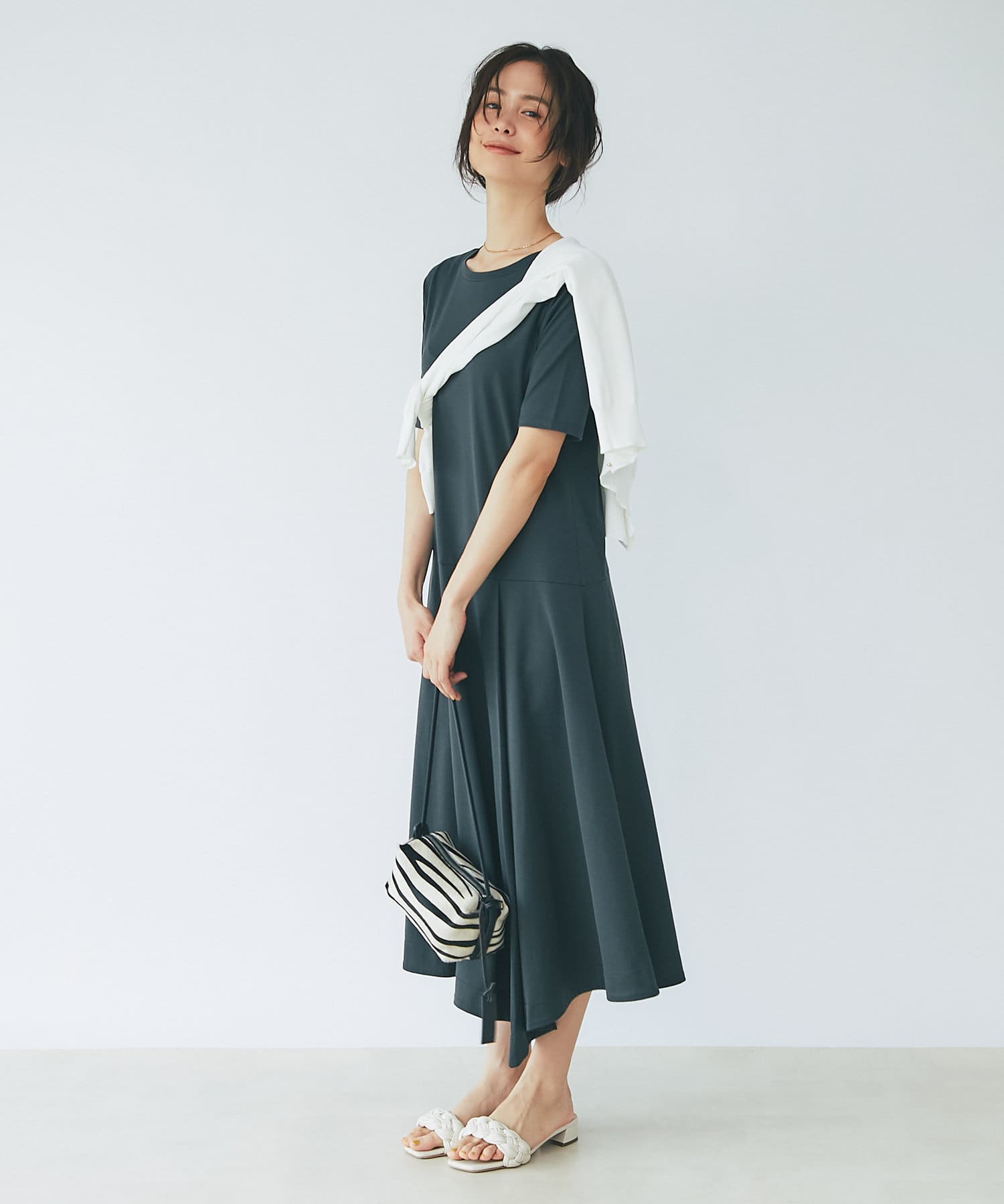 #イレギュラーヘム #半袖ワンピース #無地 #デイリーユース #レイヤード
