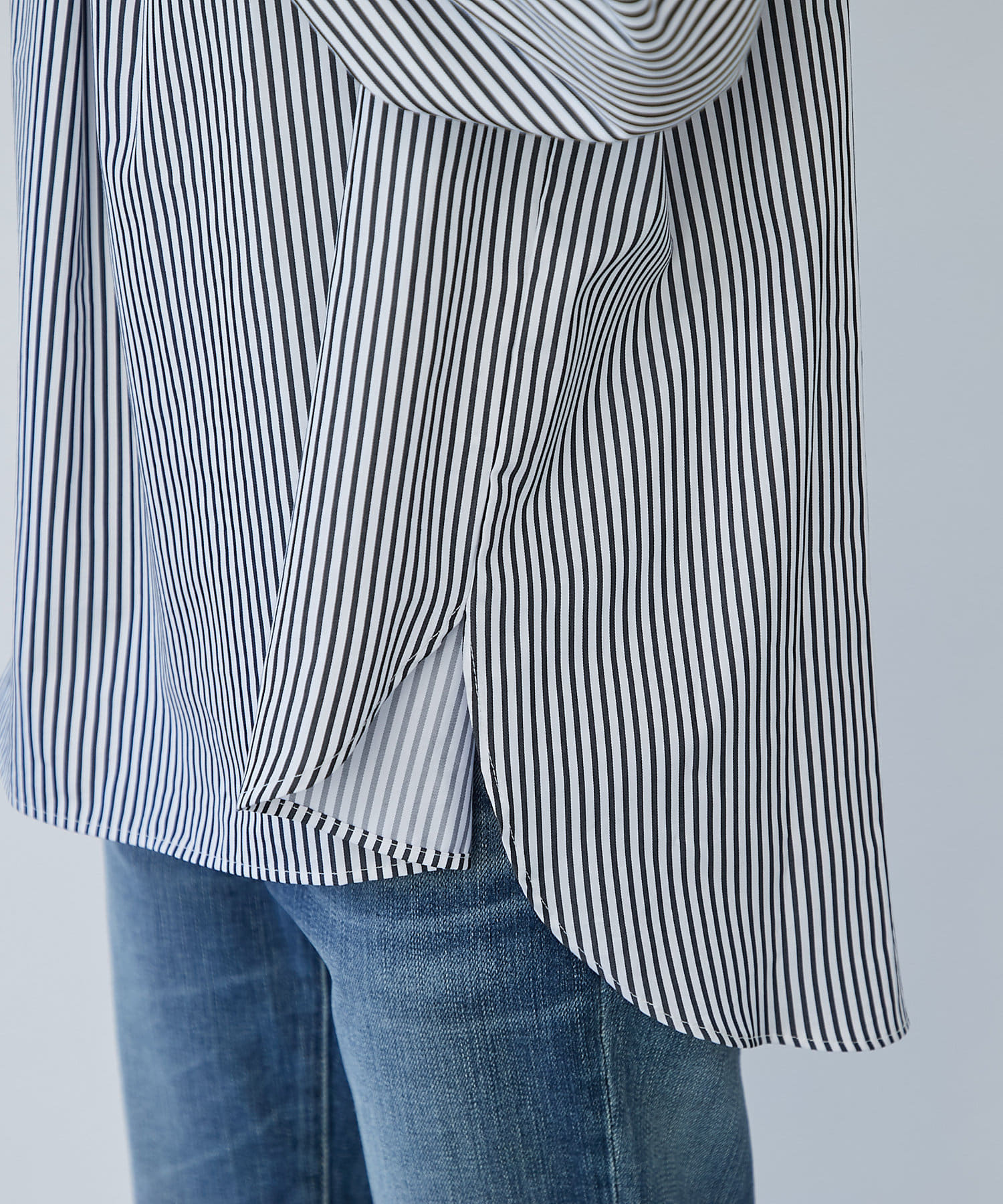 着丈が長めでゆったりとしたサイズ感のドロップショルダー。