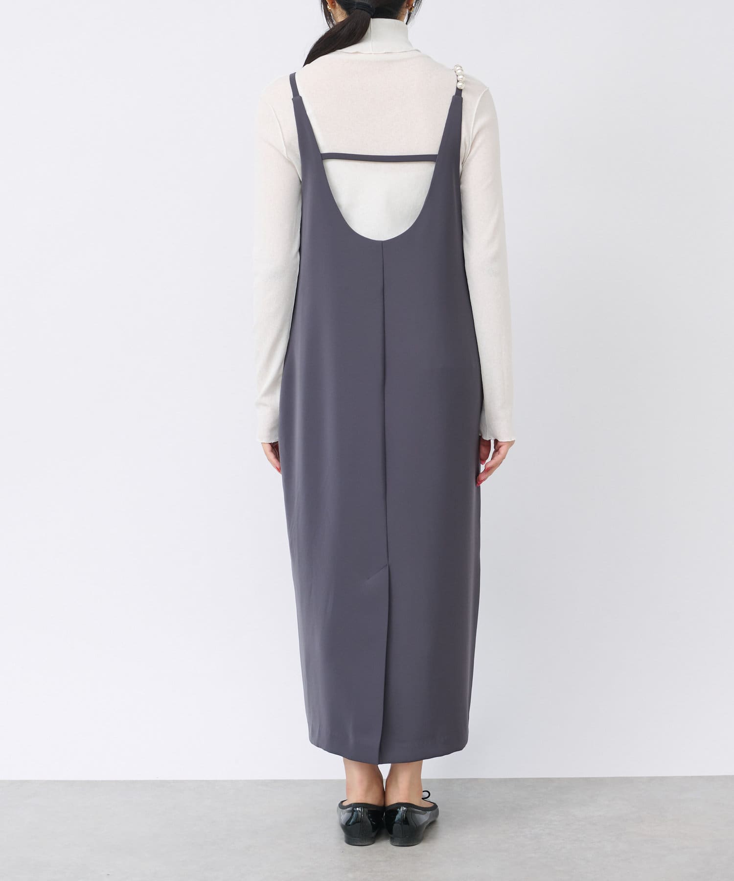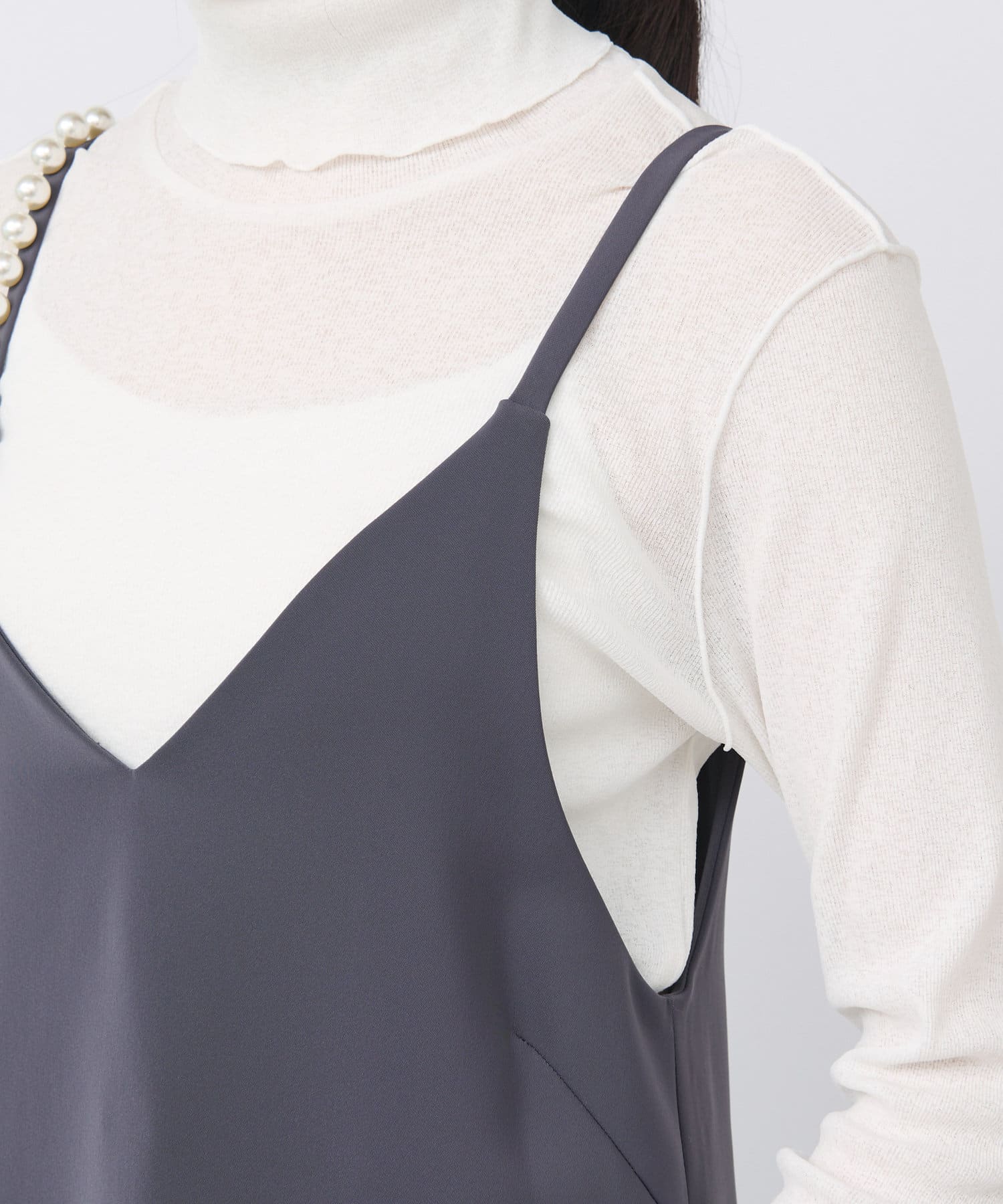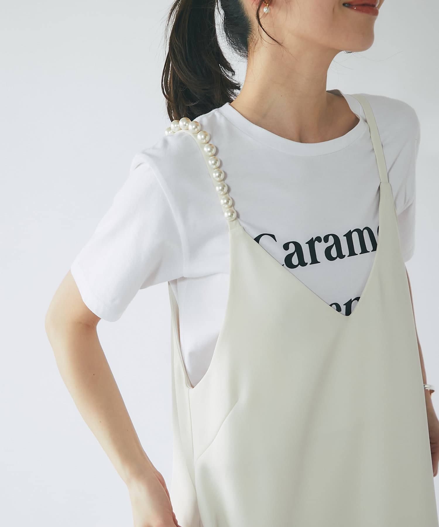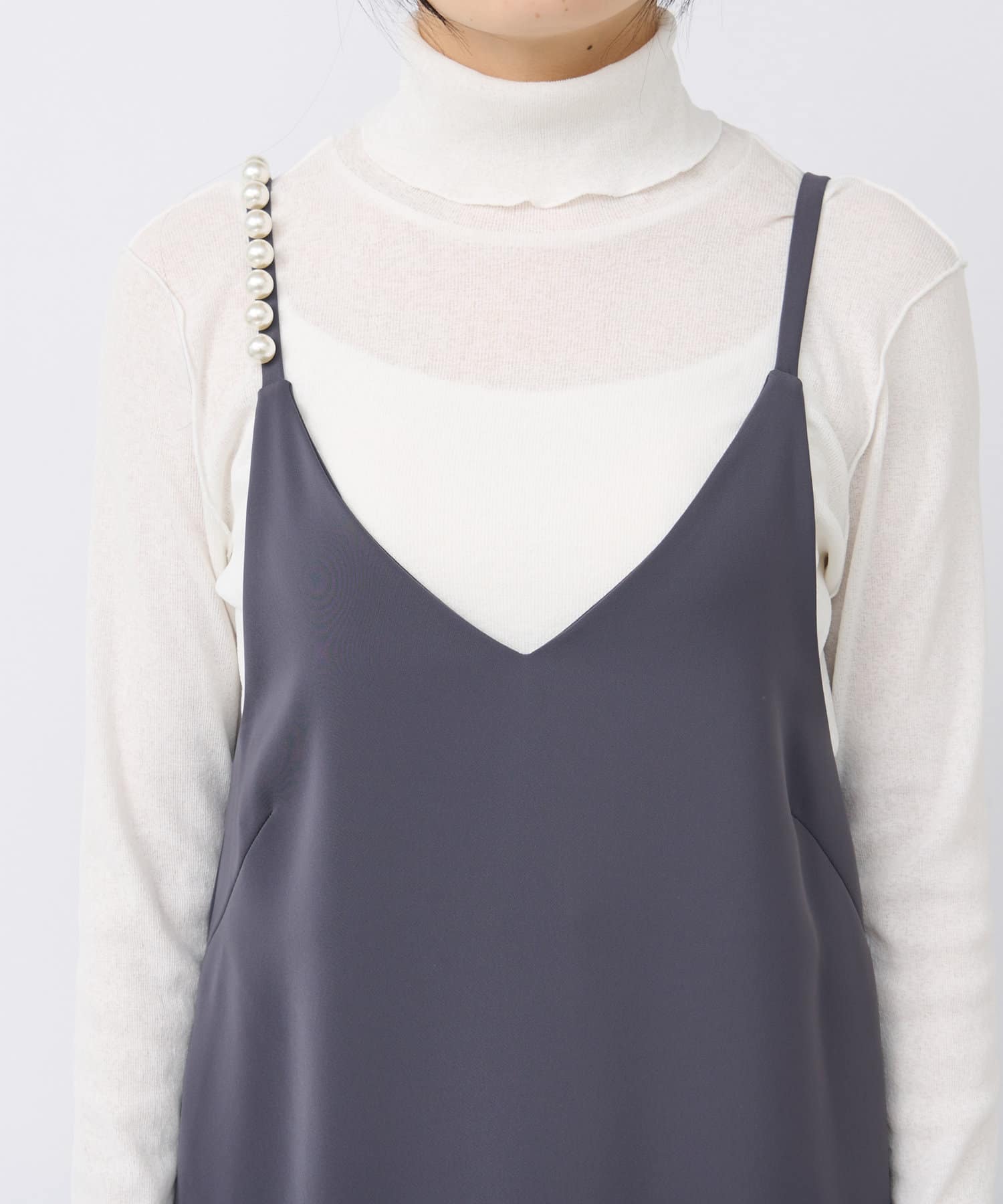 • 肩紐に大粒のパールをあしらったキャミワンピ。