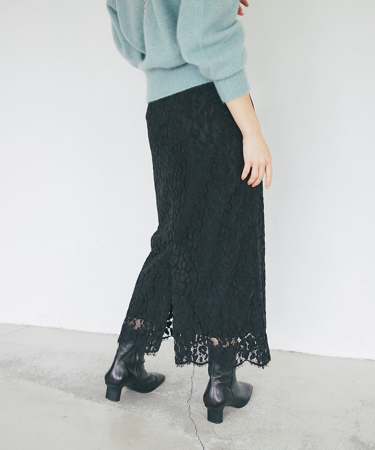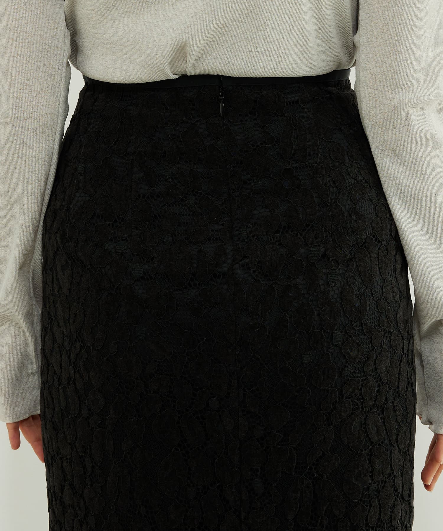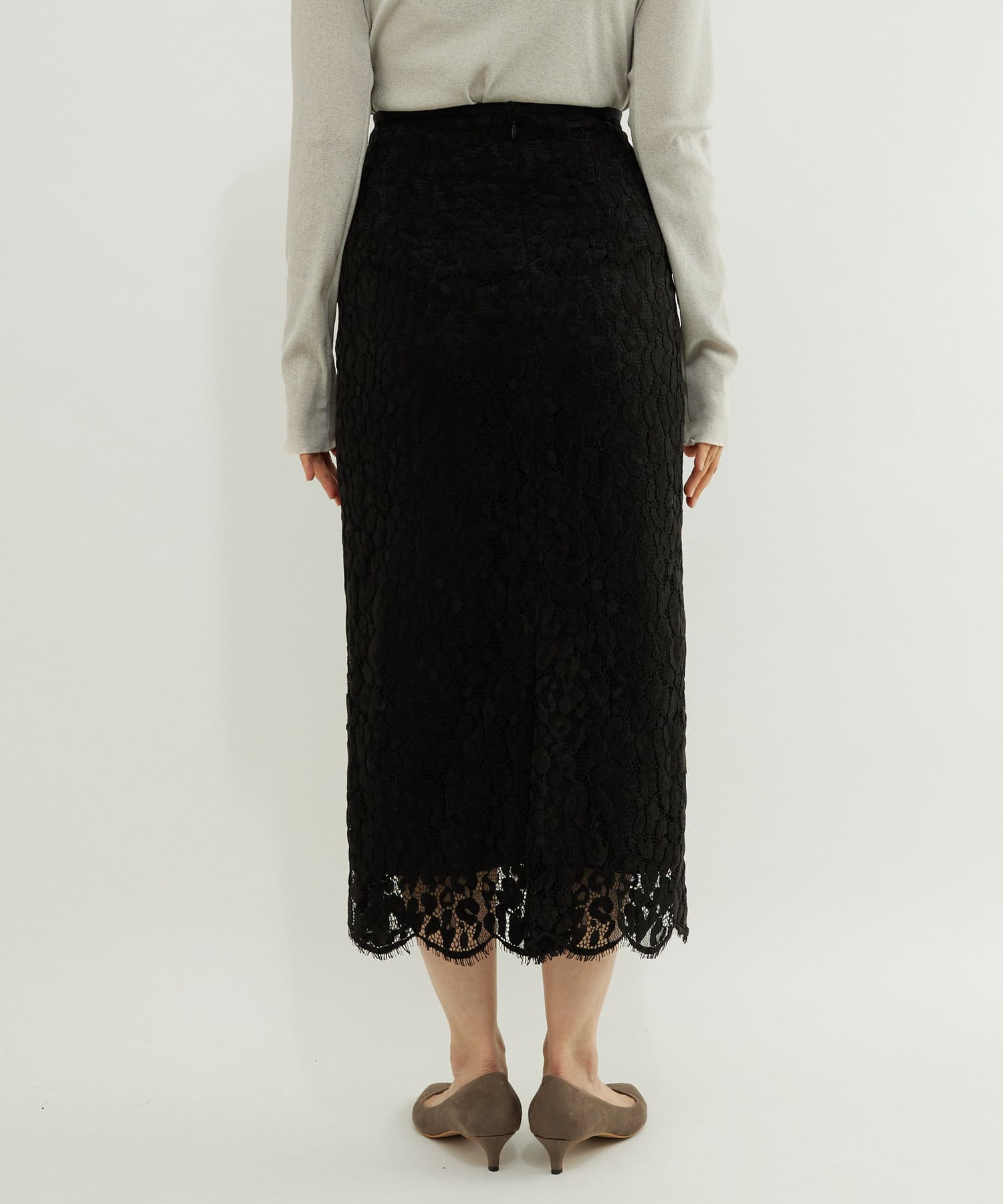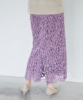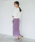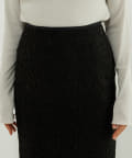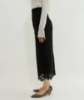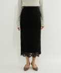 • 程よい光沢のある起毛レースを使用したナロースカート。