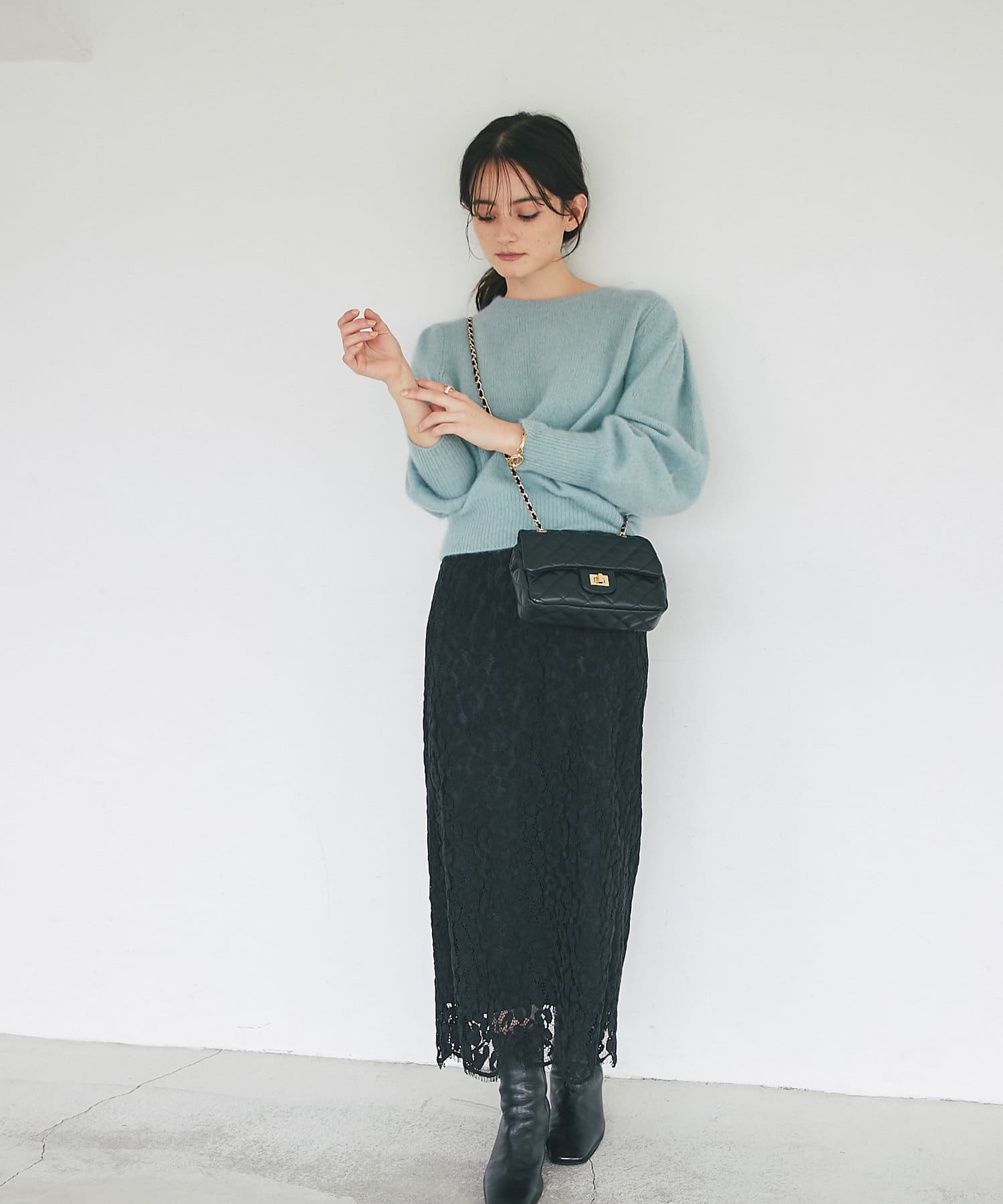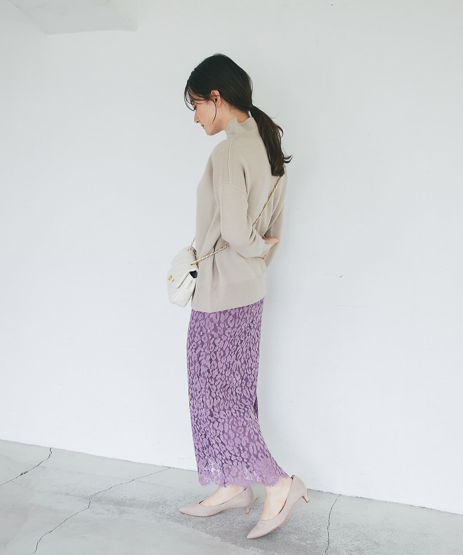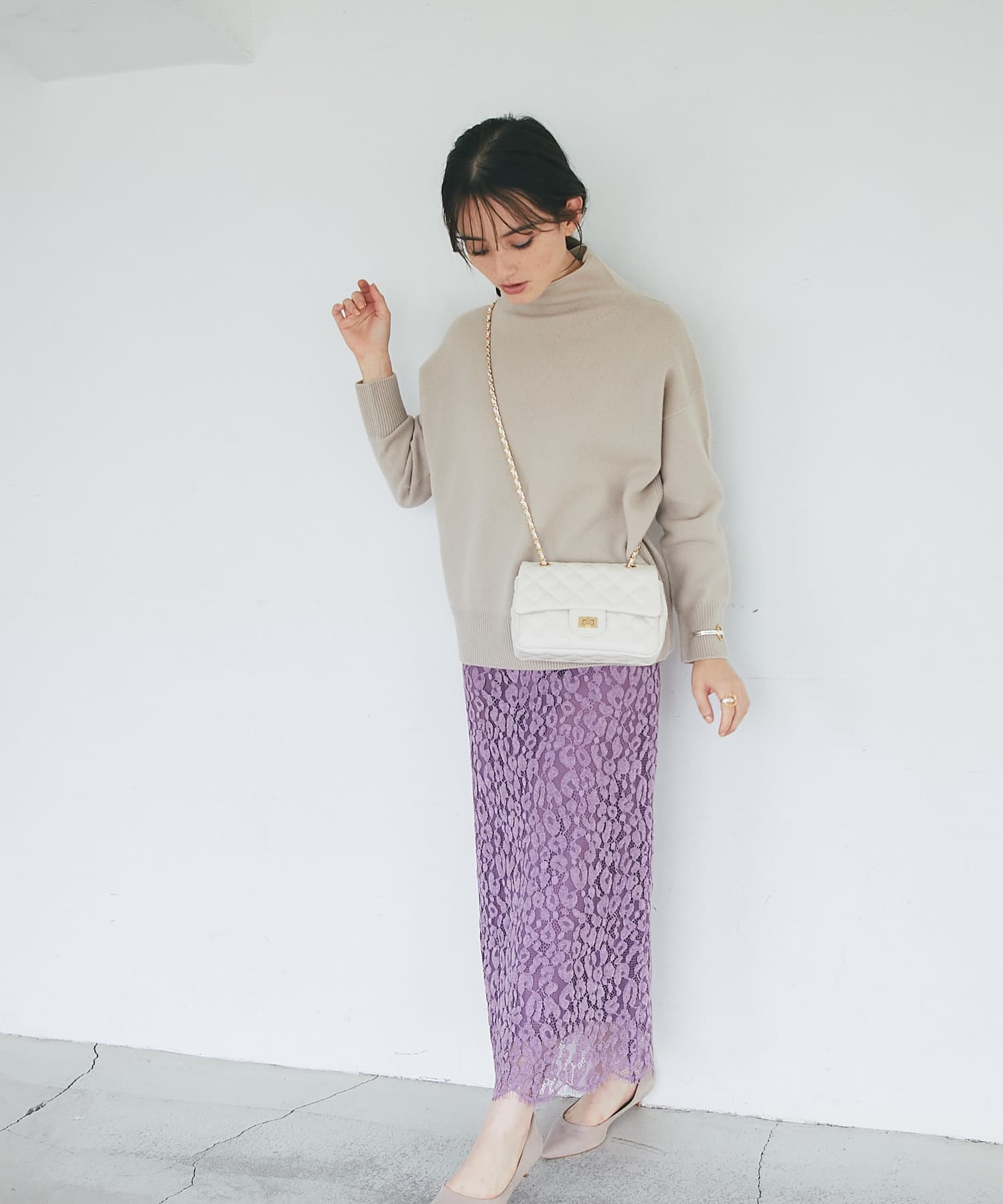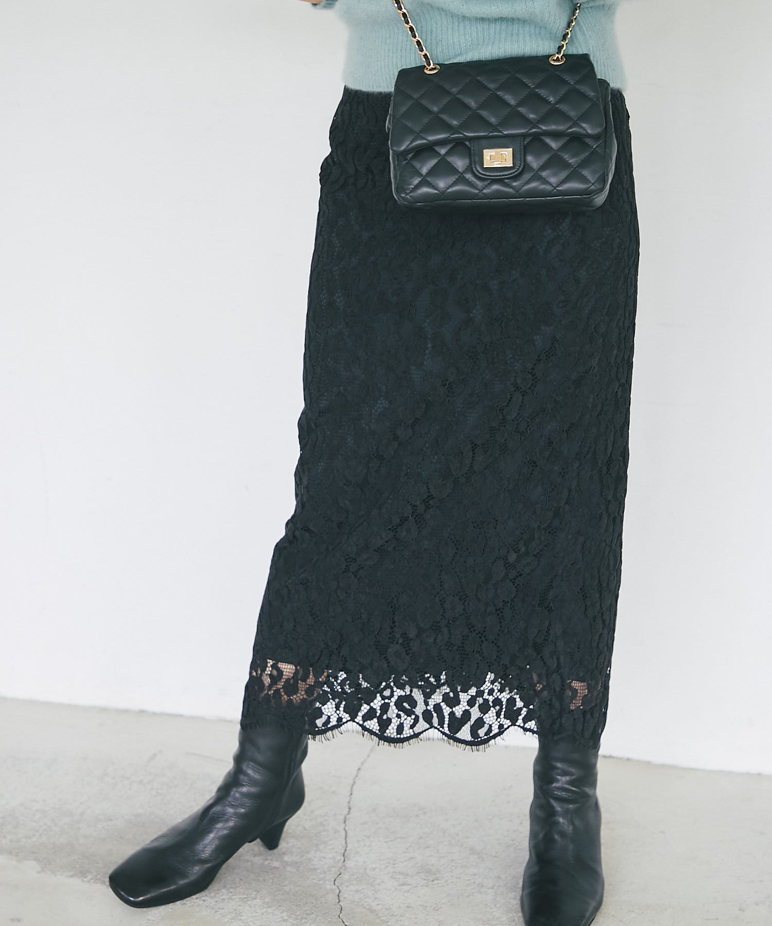 総レースで華やかなアイテムなので、シンプルなトップスを合わせるだけでコーディネートが完成。
