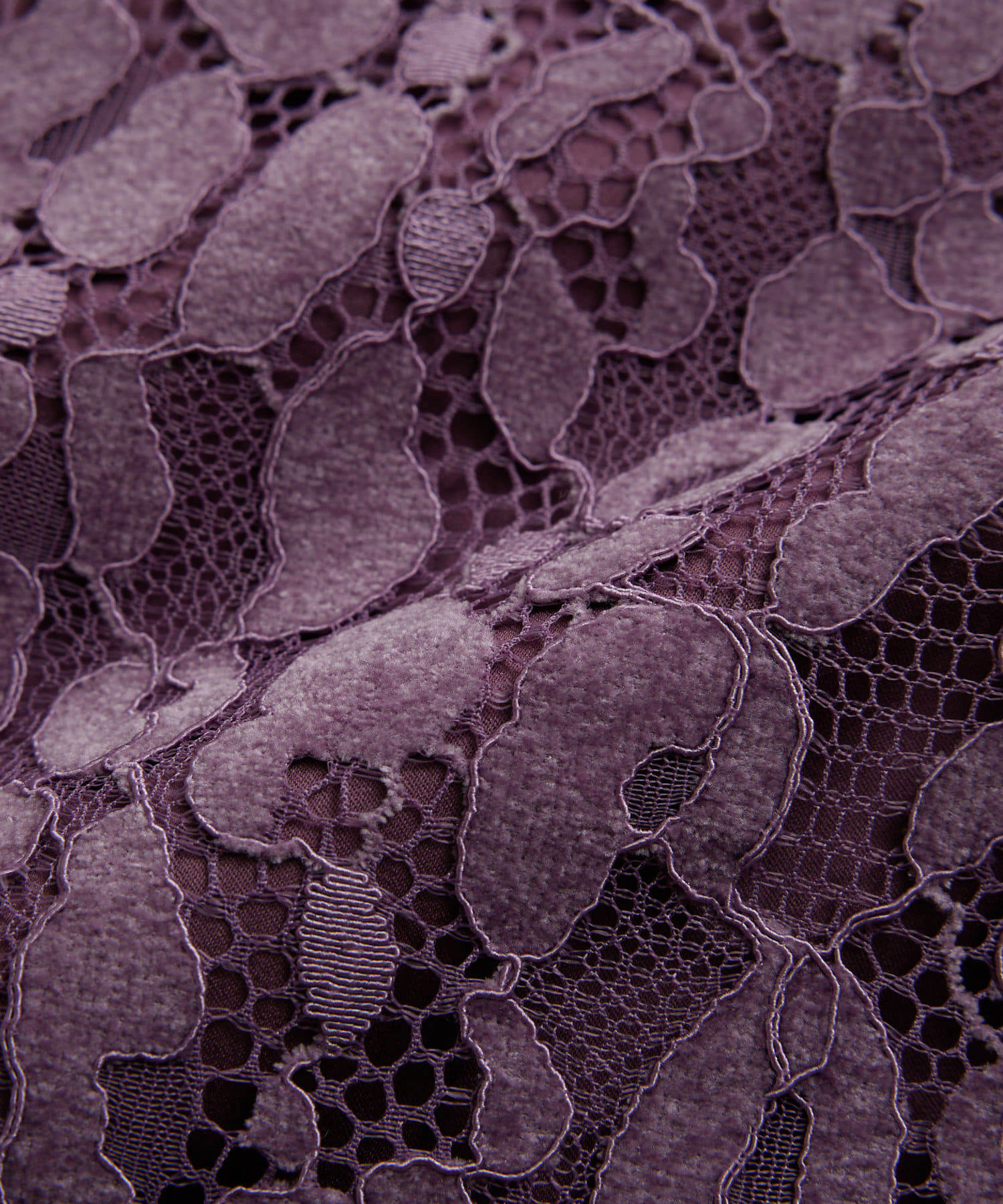 程よい光沢のある起毛したレースの素材を使用。