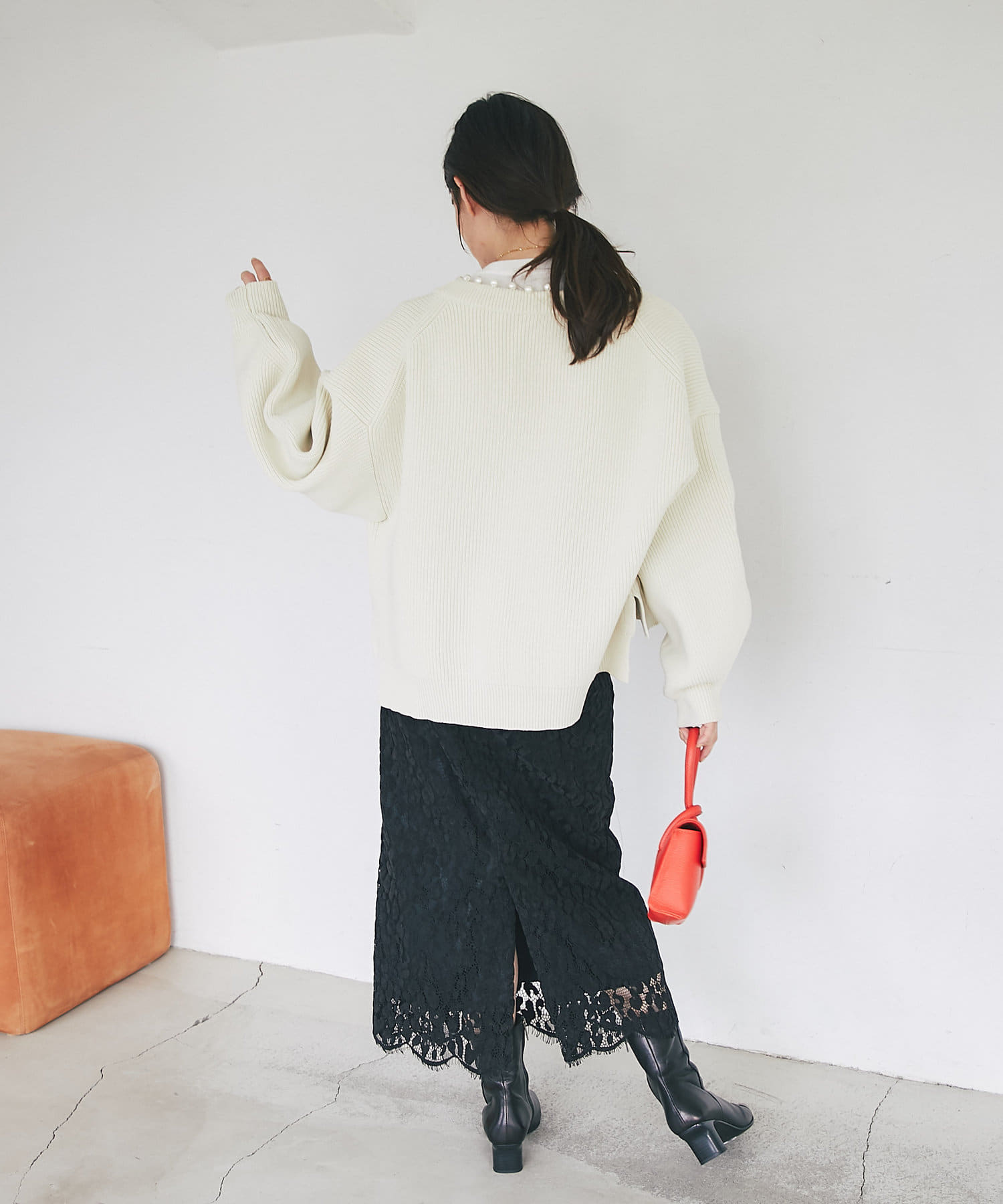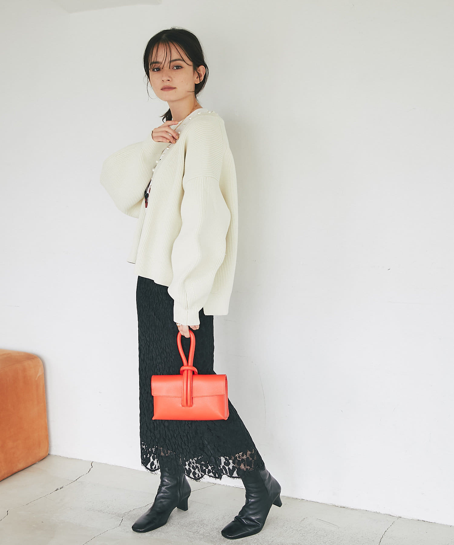 • シンプルなニットなどに合わせるだけでコーデが決まります。