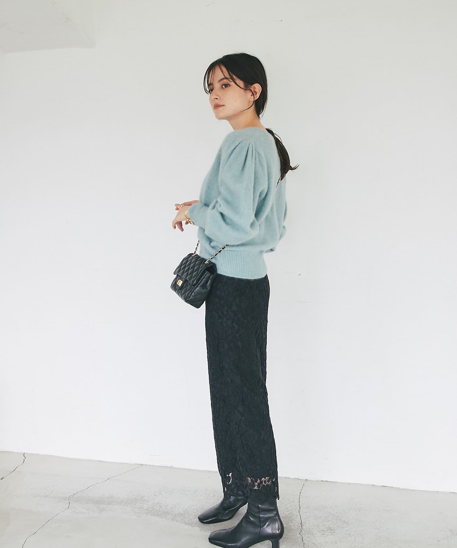 • フェミニンなトップスとの相性も抜群。