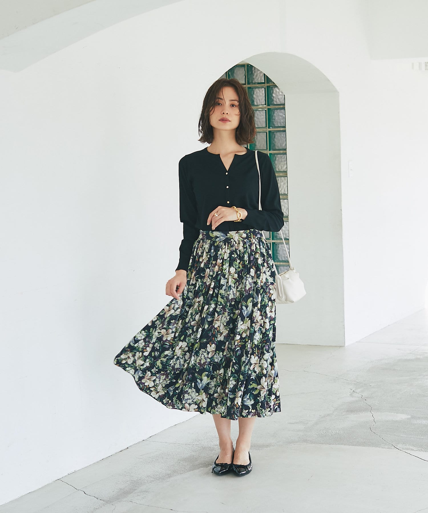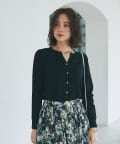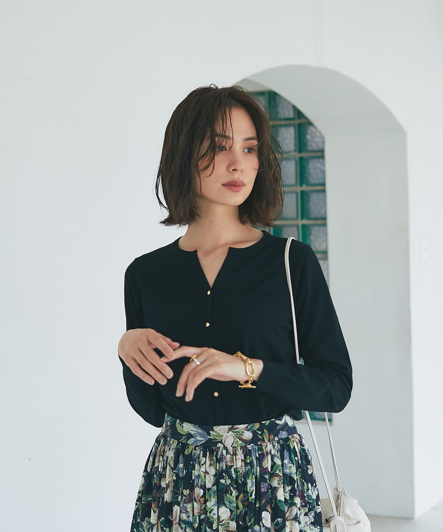 襟元のスキッパーデザインがデコルテをすっきり見せてくれて