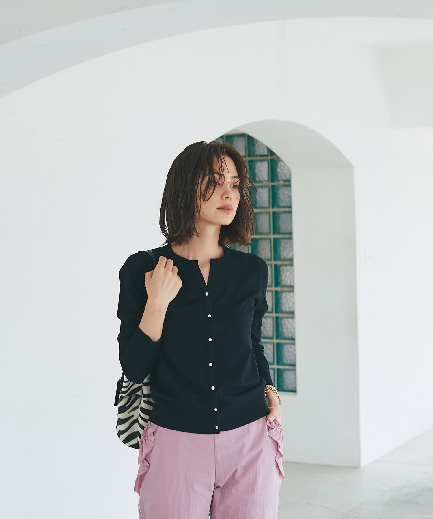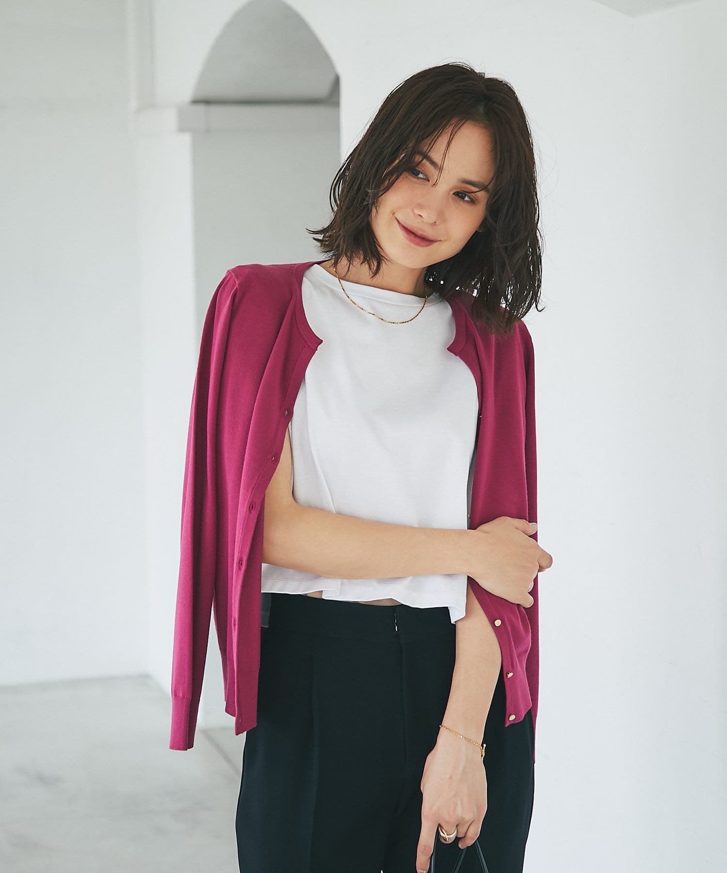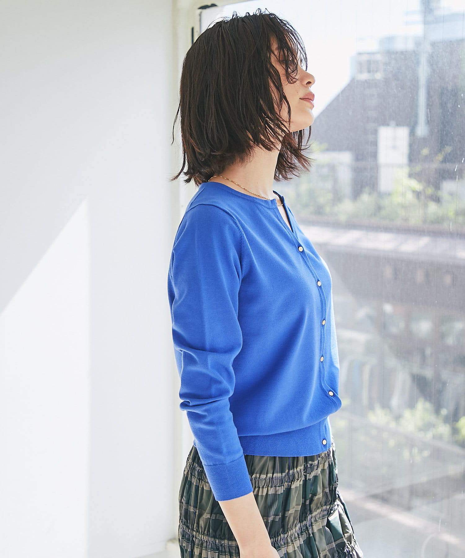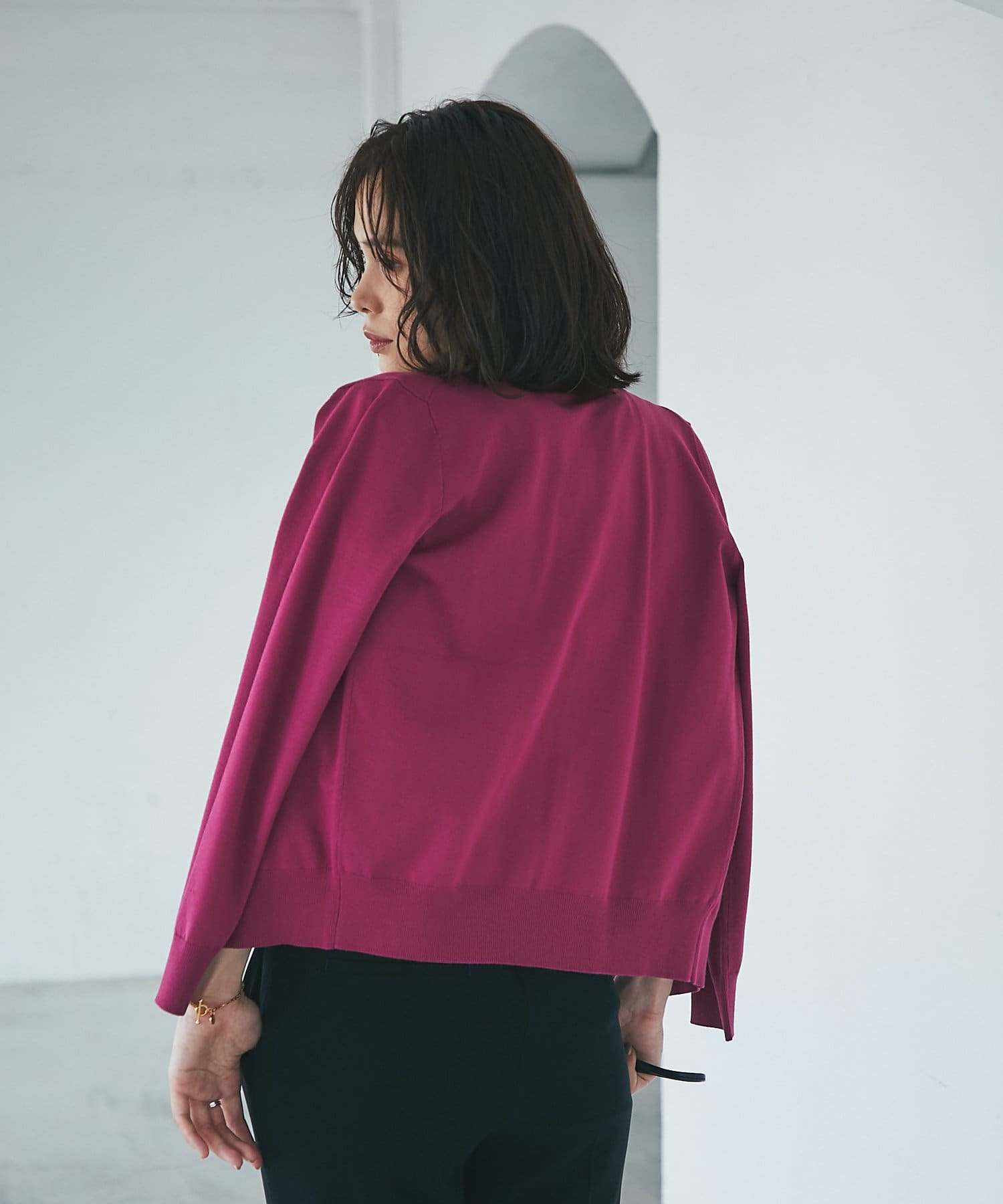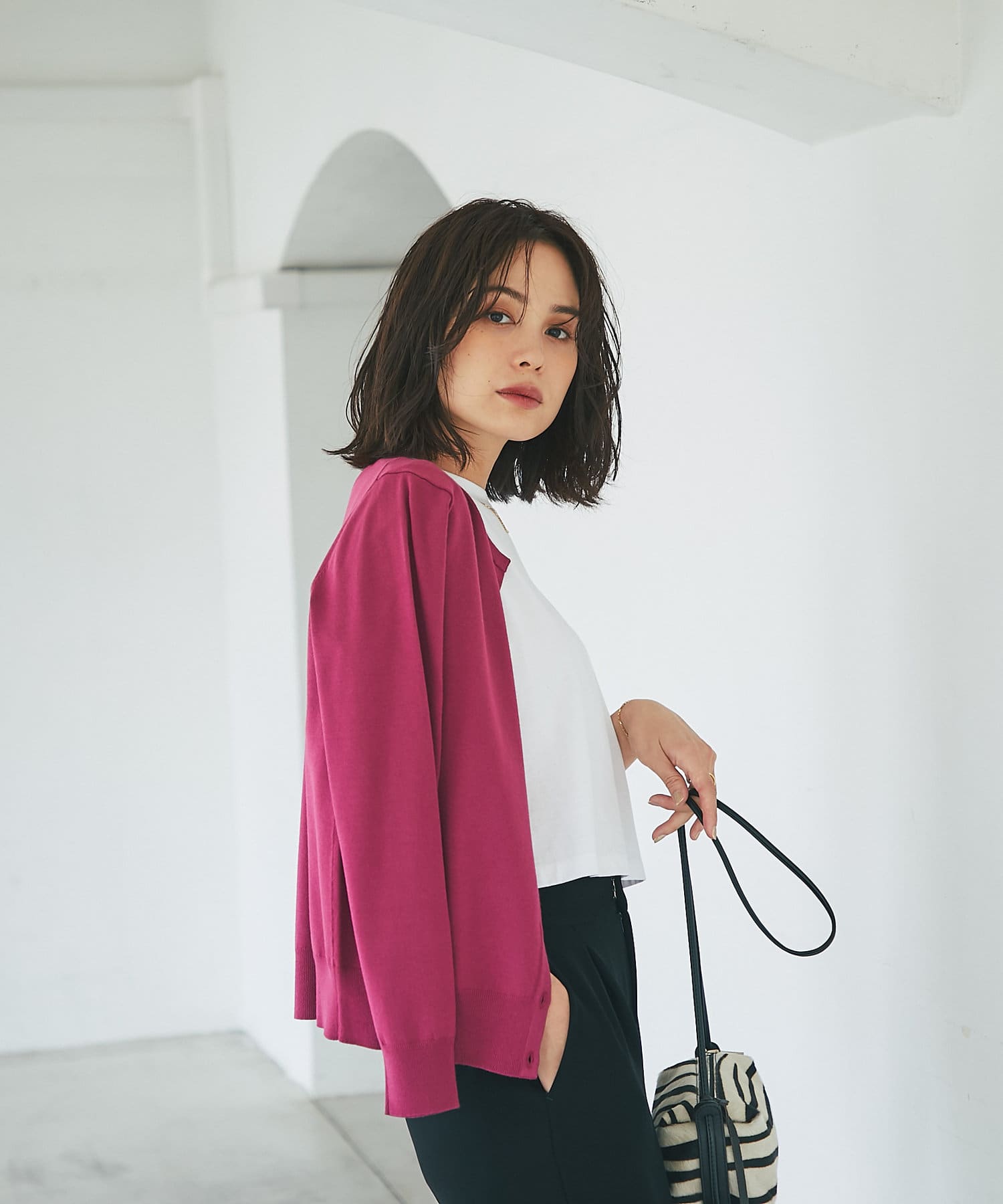 コンパクトなサイズ感がきれいめなカーディガンです。