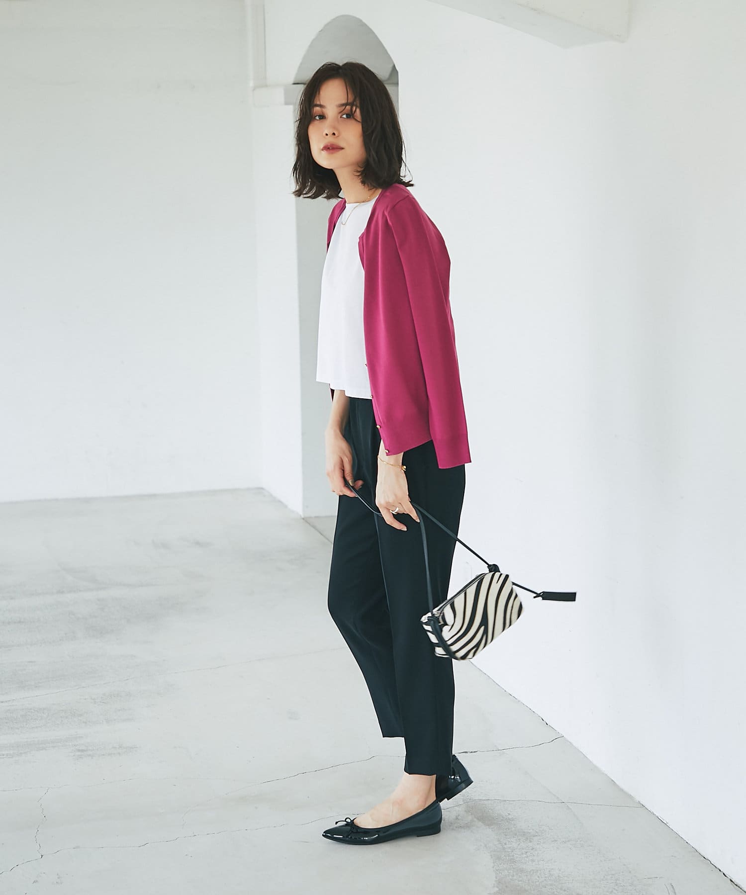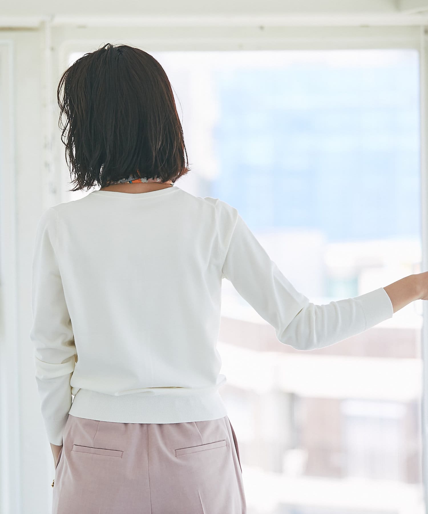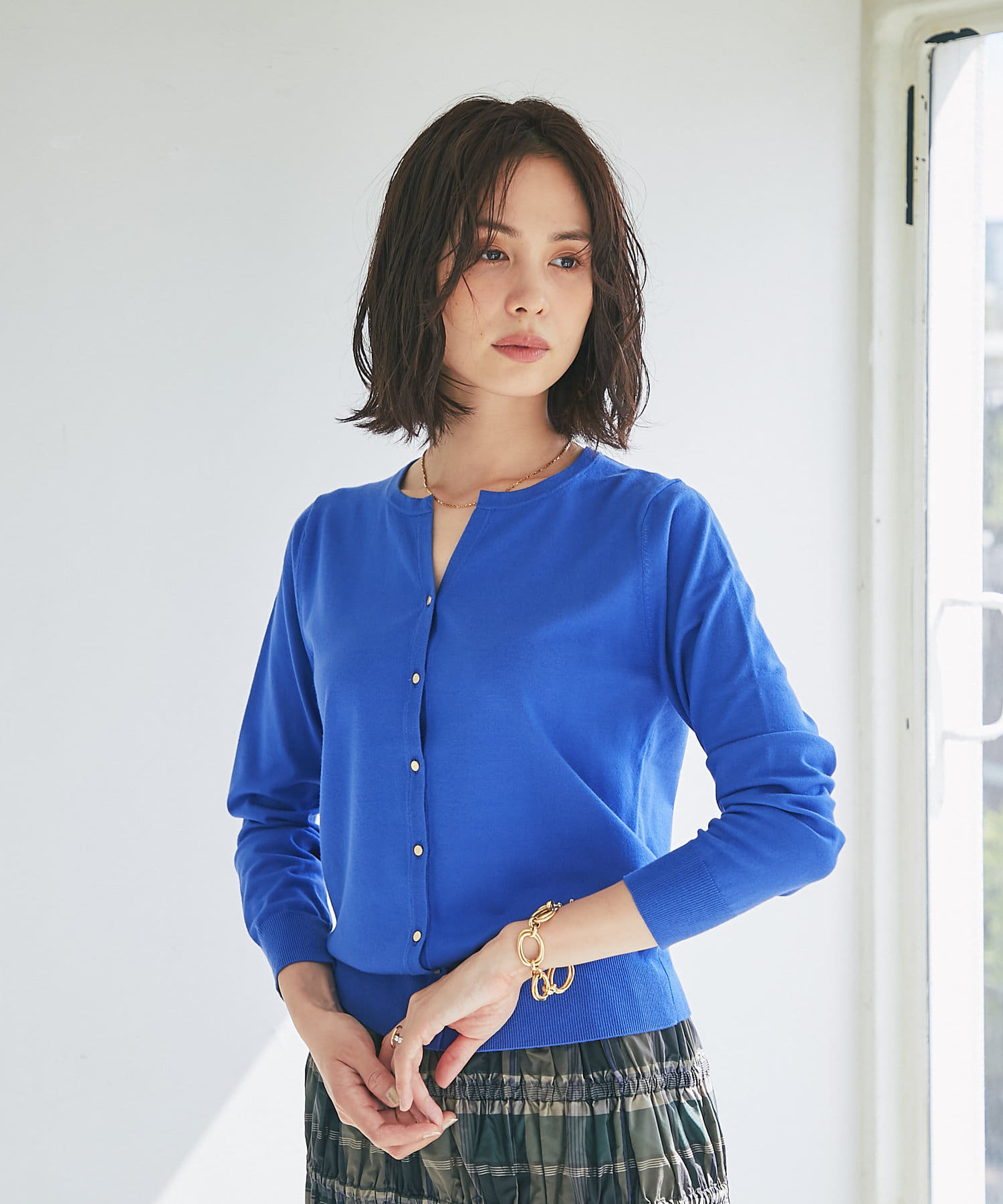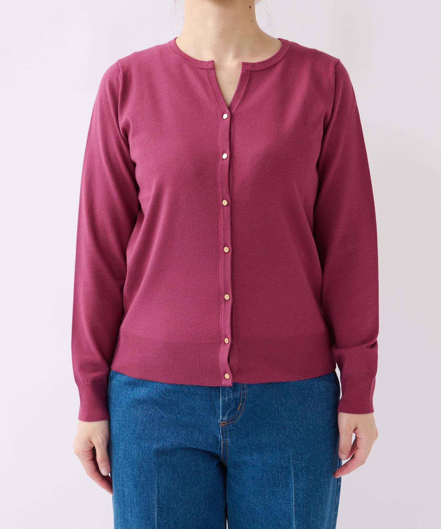 コンパクトなサイズ感がきれいめなカーディガンです。