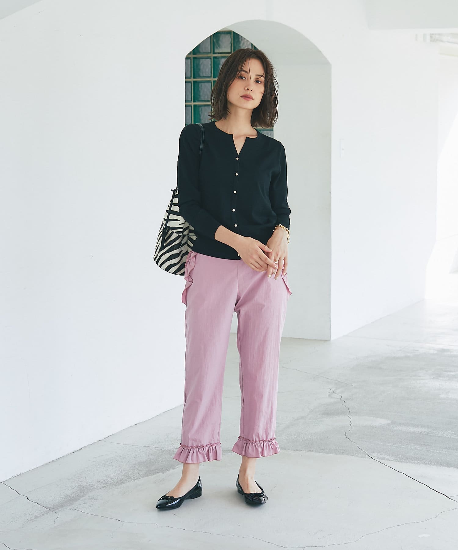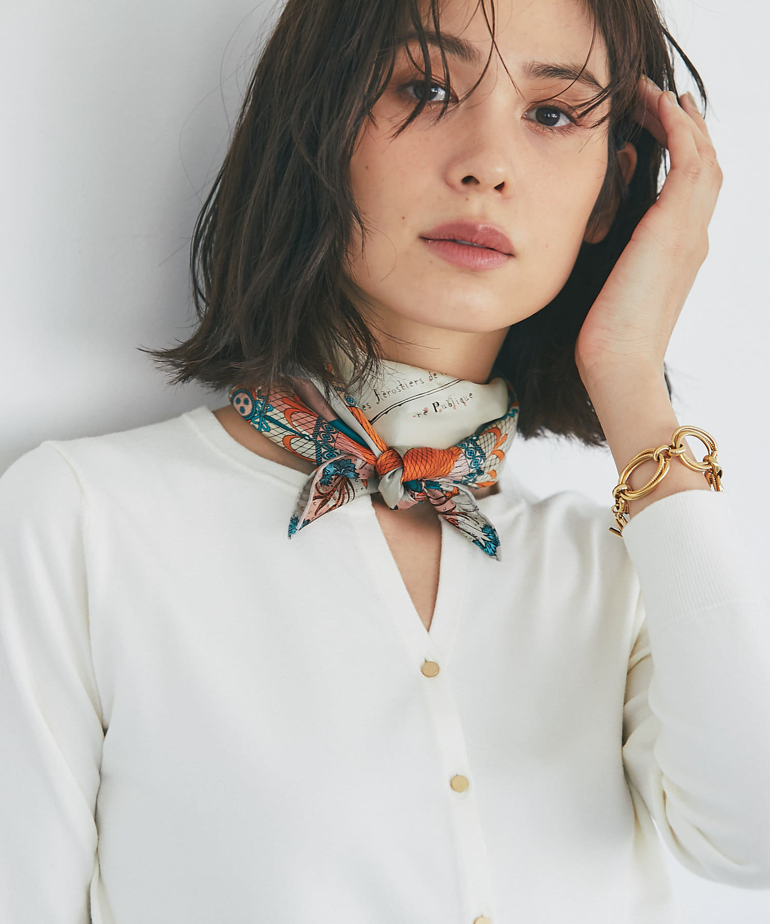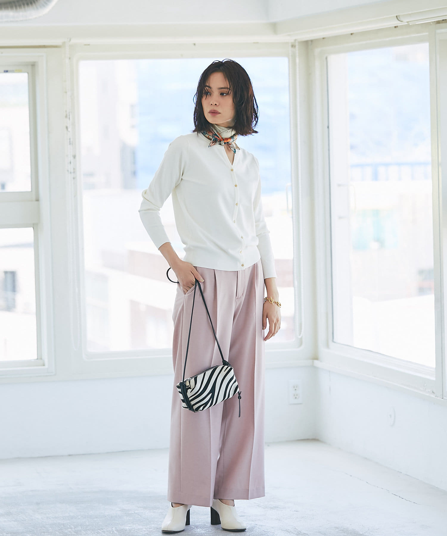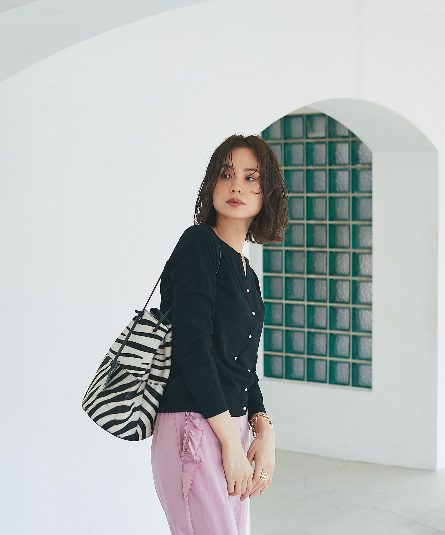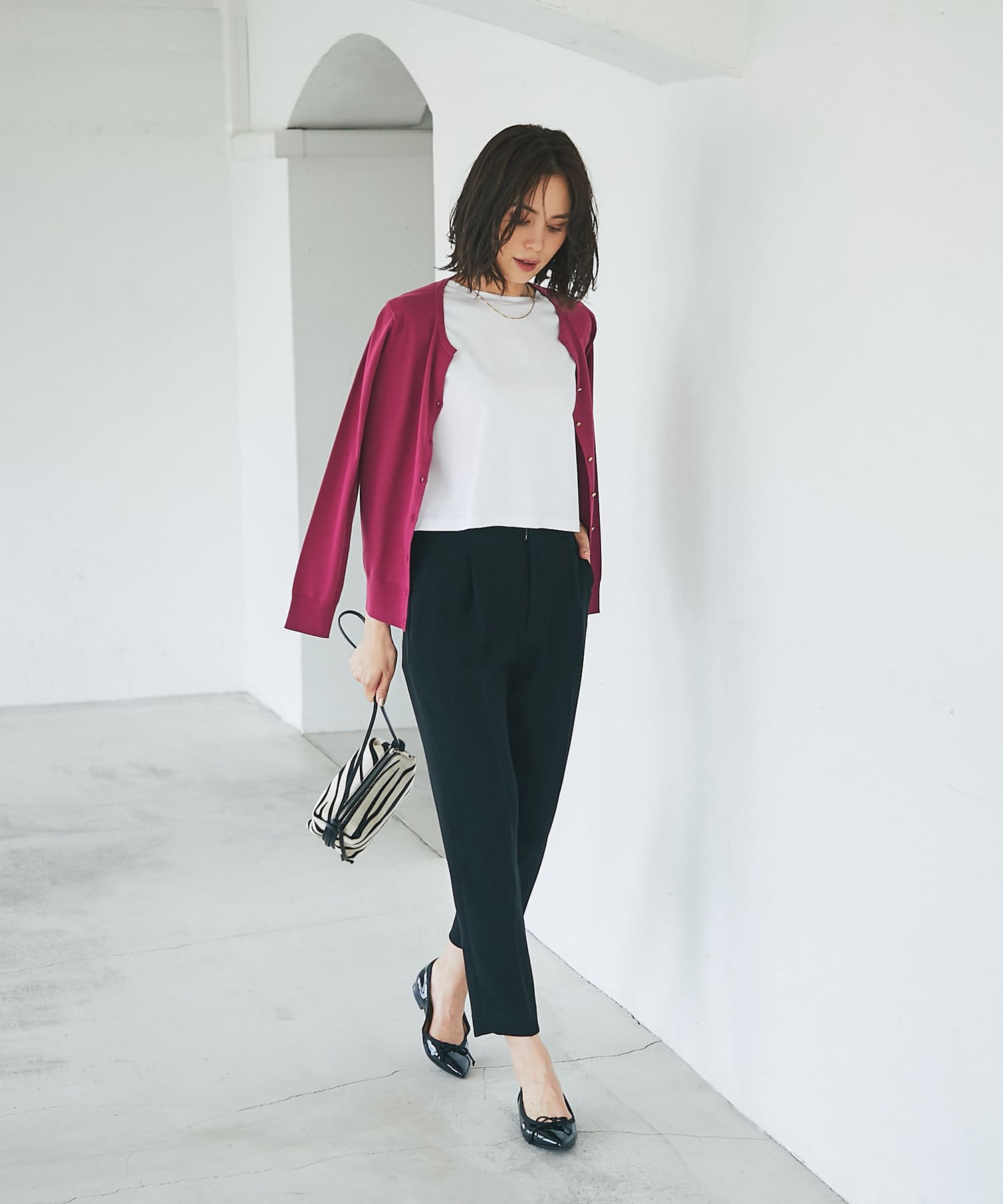 コンパクトなサイズ感がきれいめなカーディガンです。