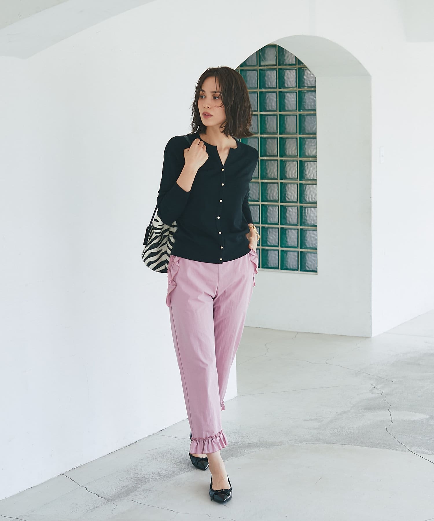 また、ゴールドの釦が上品で女性らしい雰囲気を演出してくれます。