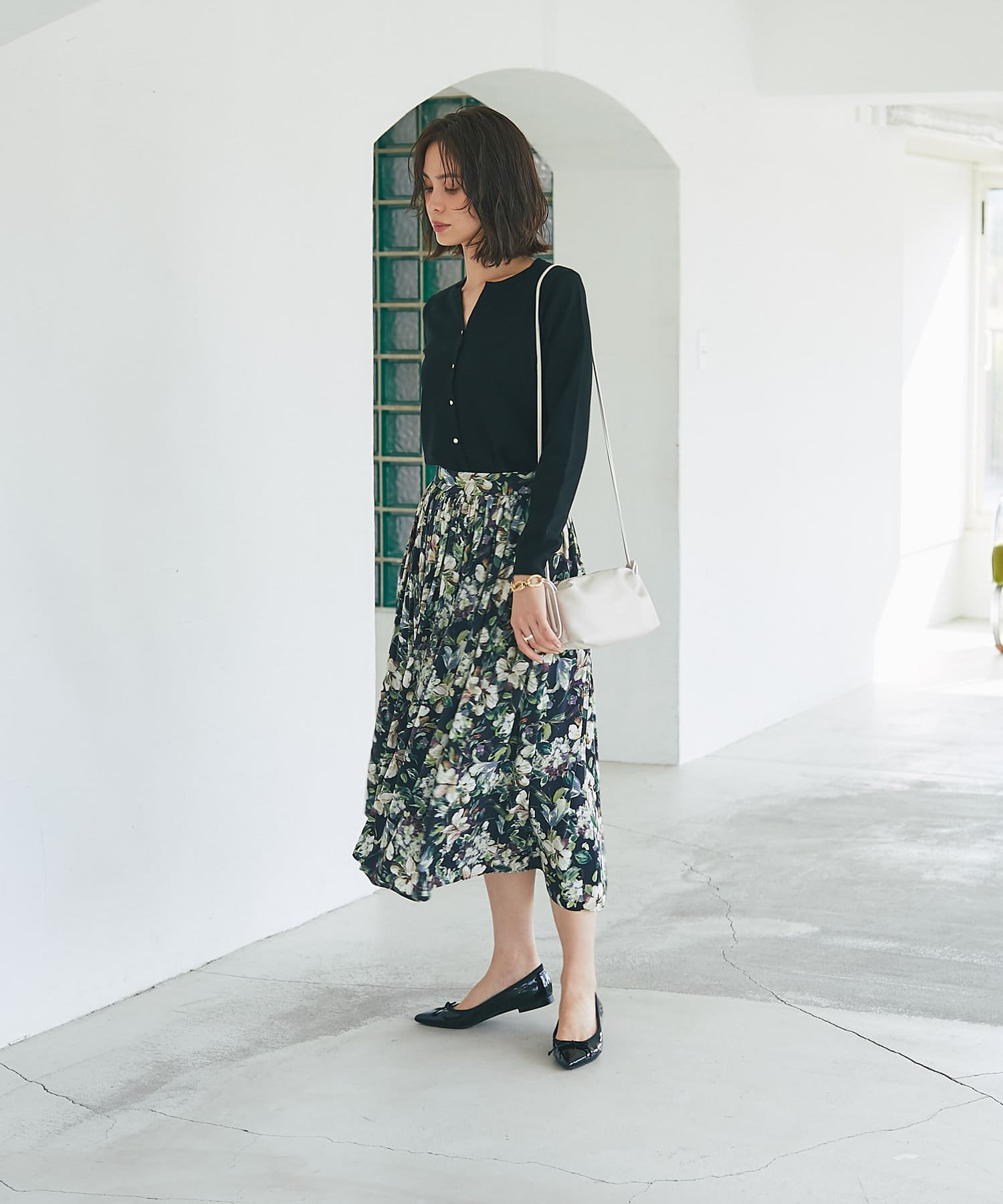 タイト過ぎないシルエットと女性らしい衿元でスキッパーになっているので、デコルテをきれいに見せてくれます。