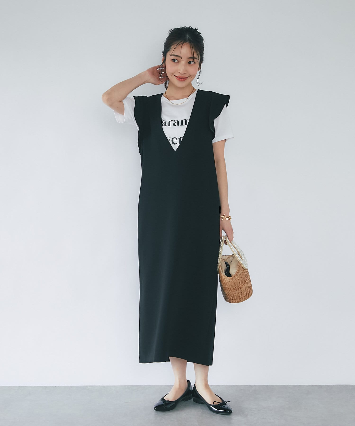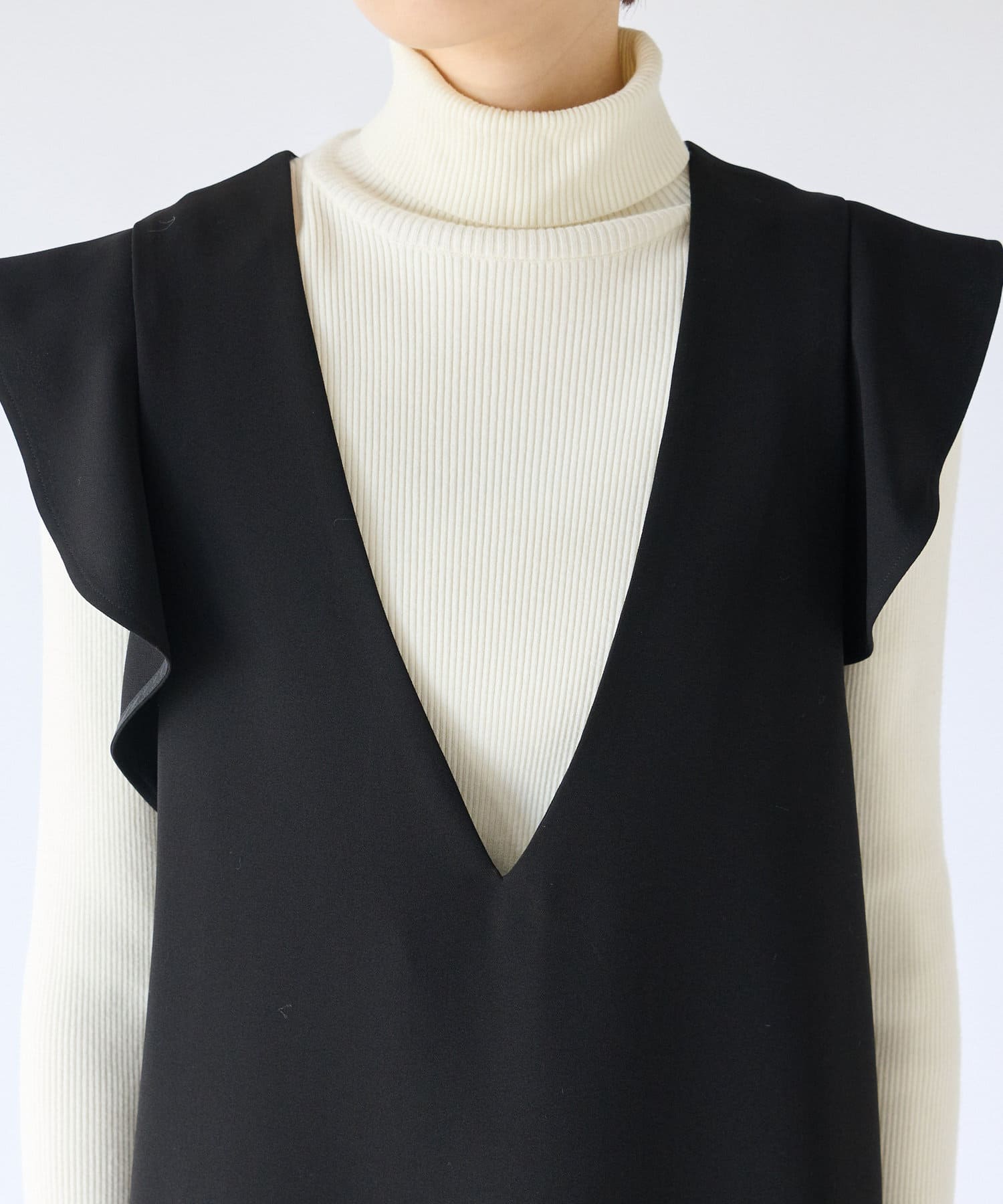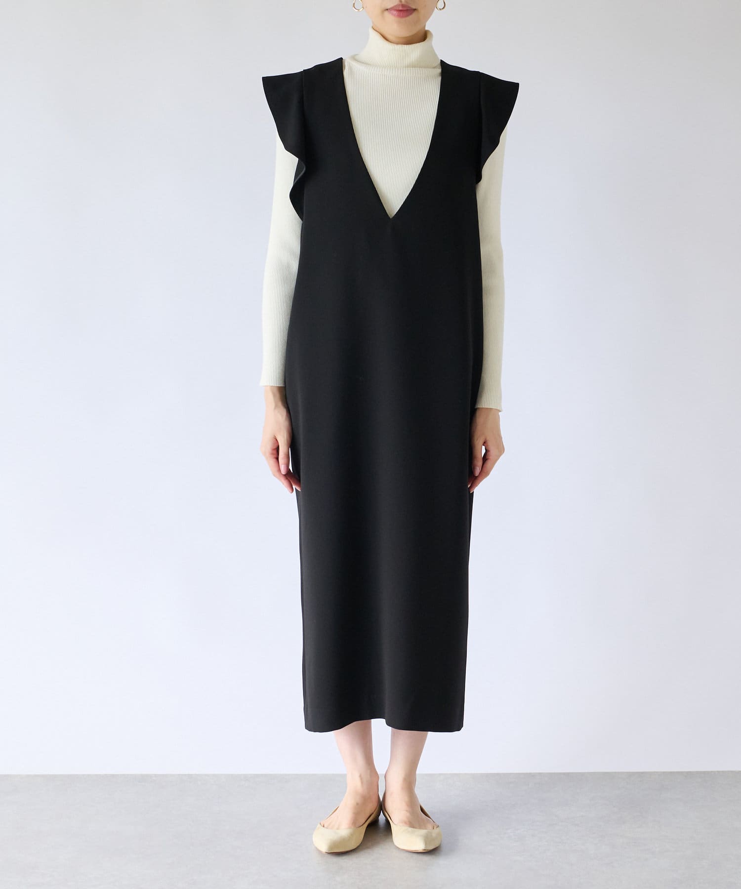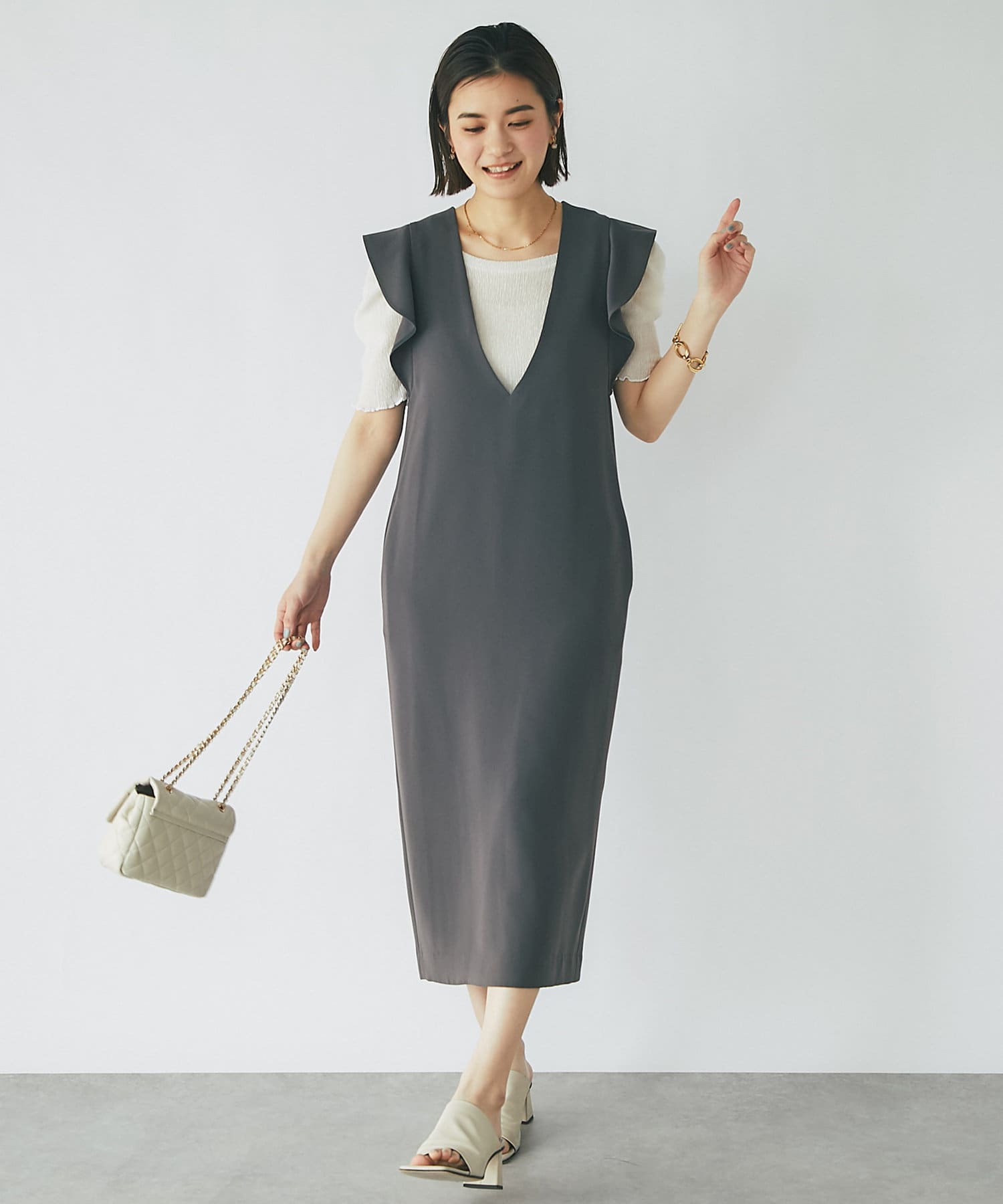 すぐに着られるラッフルスリーブの深Vネックジャンドレ。