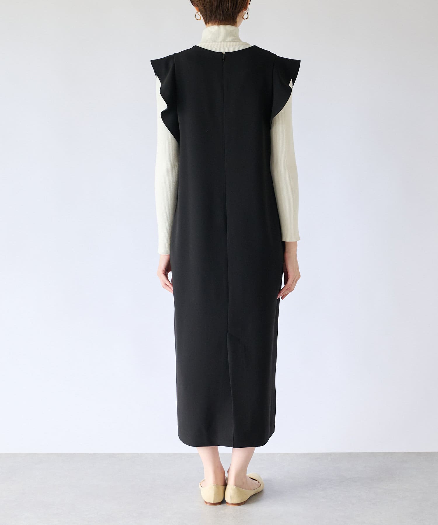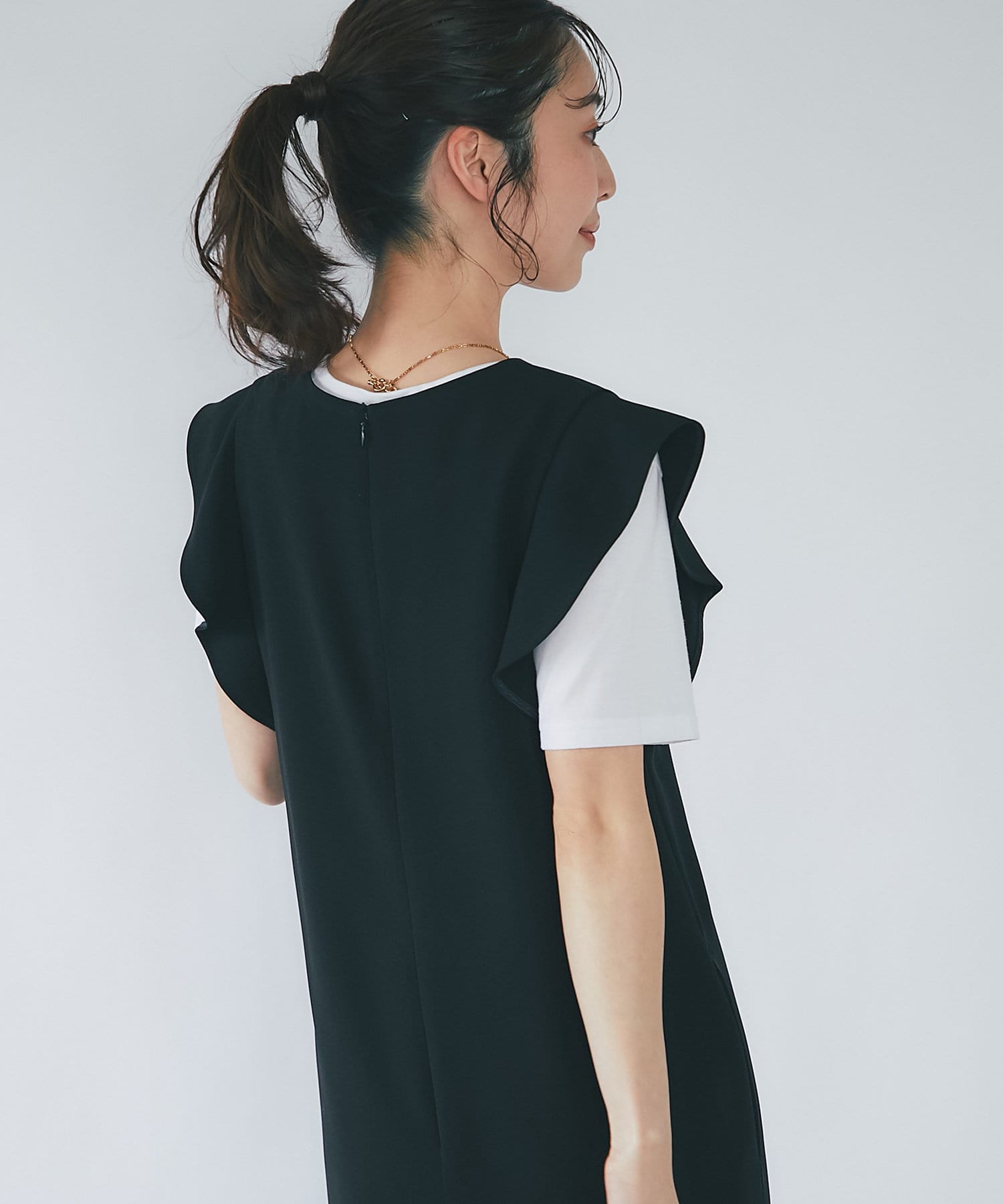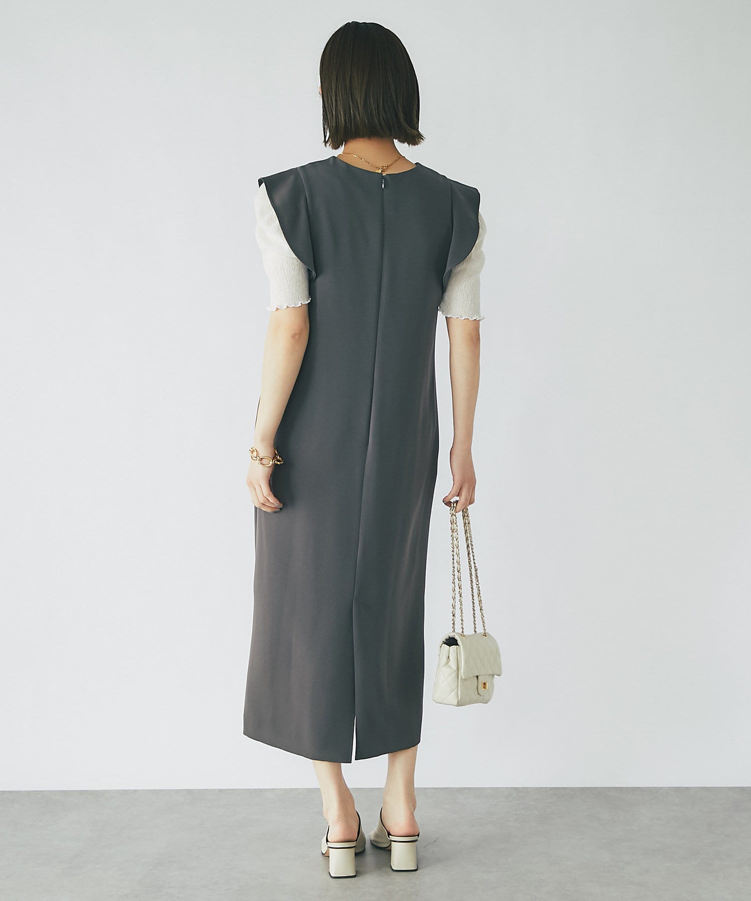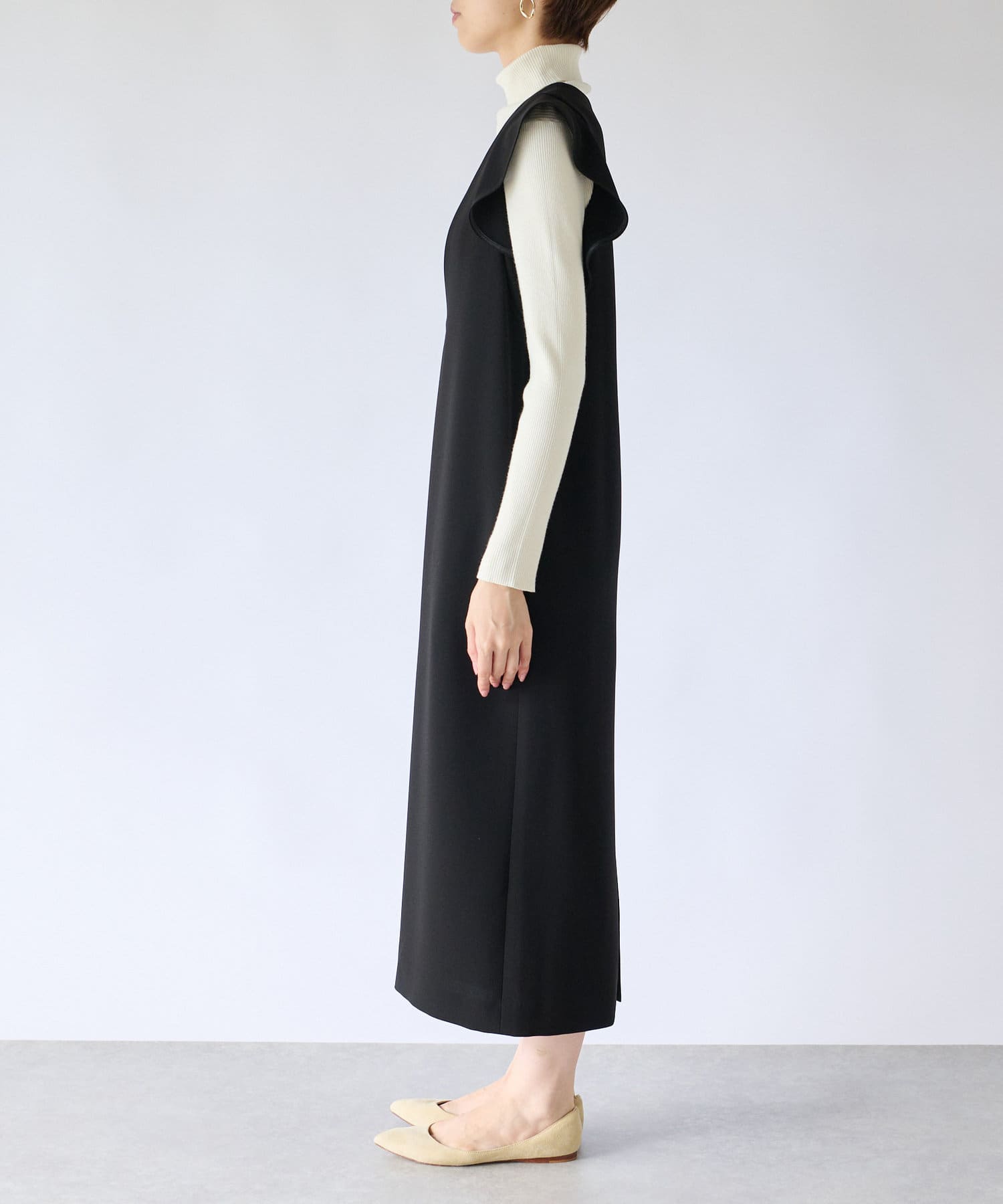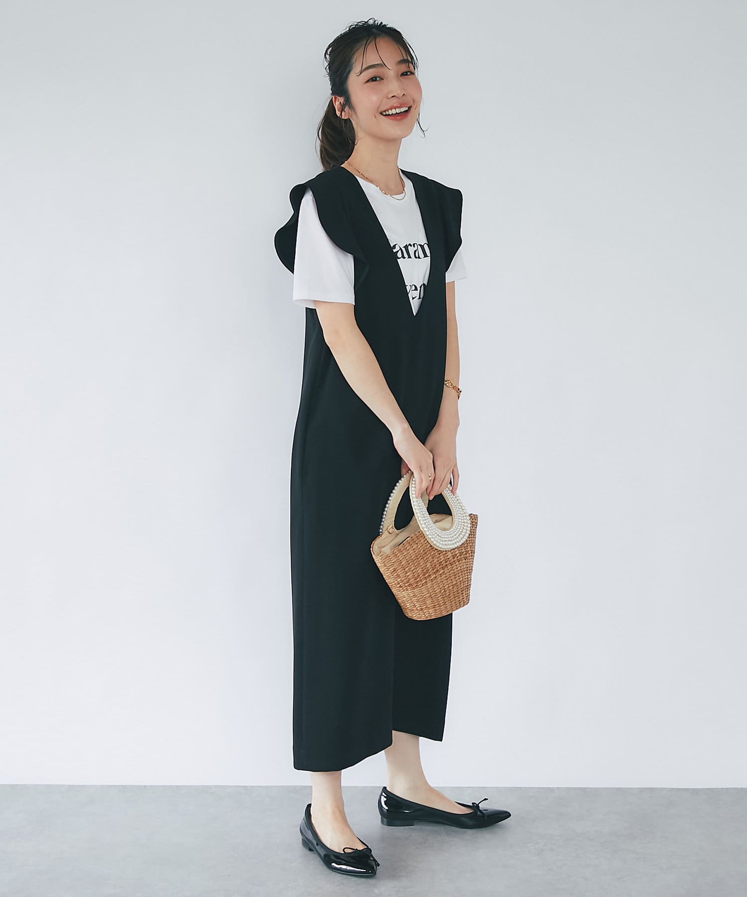 すぐに着られるラッフルスリーブの深Vネックジャンドレ。