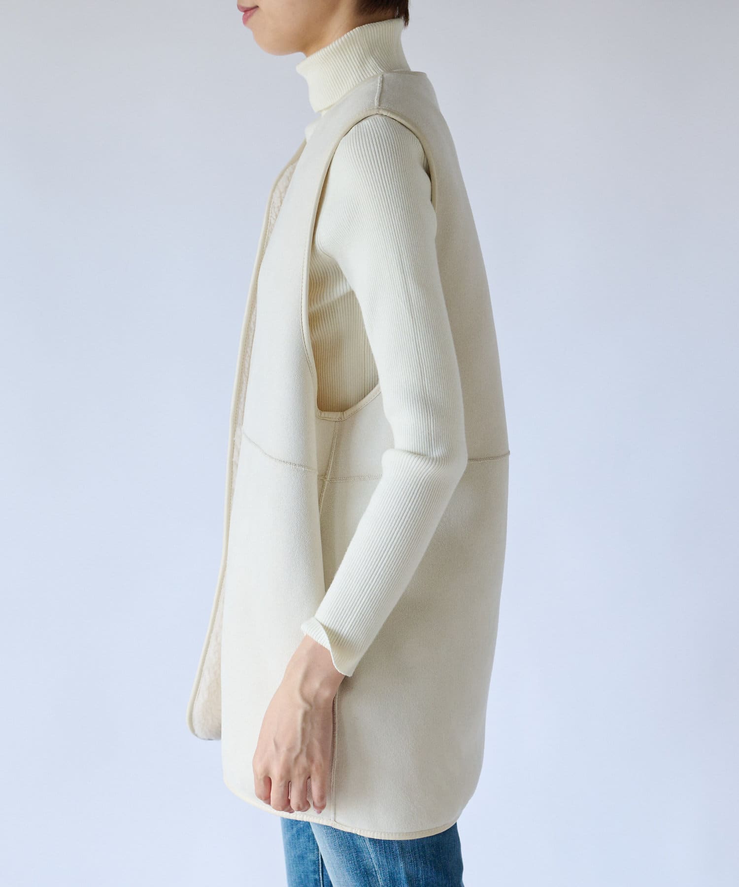 アームホールも大きめなのでワンピースやニットなどとスタイリングにぴったり。