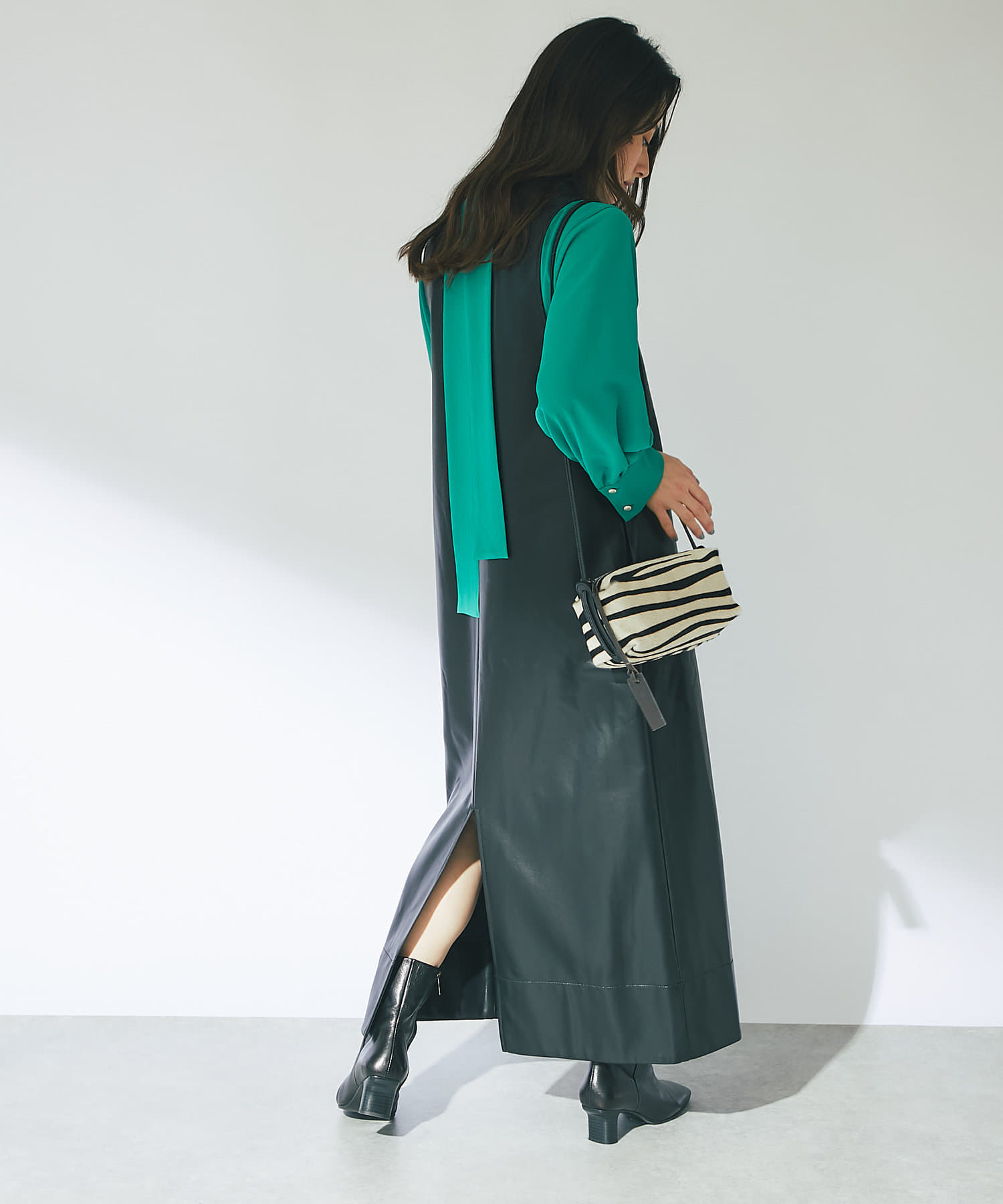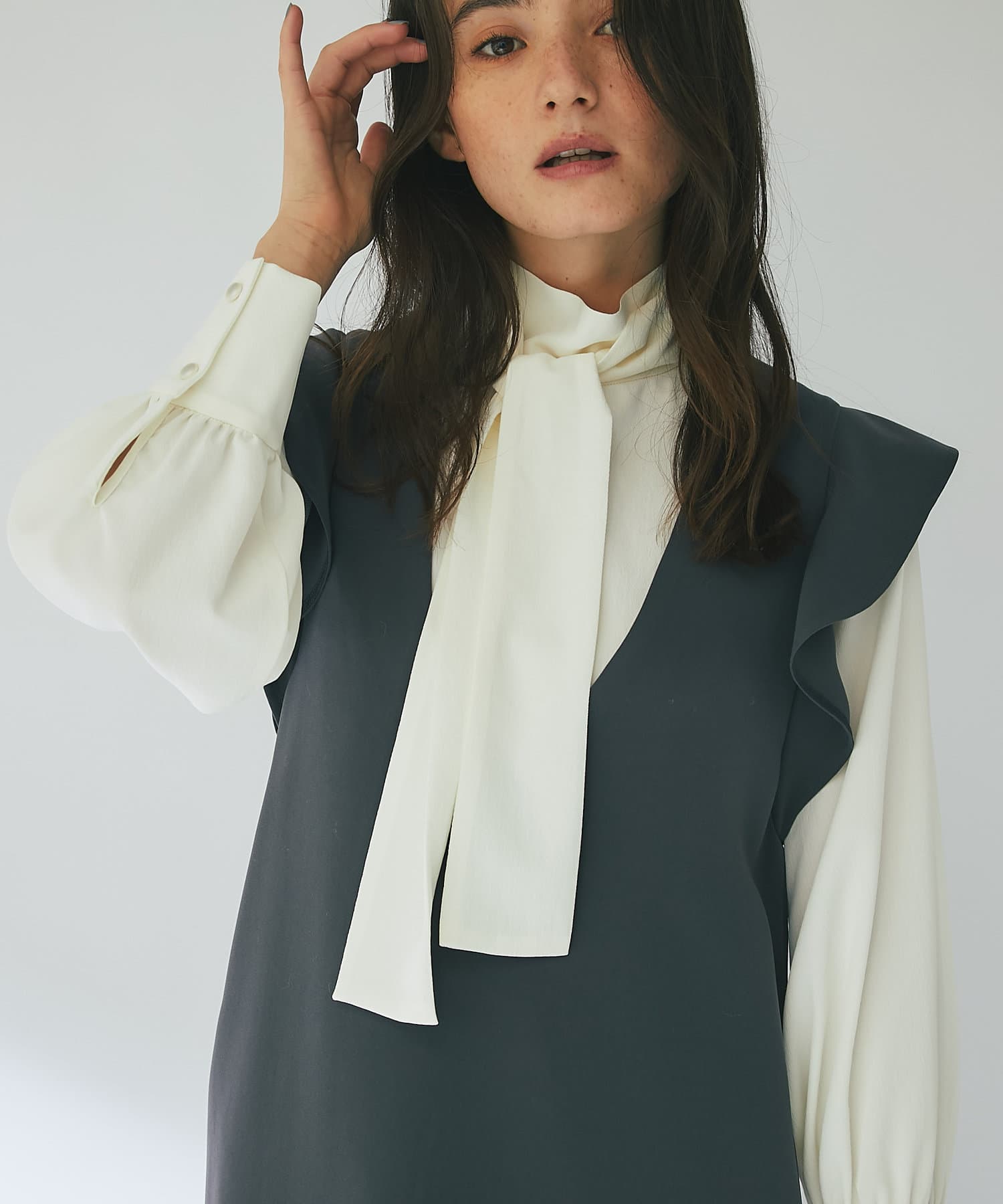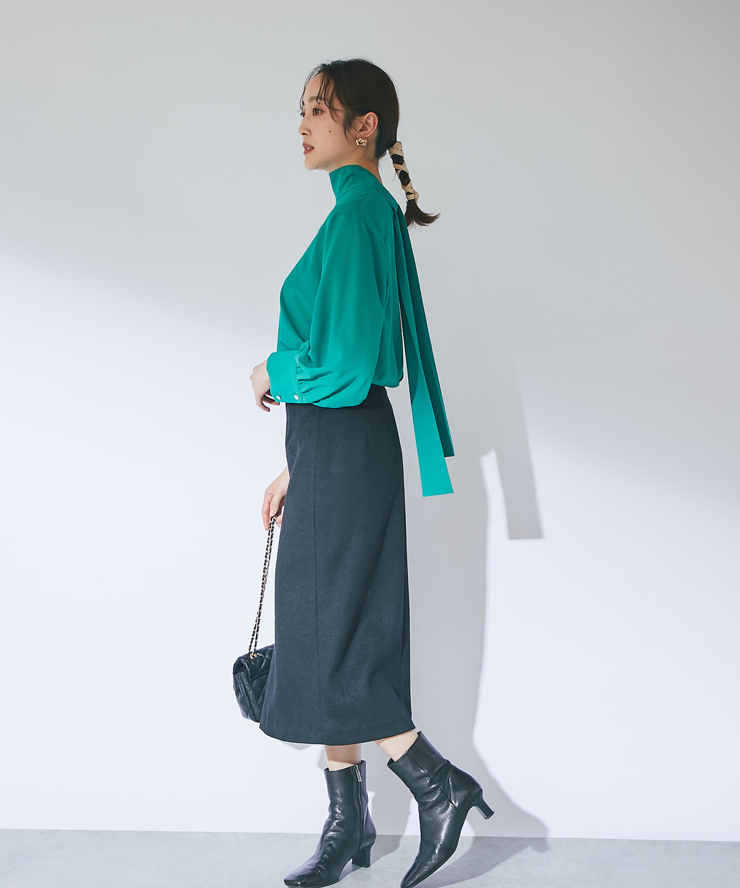 #ボウタイブラウス #レイヤード #トレンド #長袖 #グリーン