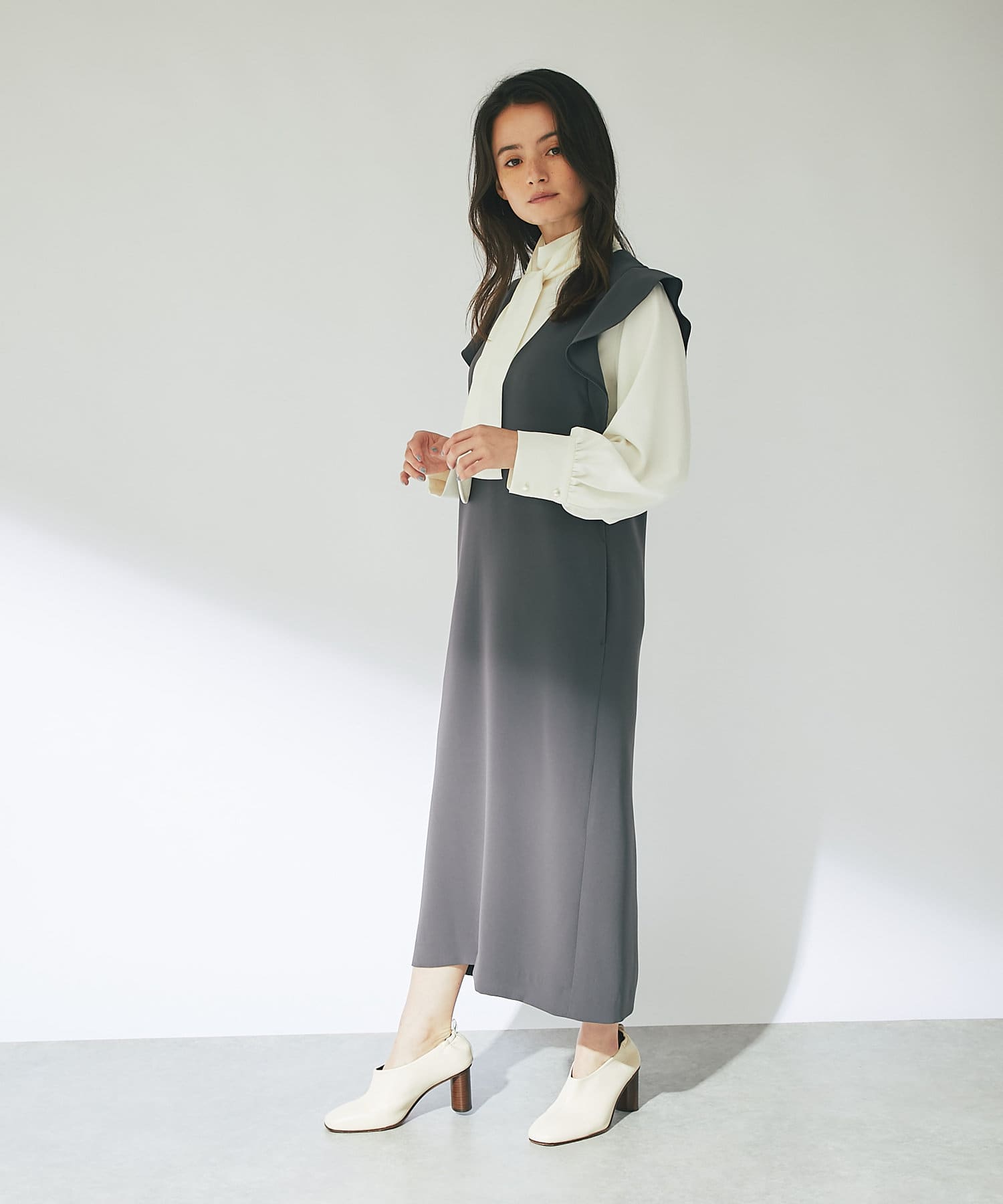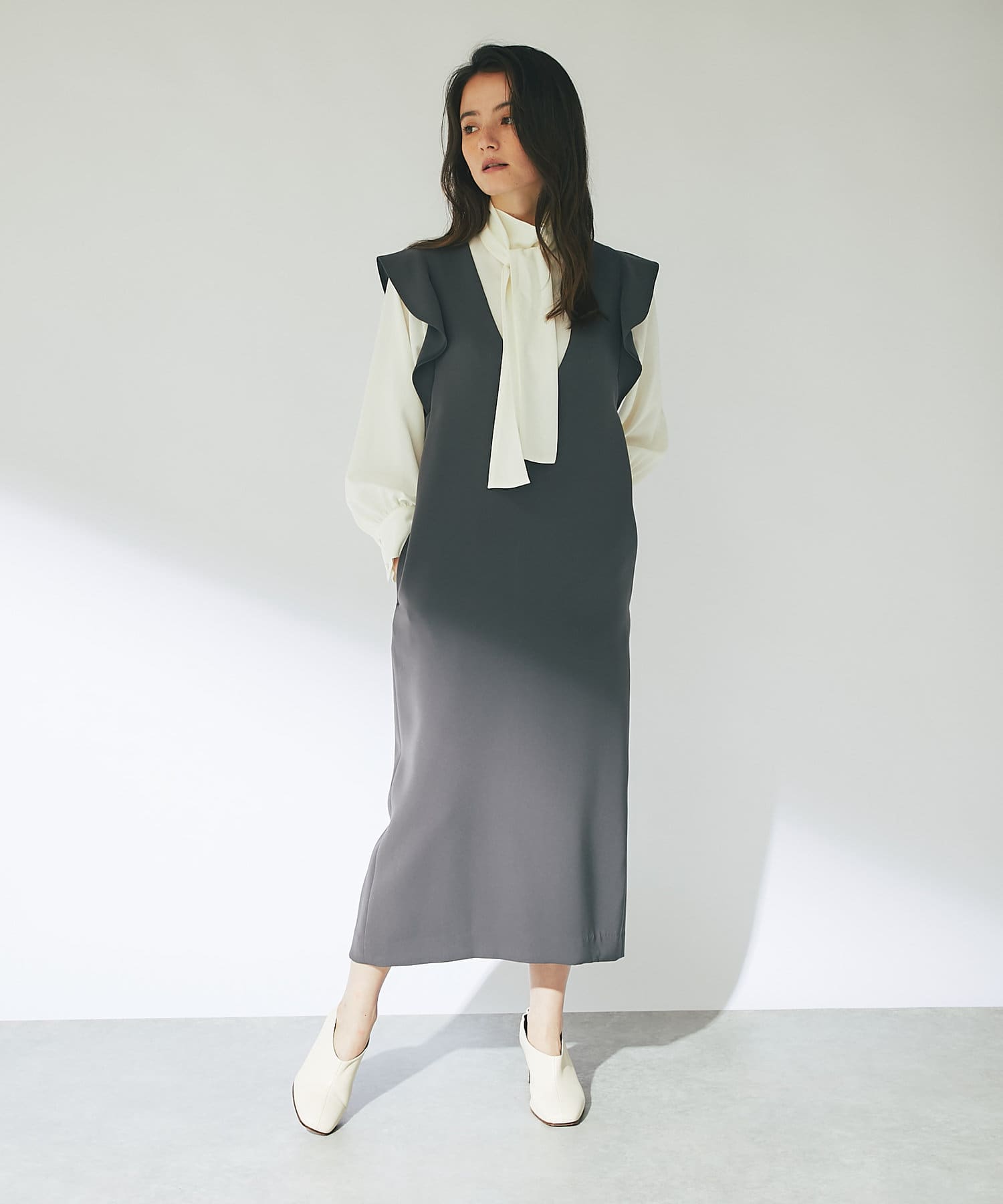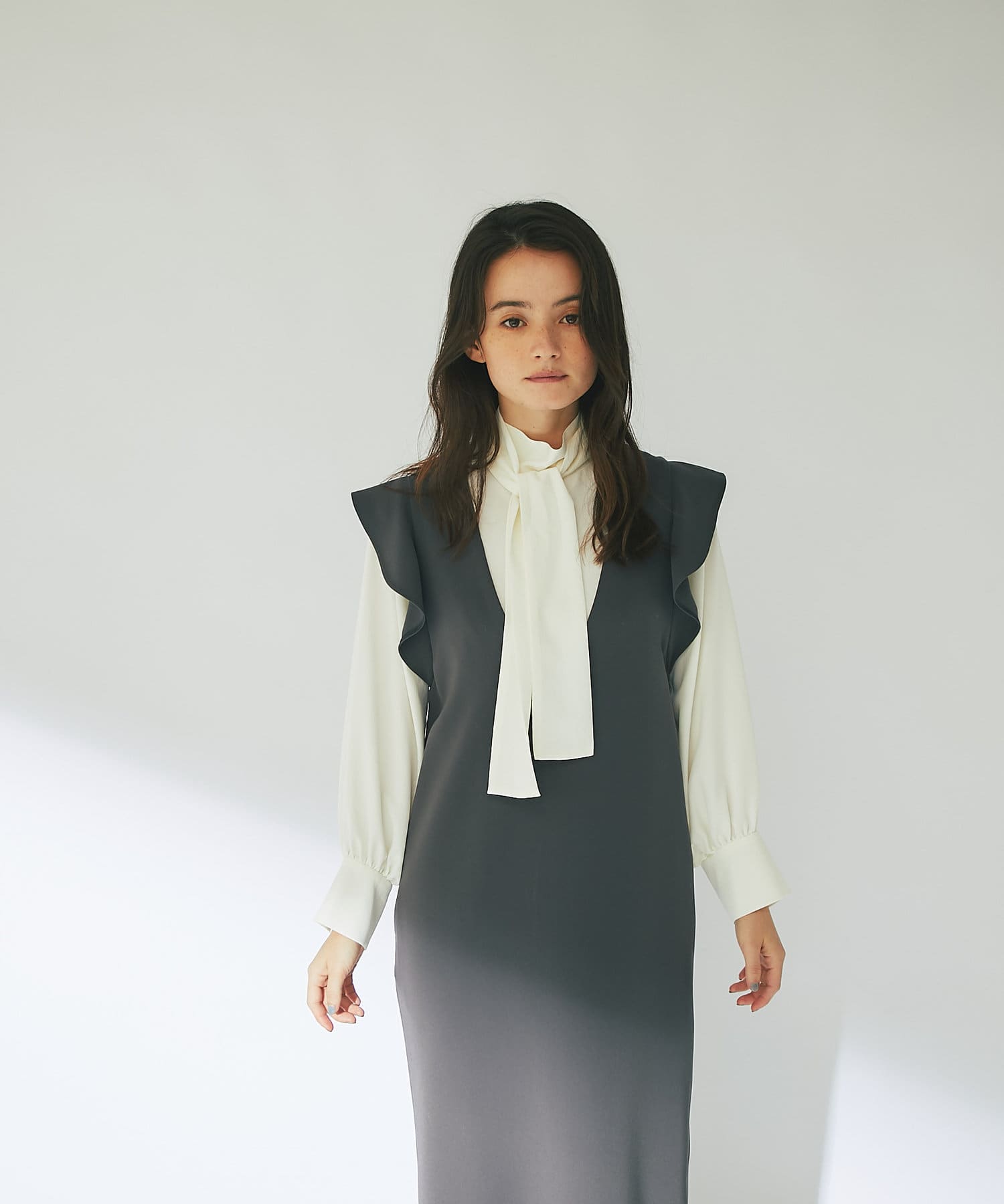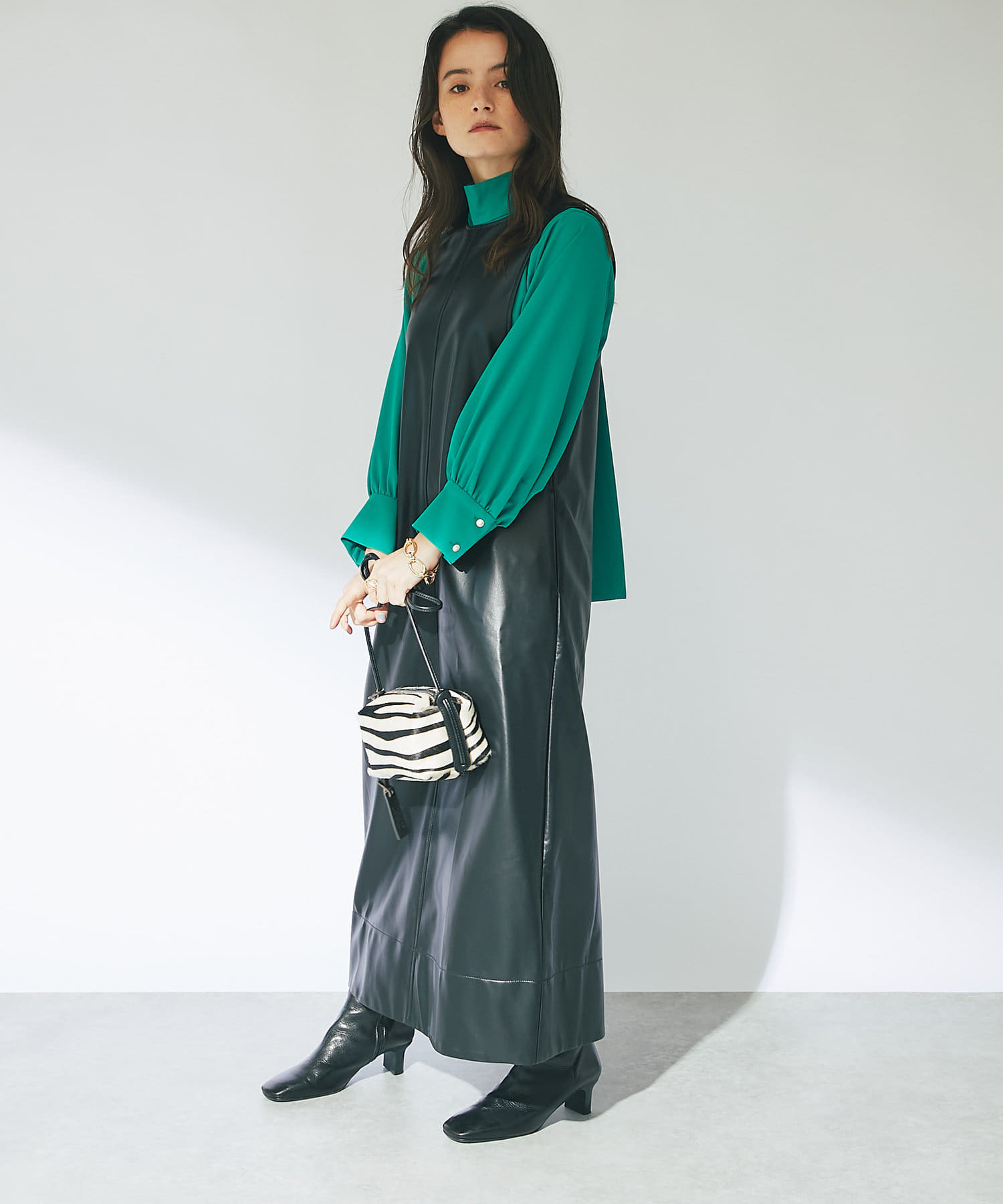 #ボウタイブラウス #レイヤード #トレンド #長袖 #グリーン