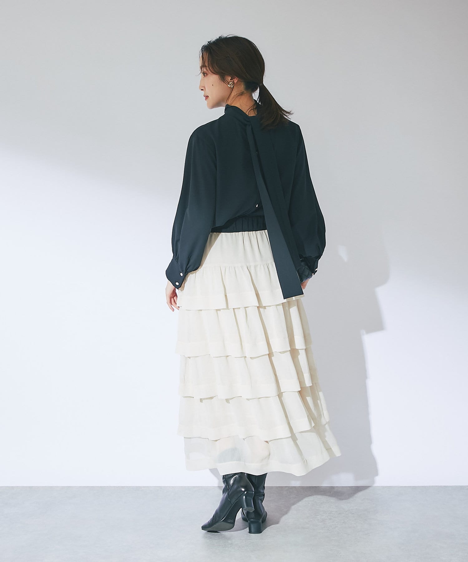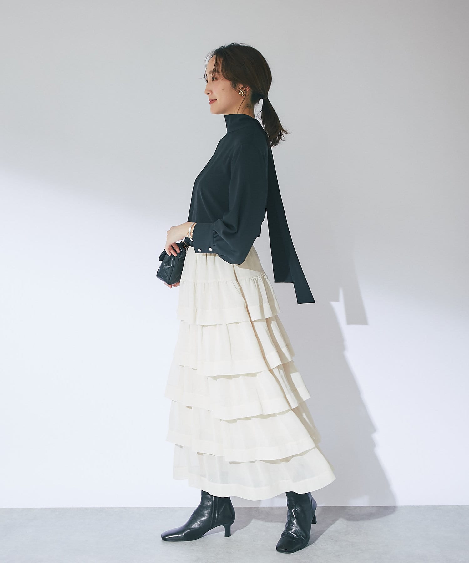 着こなしに華やぎをプラスするボウタイ付きブラウス