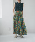 【再入荷・低身長サイズあり】ボタニカルプリントギャザーロングスカート