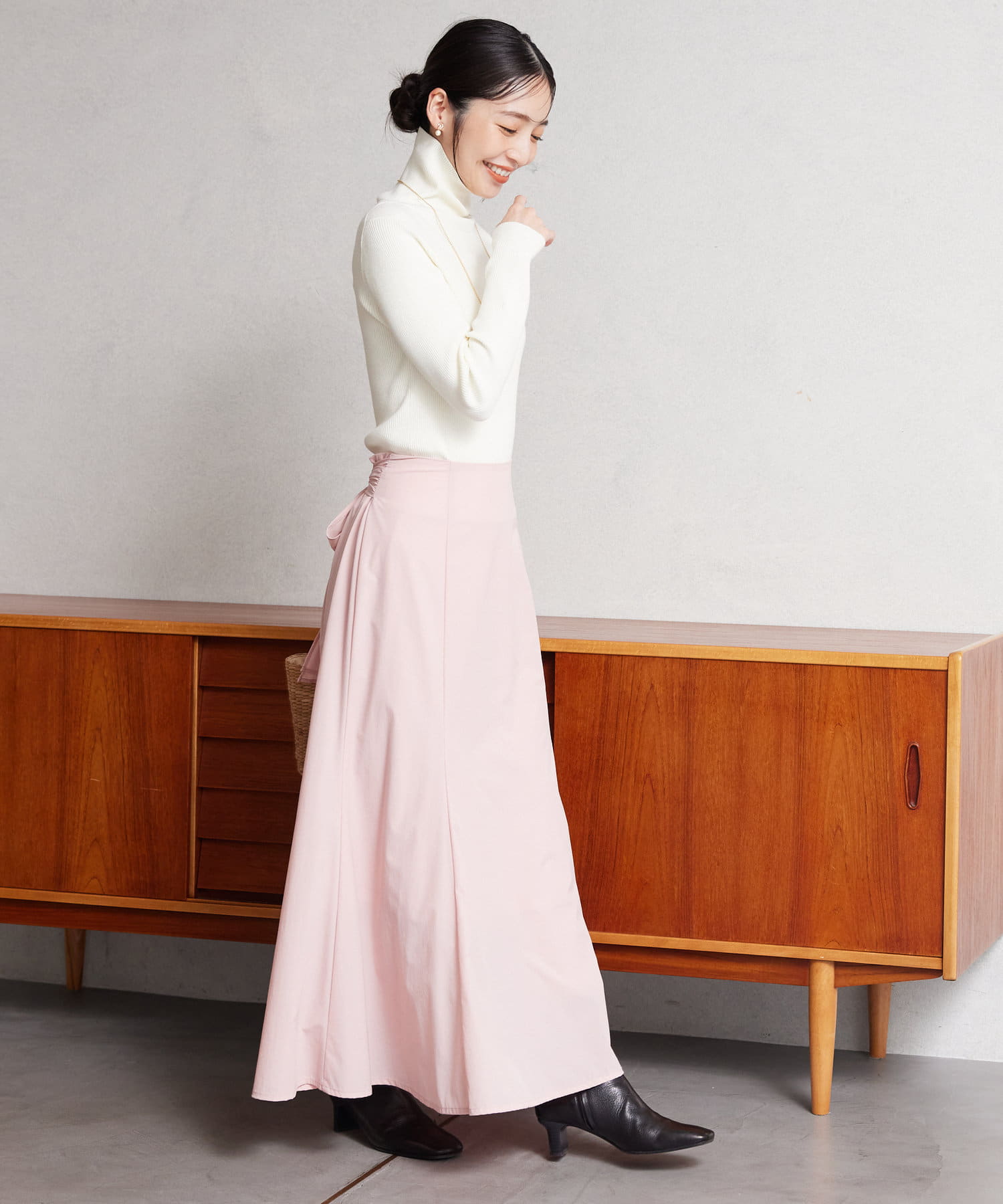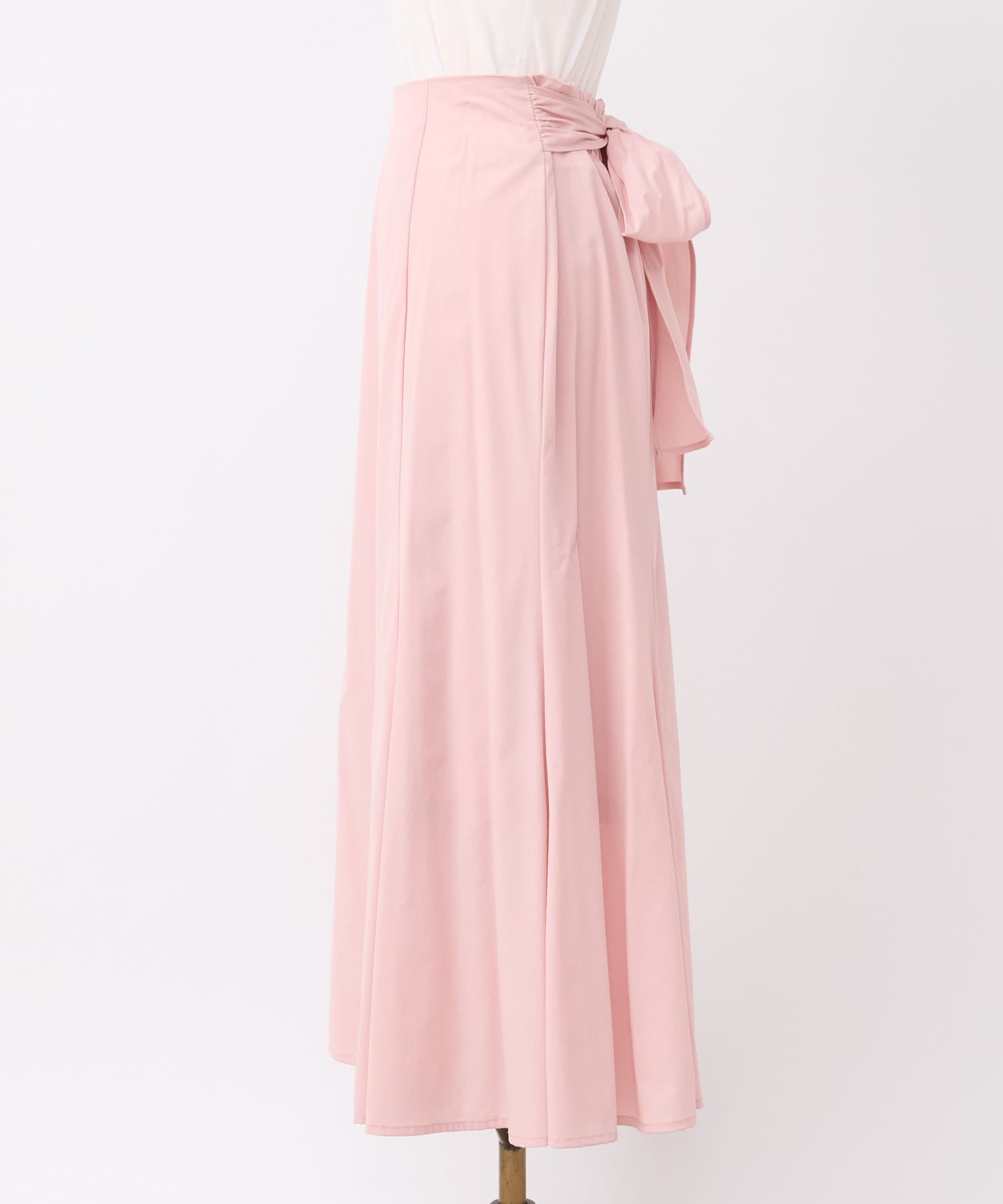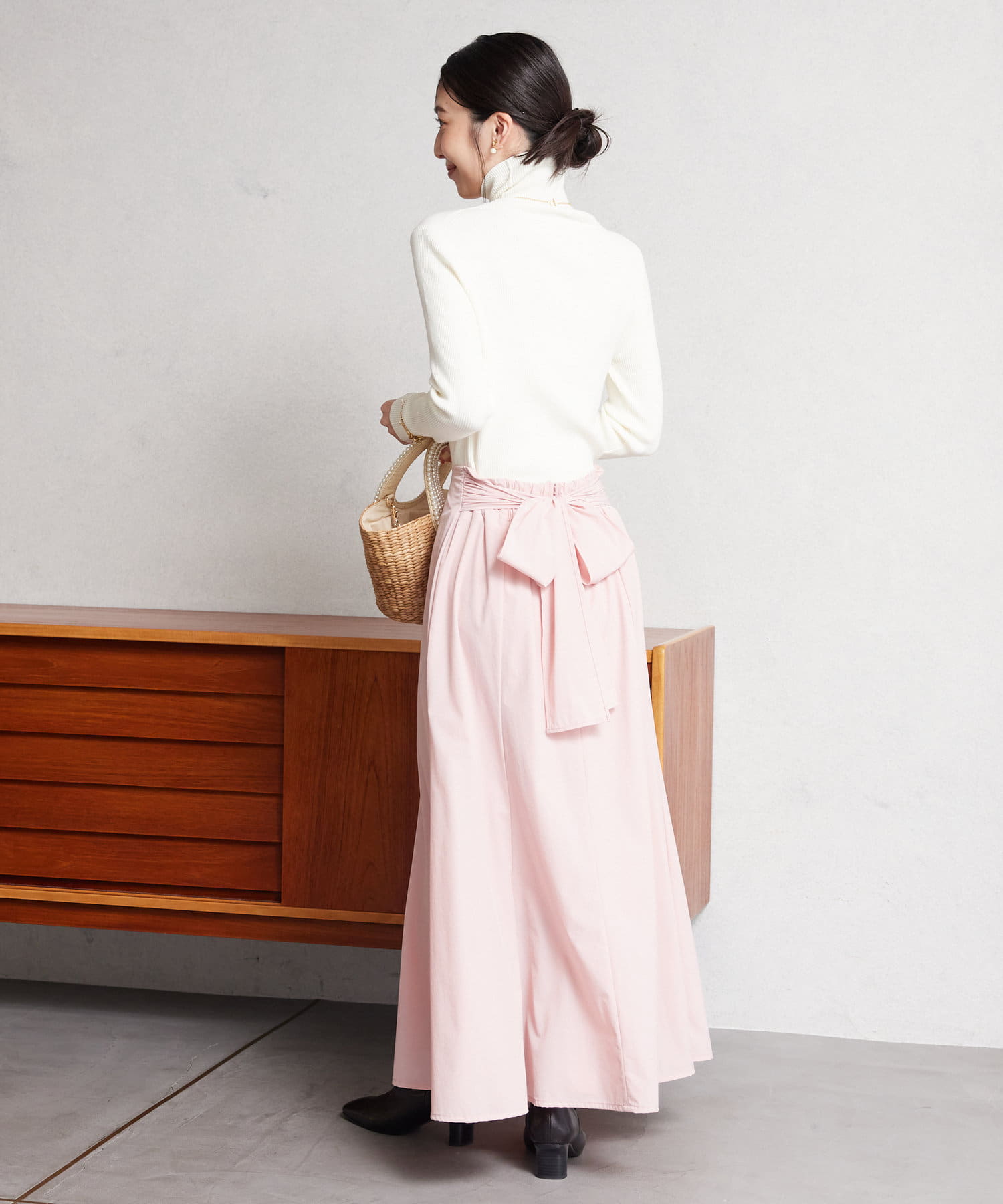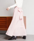 ウエストのサッシュリボンが華やかなマキシスカート。