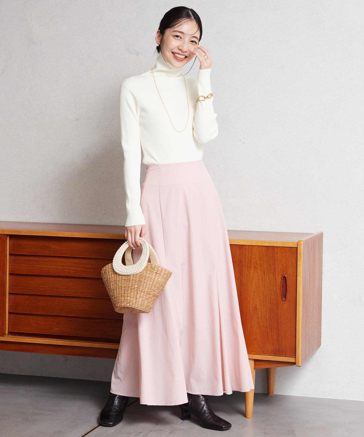 シンプルなデザインなのでトップスは選ばず、ニットやブラウスなどフェミニンにもカジュアルにもお使い頂けます。