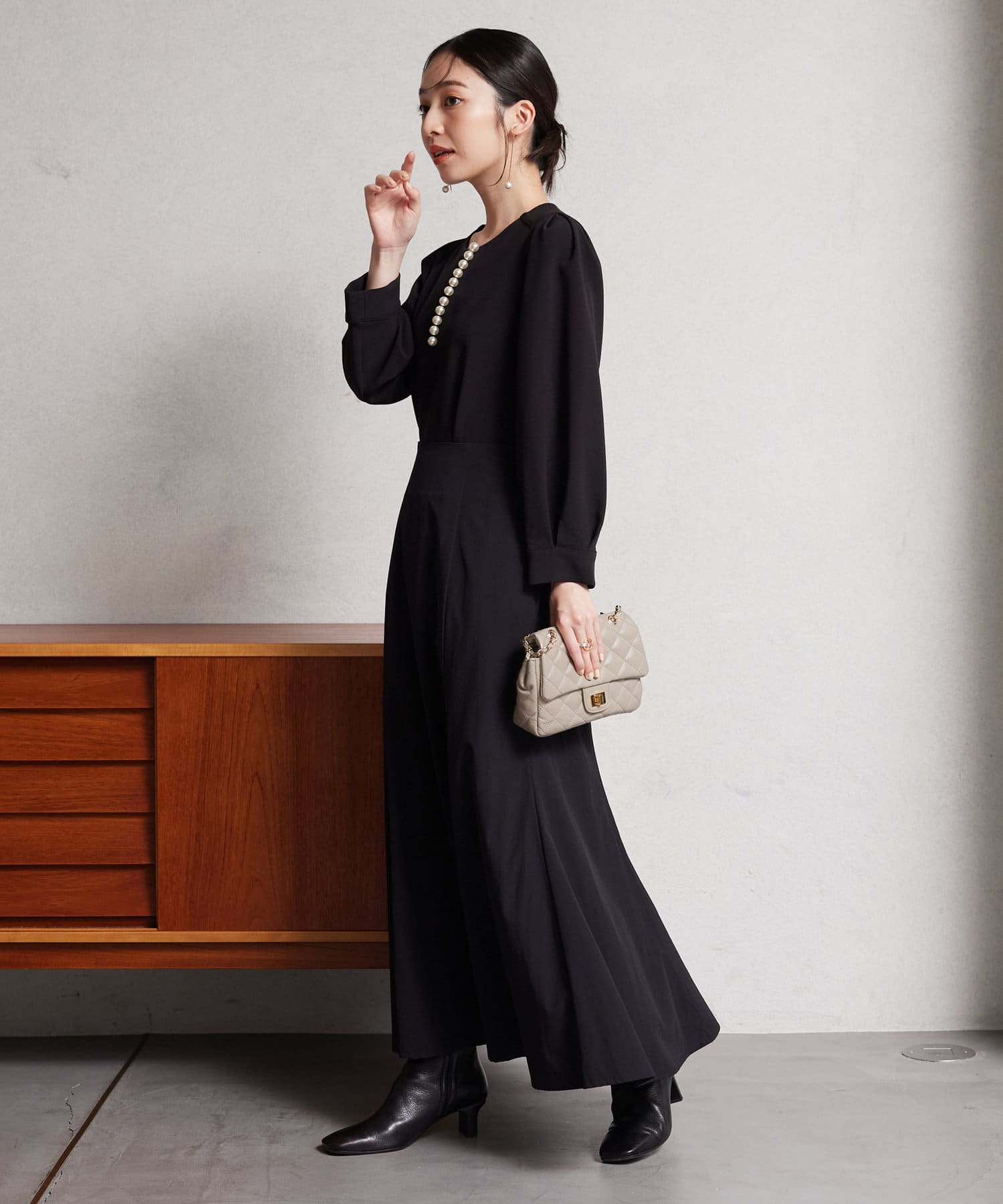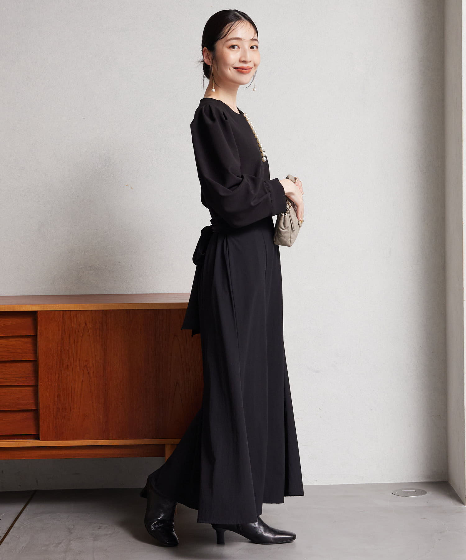 またマーメイドフレアラインで女性らしく、動くたびに揺れる裾が目を惹く一枚。