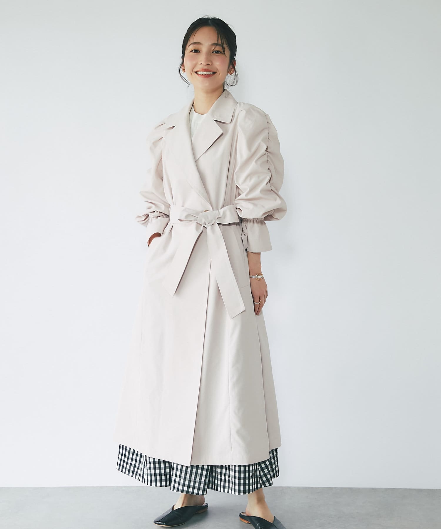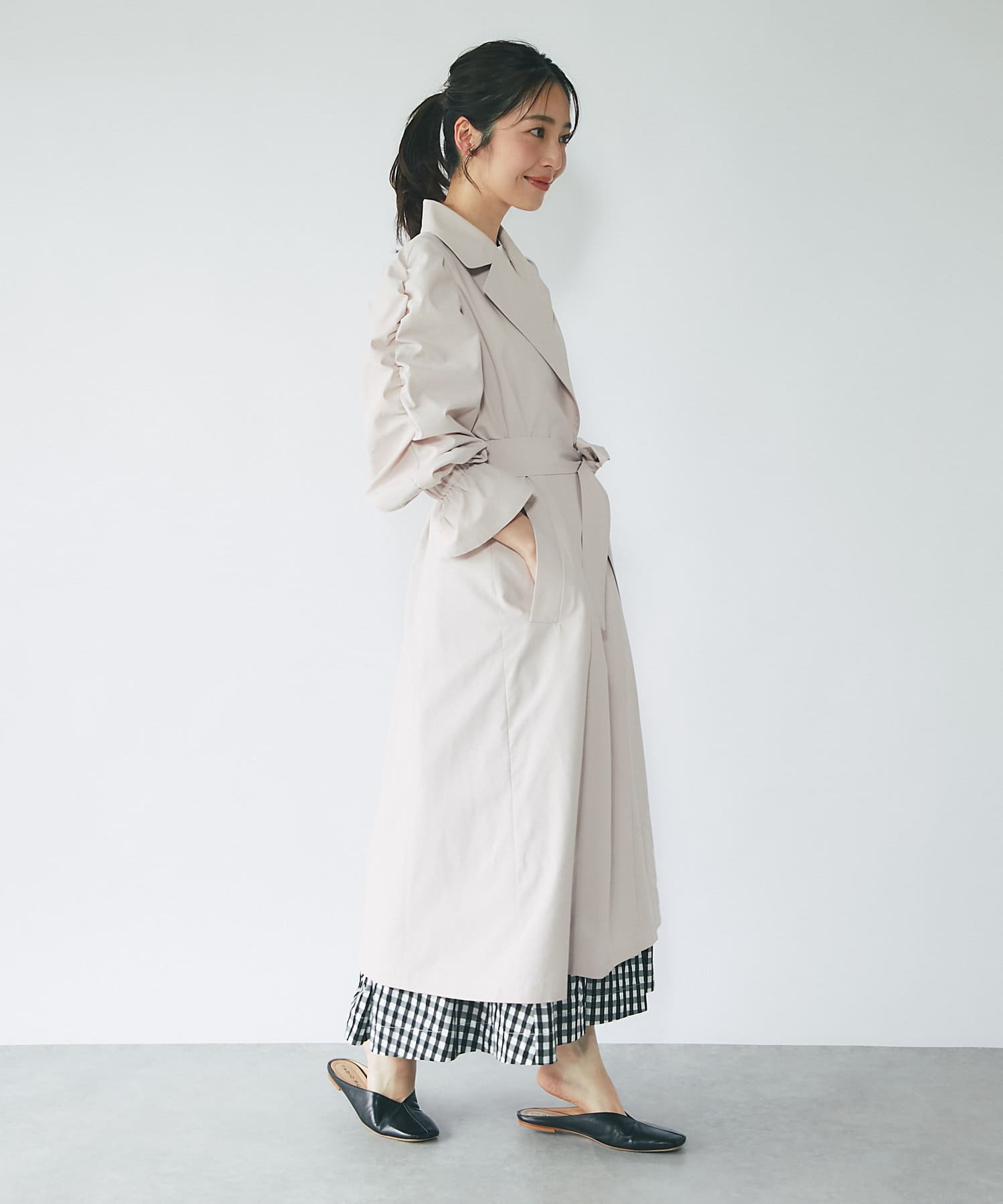 共布のベルトでシルエットに変化をつけ、様々な着こなしを楽しんで頂けます。