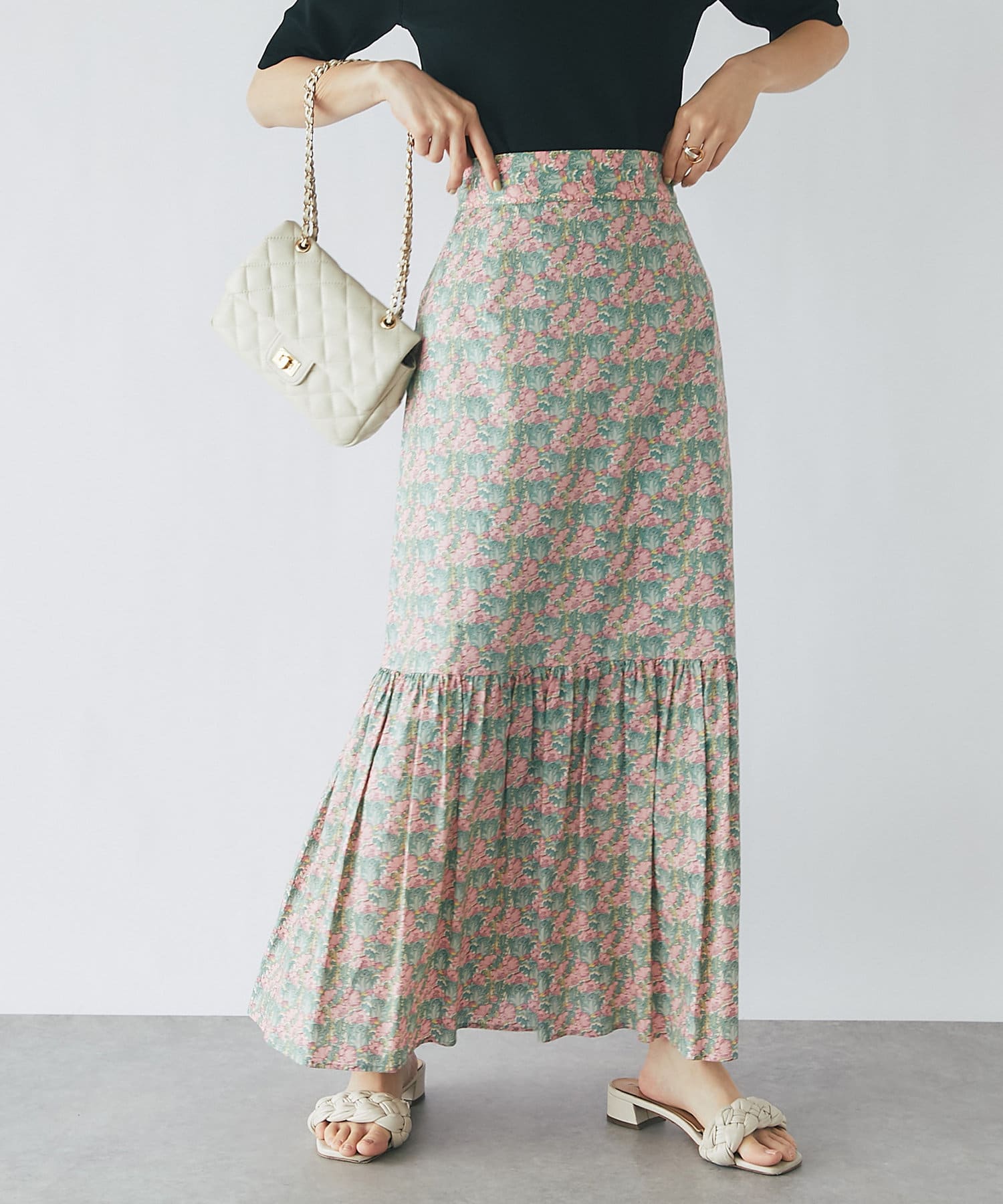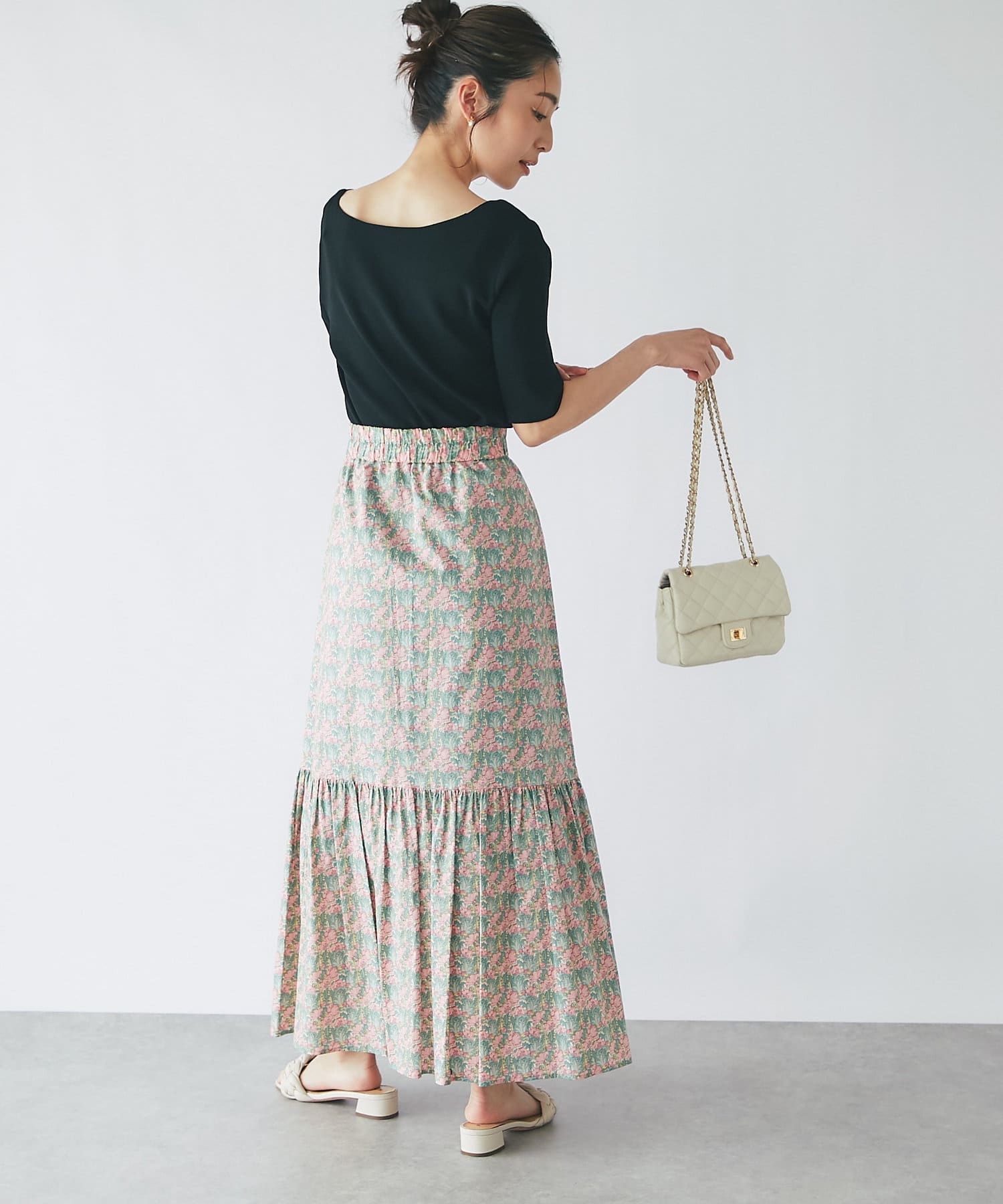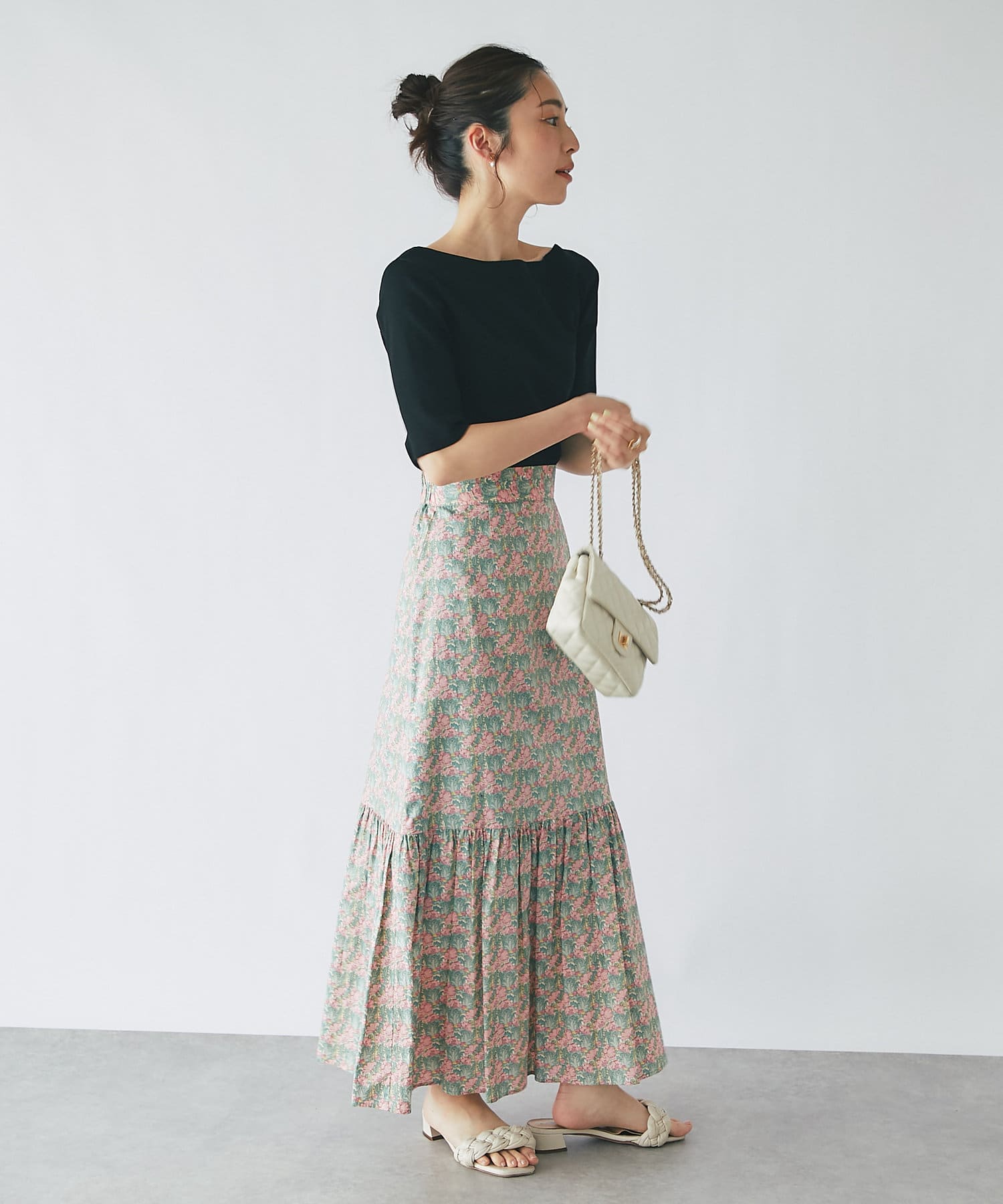 #大人カジュアル #きれいめカジュアル #上品カジュアル #上品 #フラワープリント #ロング丈 #スカート #ティアードスカート #マキシ丈 #マキシスカート