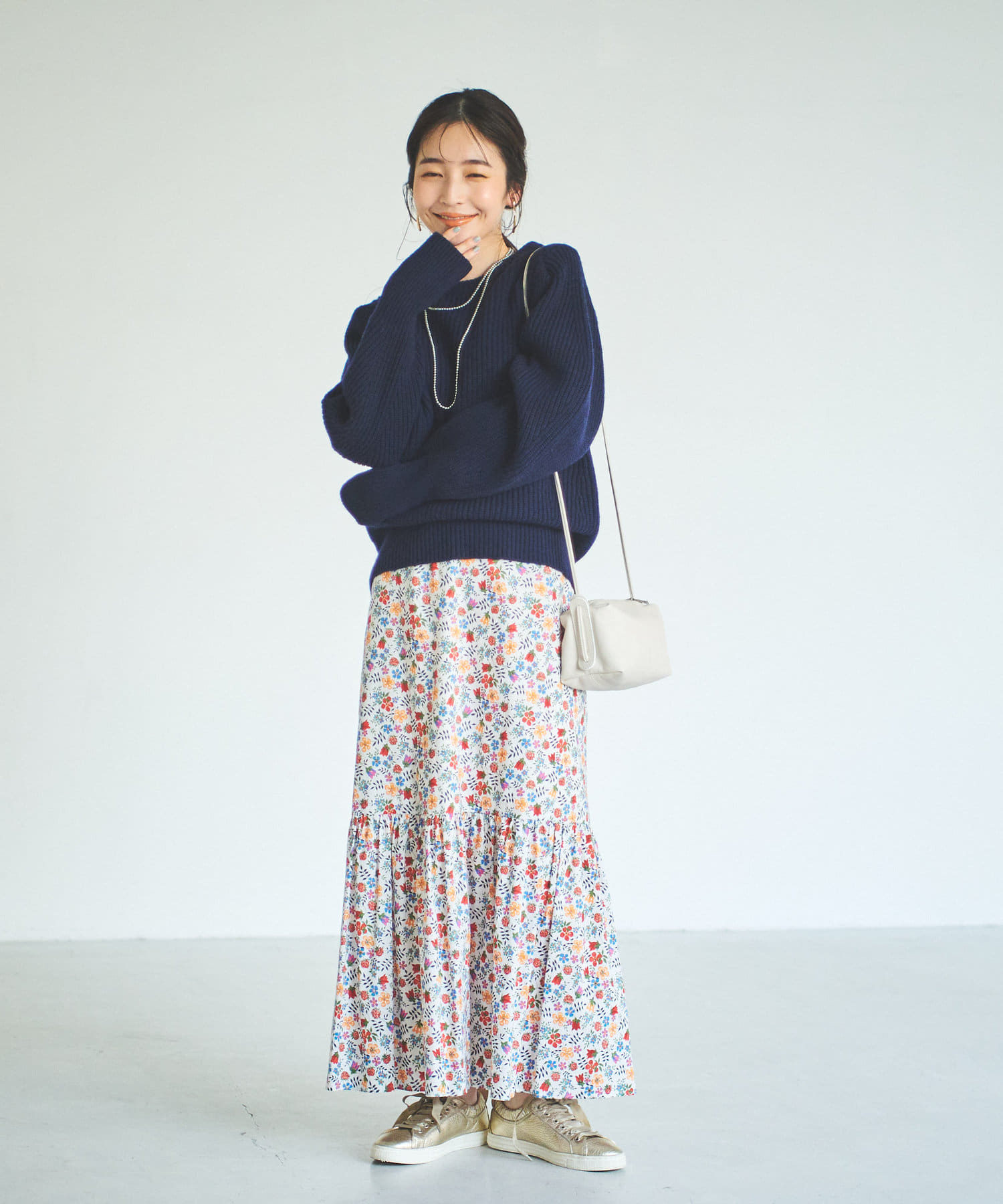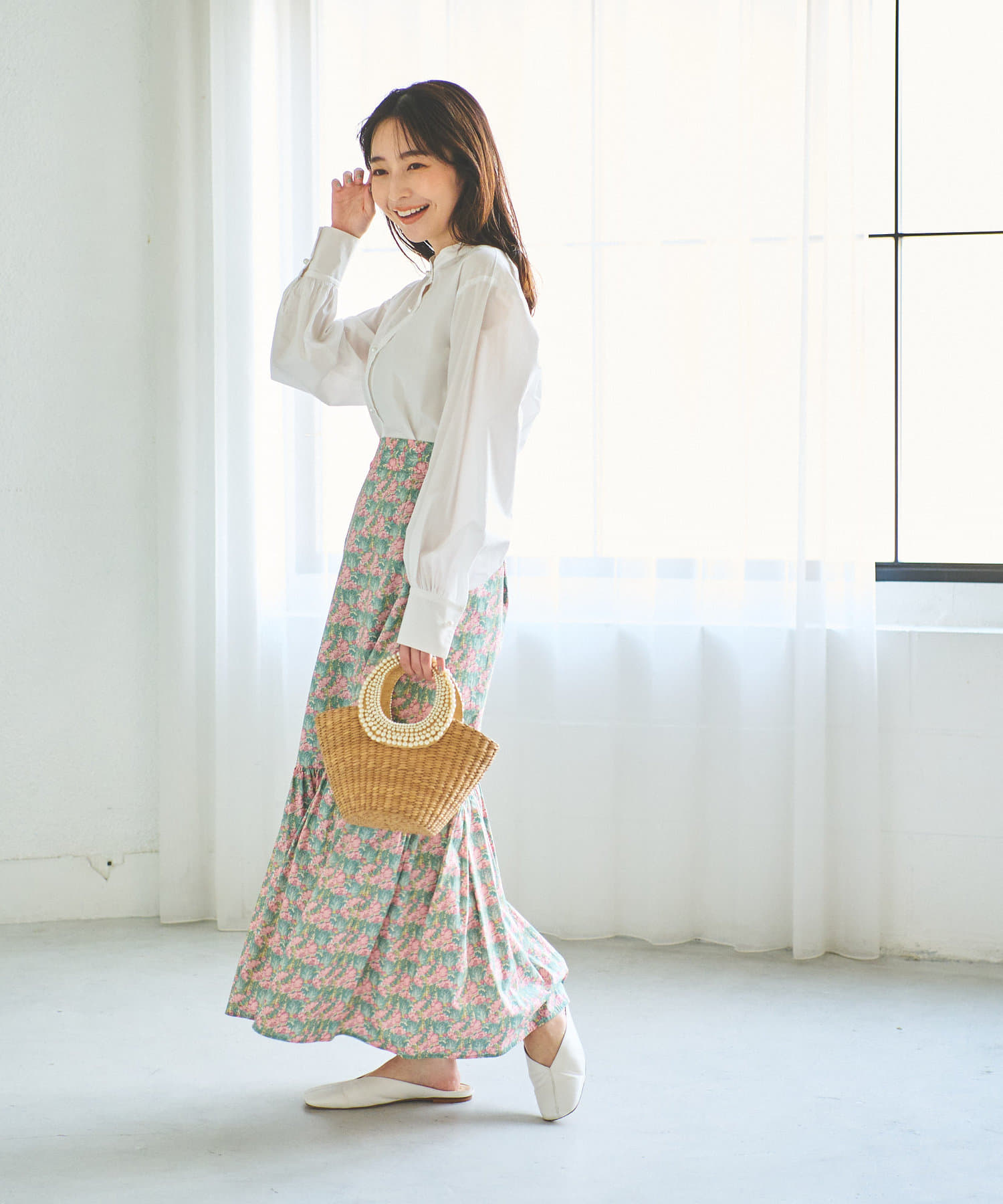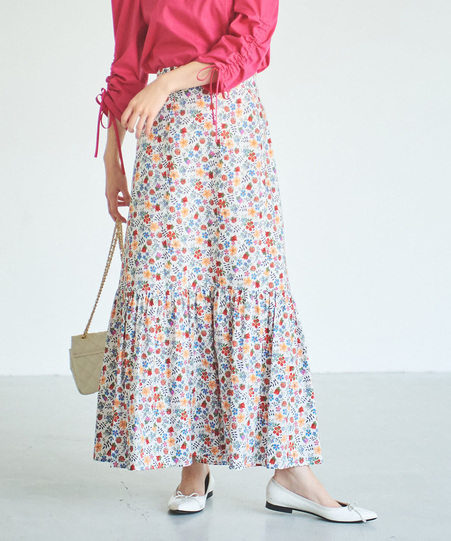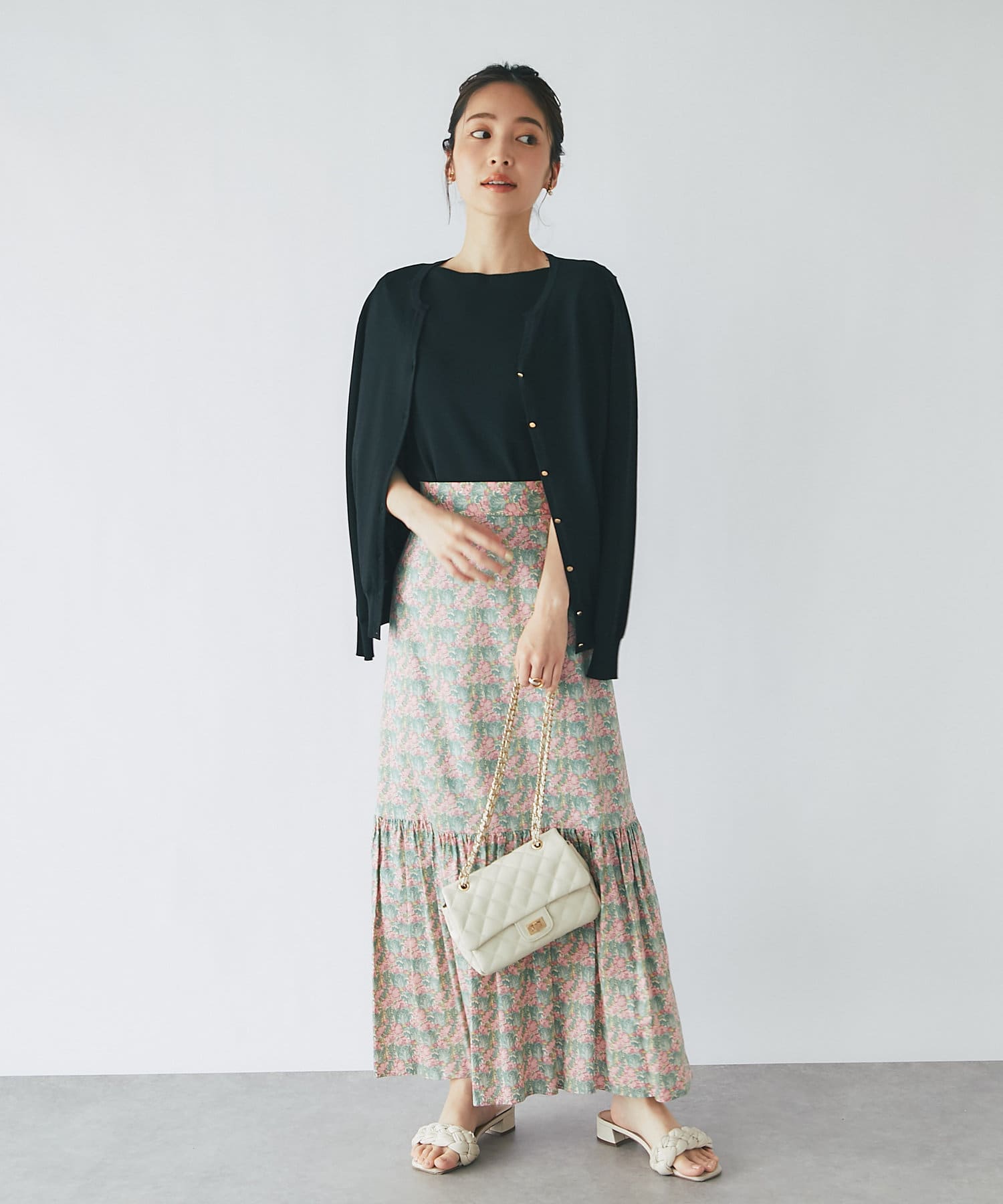 #大人カジュアル #きれいめカジュアル #上品カジュアル #上品 #フラワープリント #ロング丈 #スカート #ティアードスカート #マキシ丈 #マキシスカート