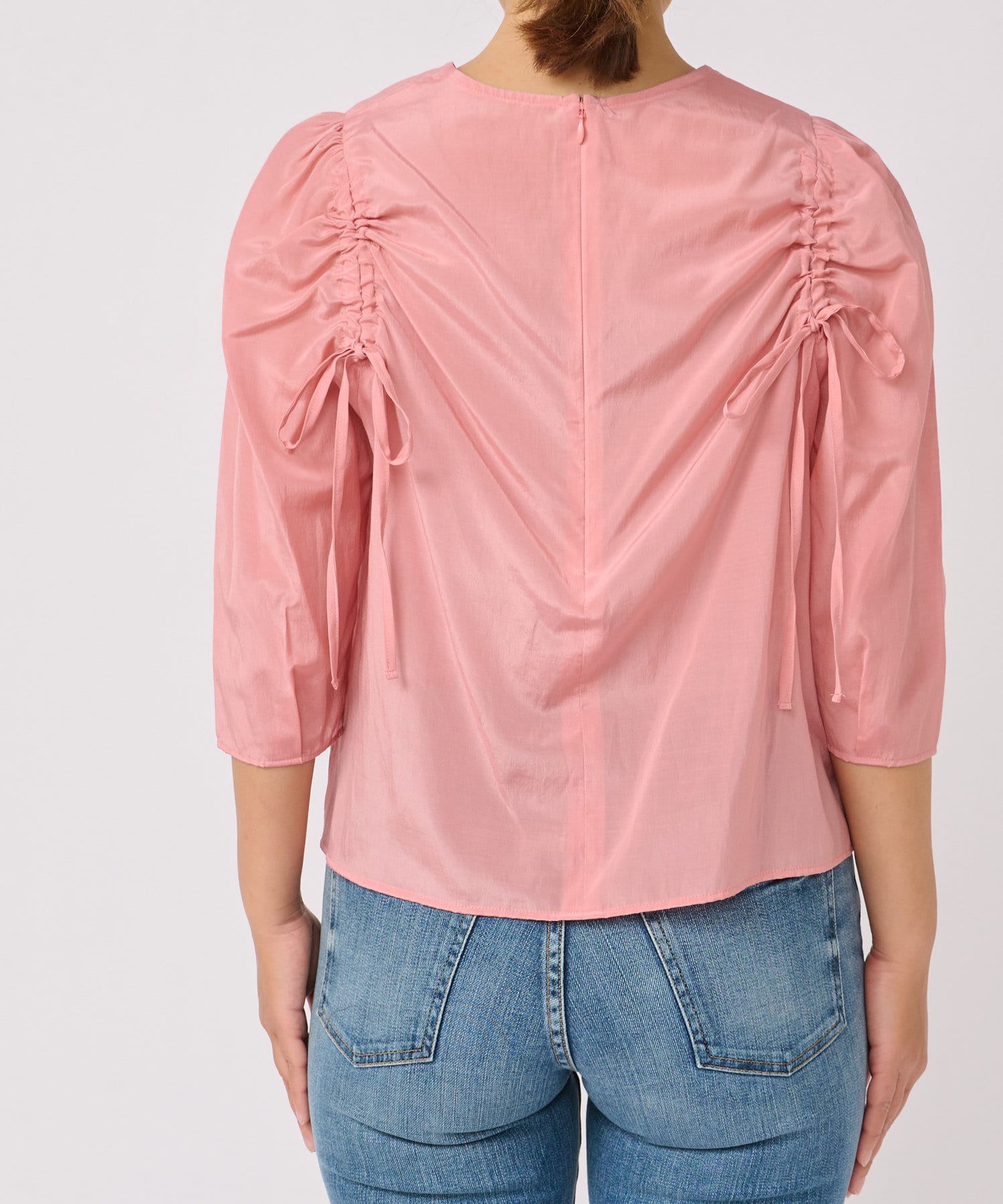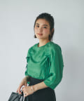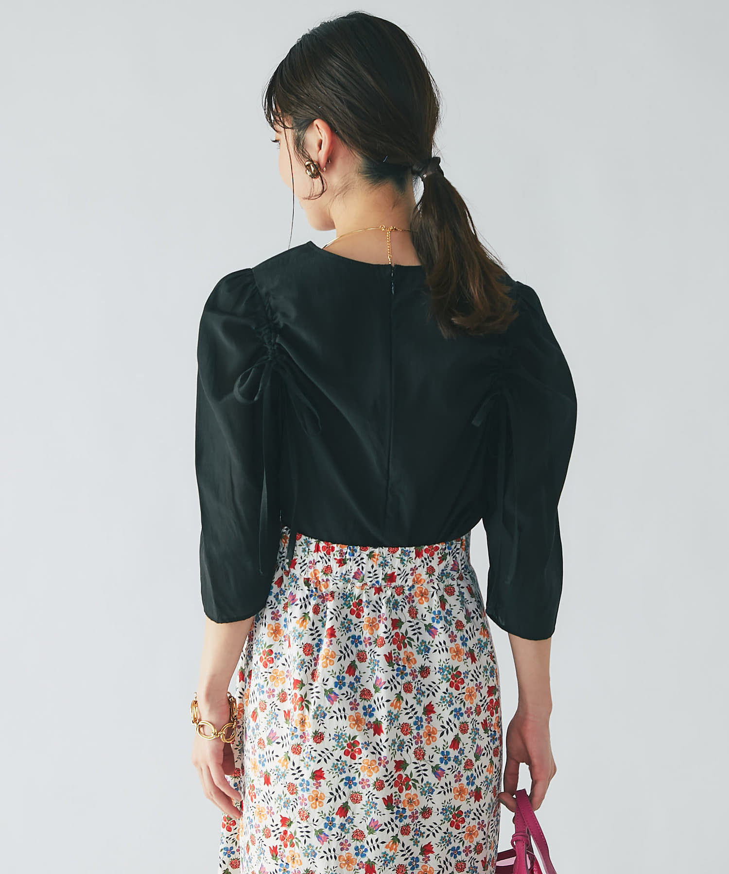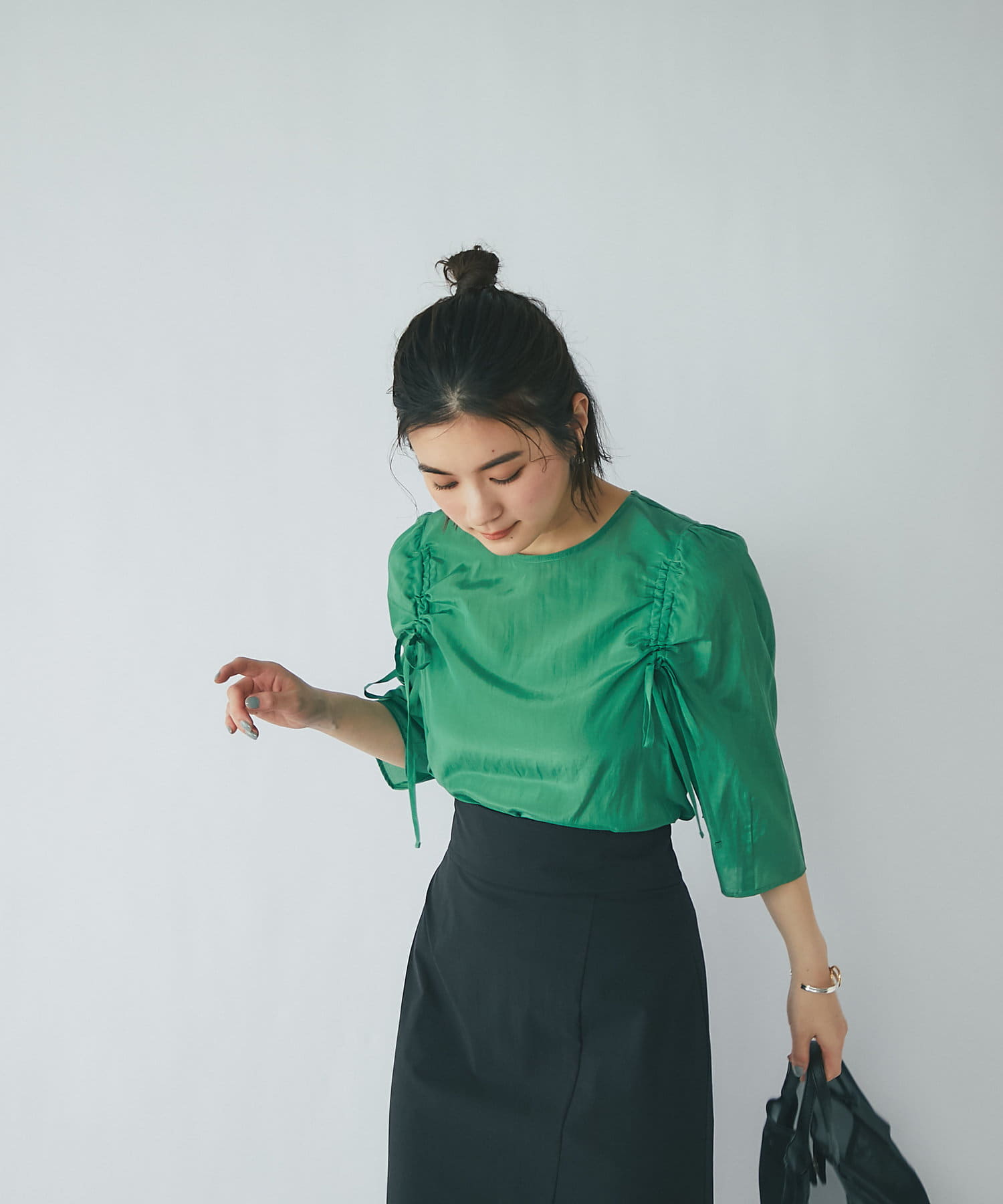 ギャザーを寄せた袖が女性らしい雰囲気に。
