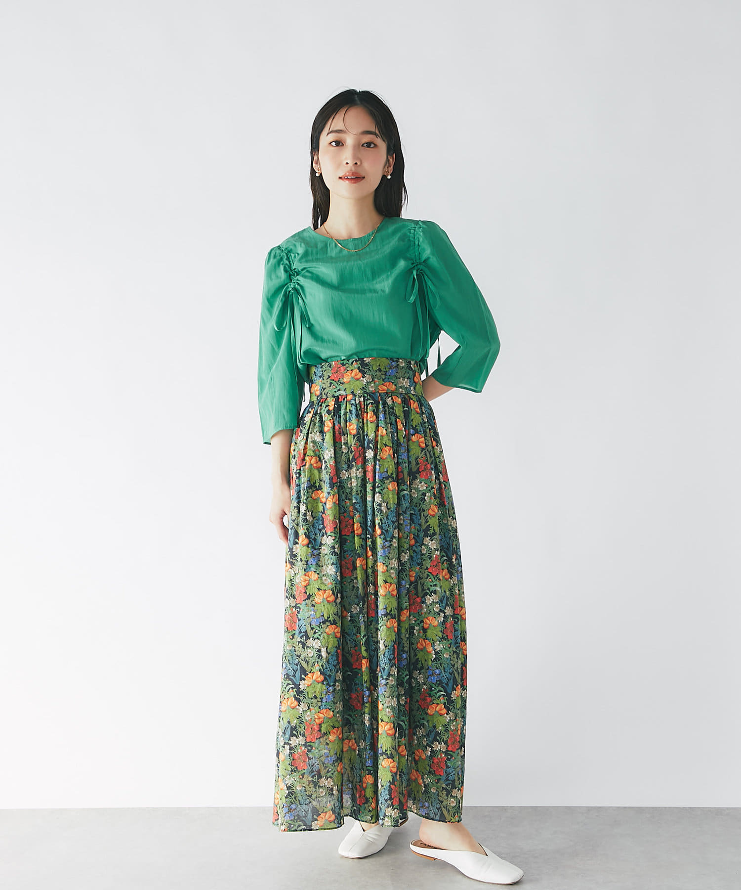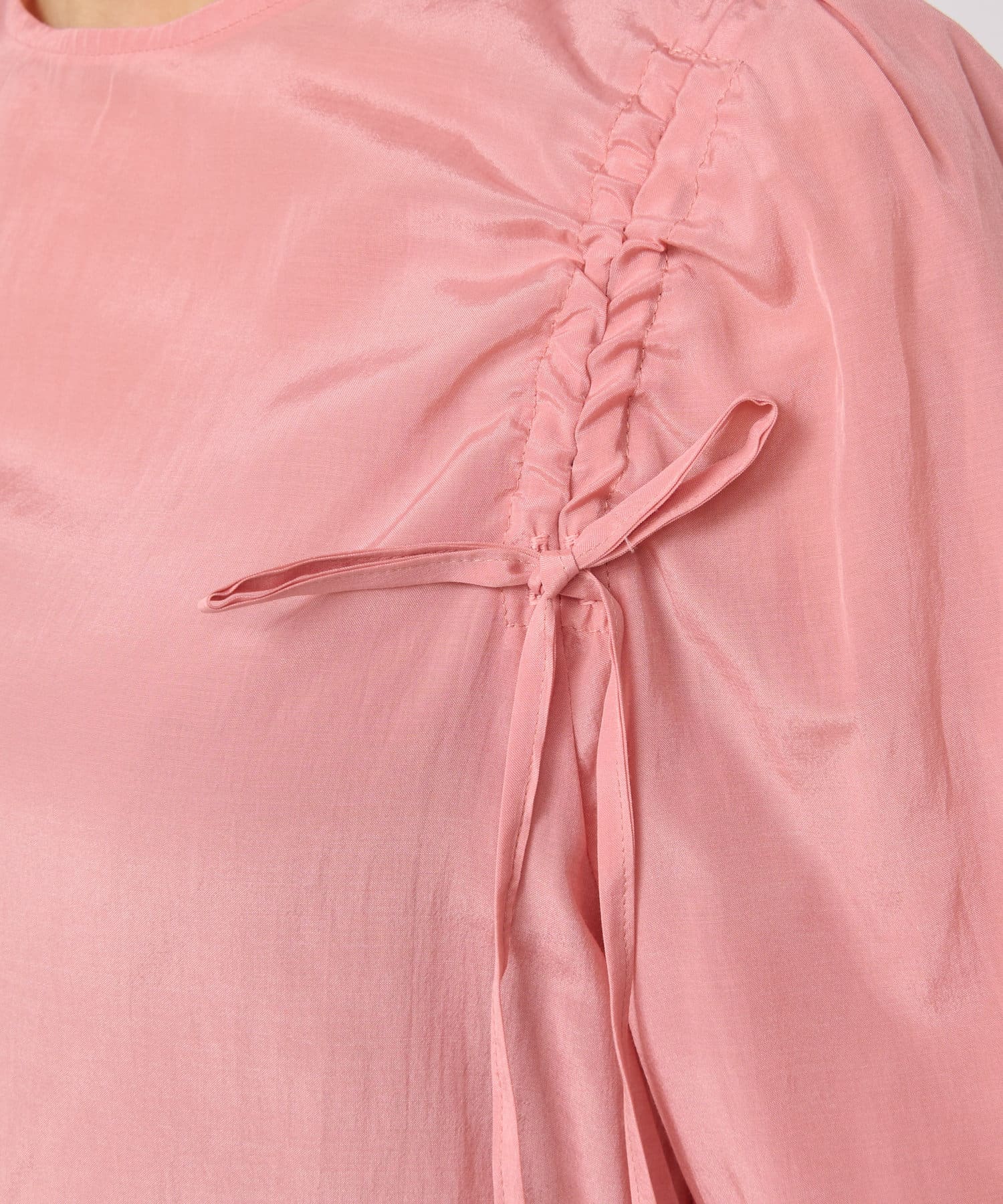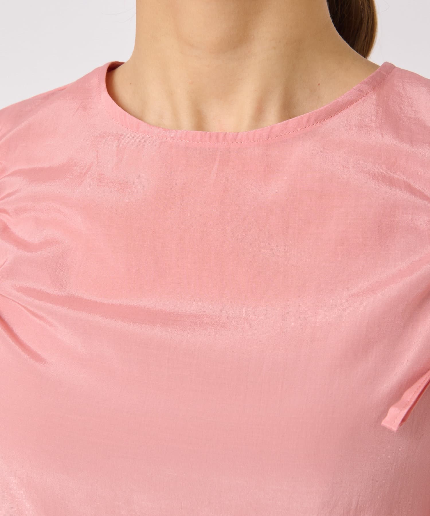ギャザーを寄せた袖が女性らしい雰囲気に。