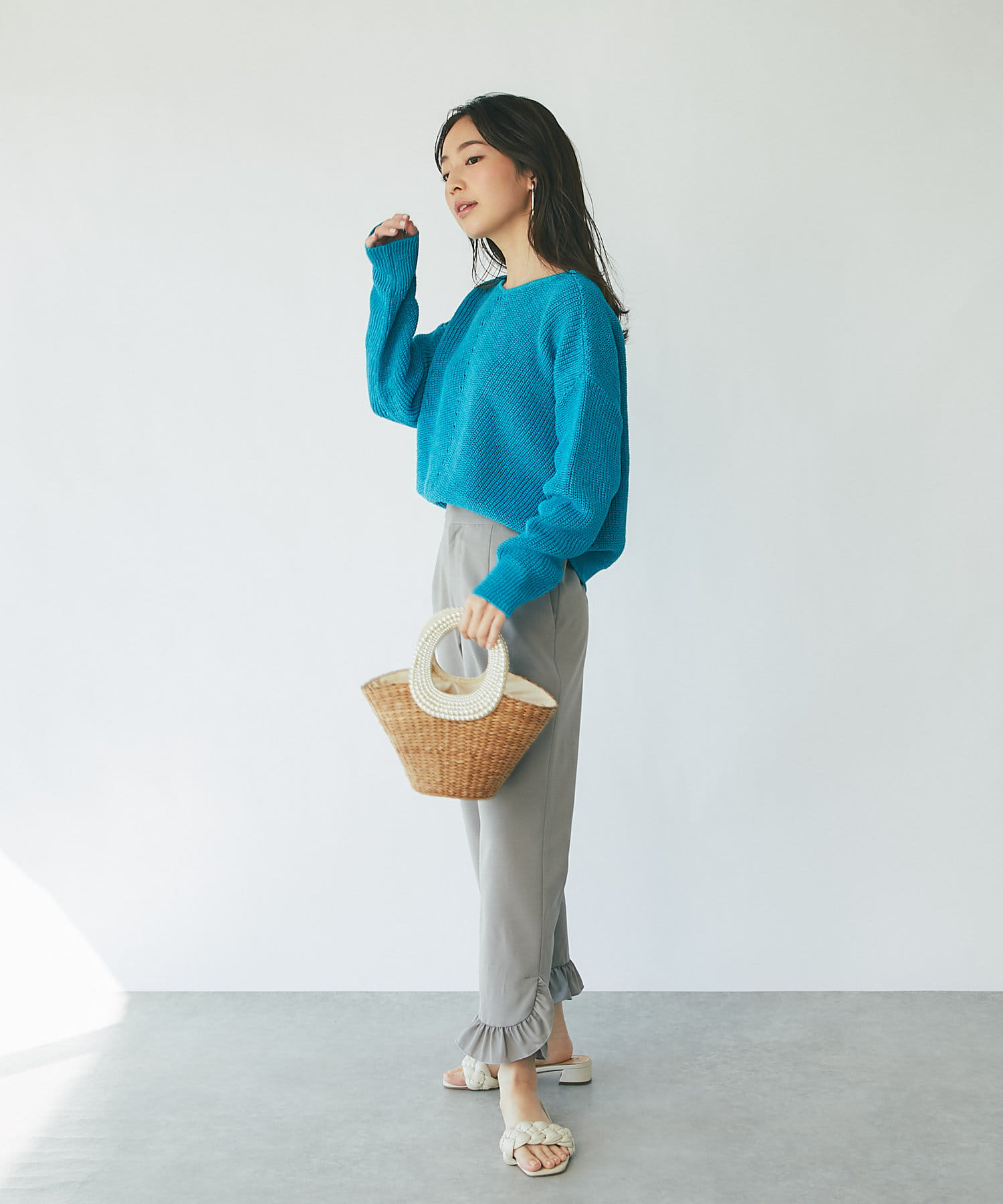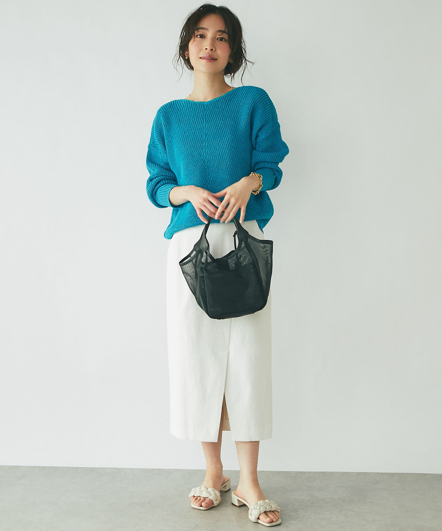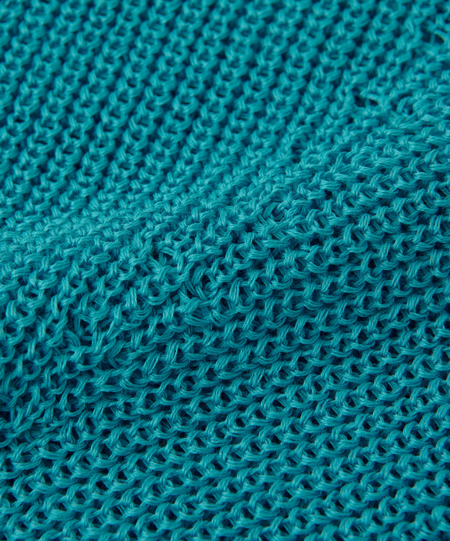 凹凸のある片畦の編地のミドルゲージで程よい透け感。