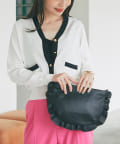 同素材のフリルが可愛いハーフムーン型のバッグ
