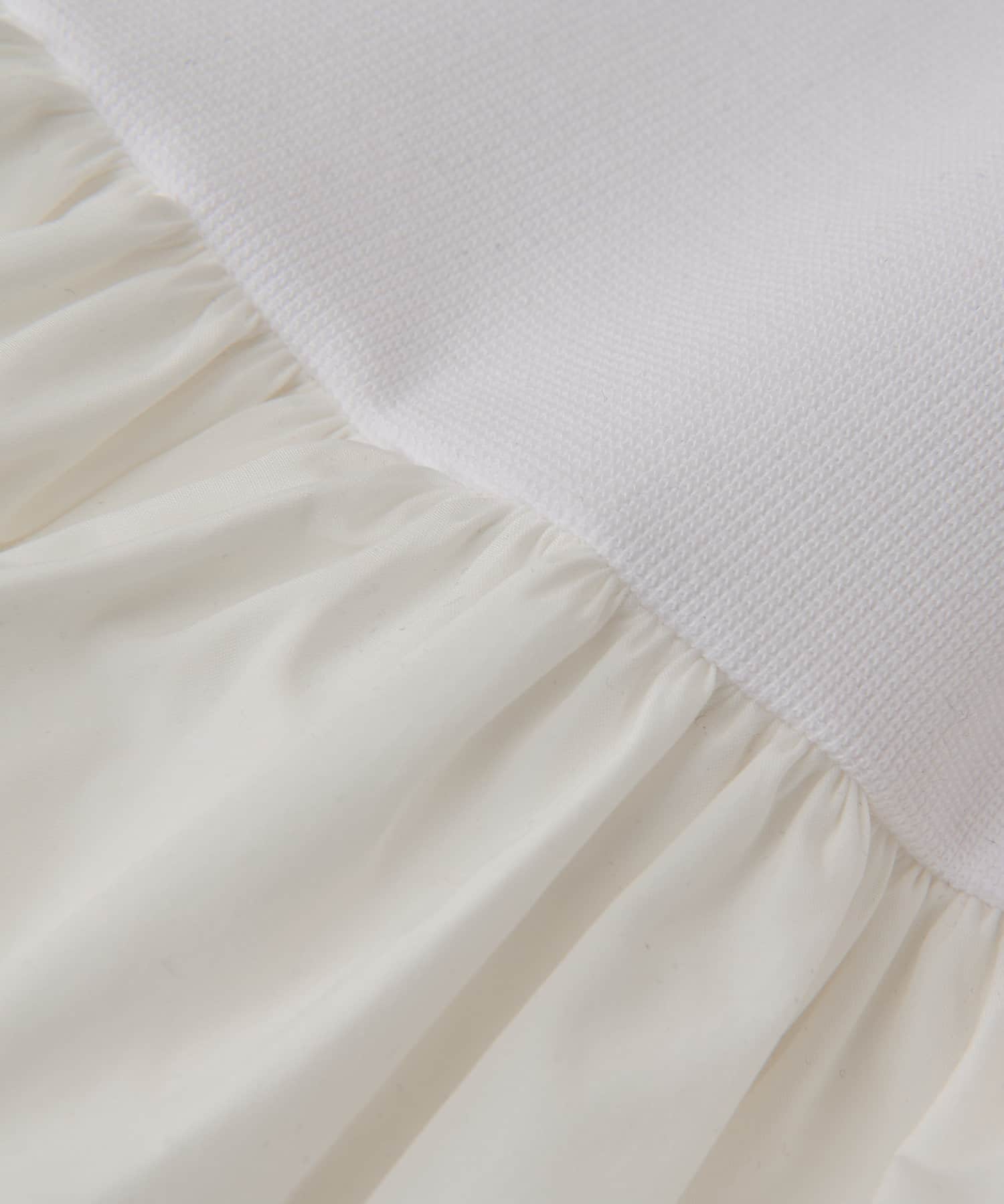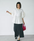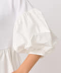 ボリュームのある袖とウエストの切り替えが女性らしい印象に。