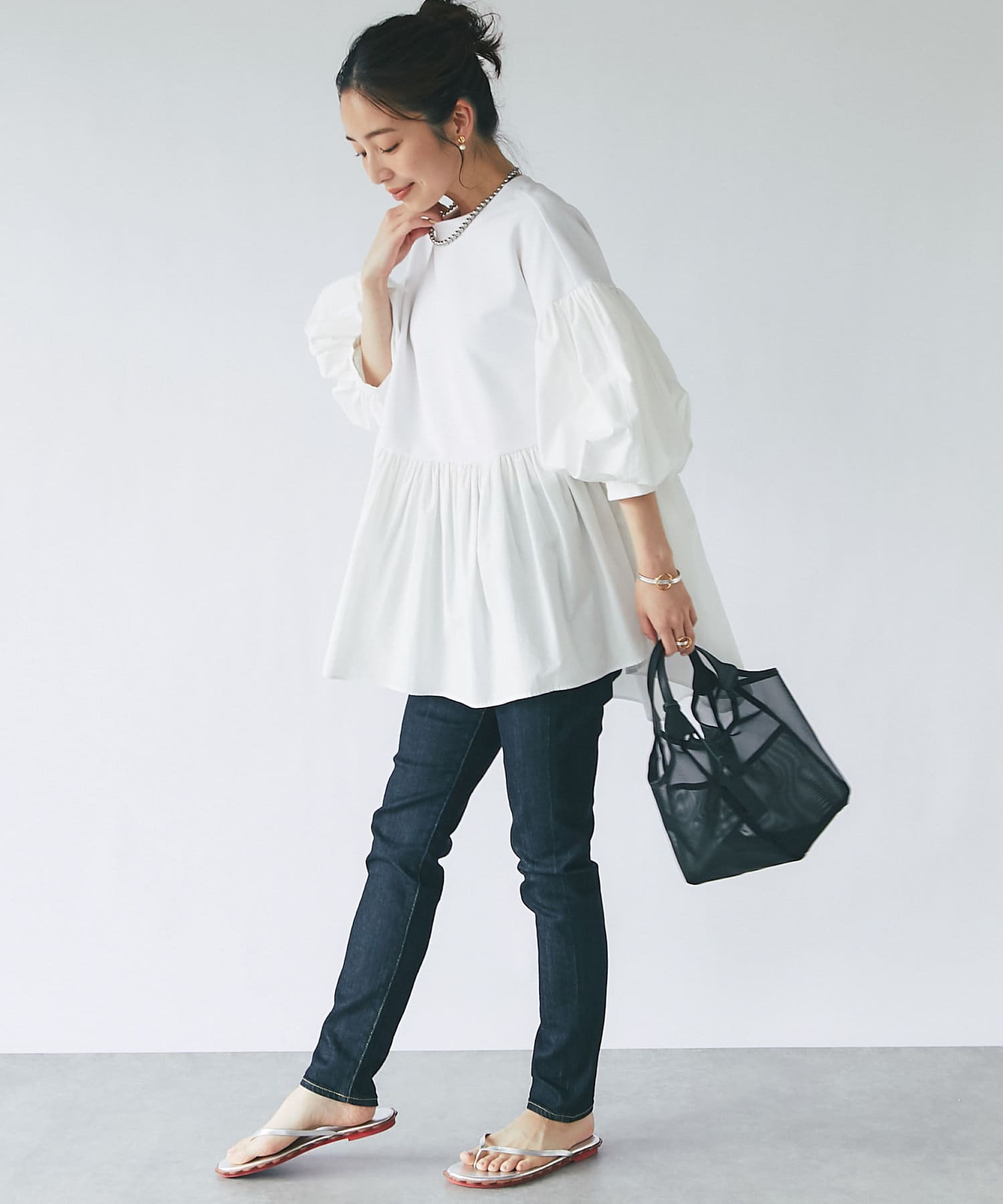 すっきりとしたボトムに合わせるとバランスよく着用いただけます◎