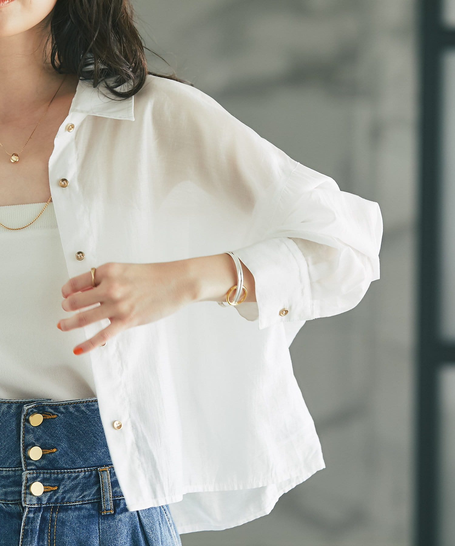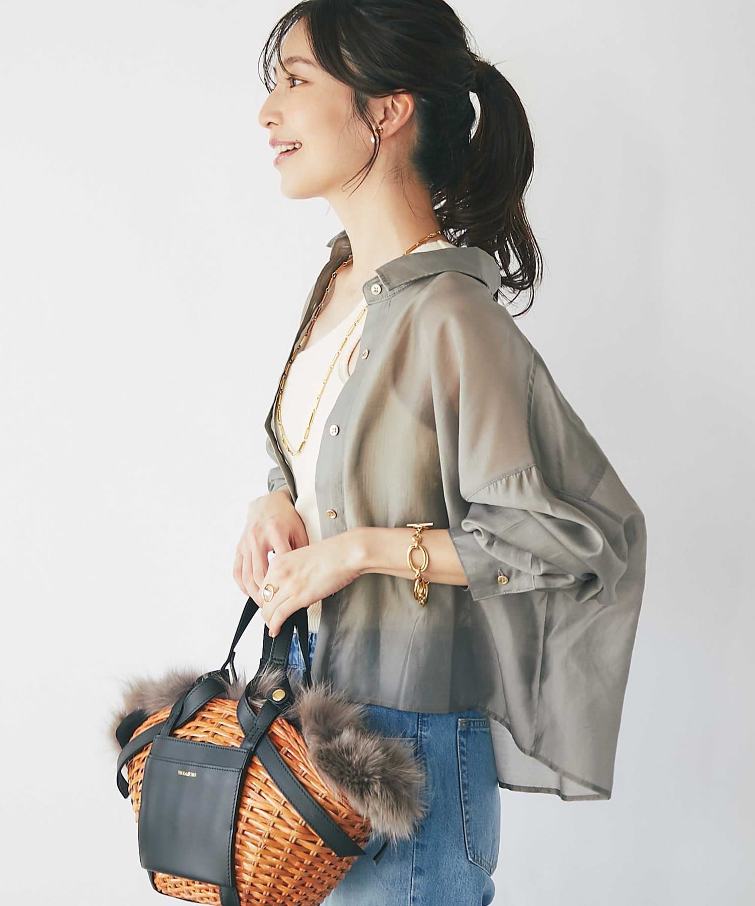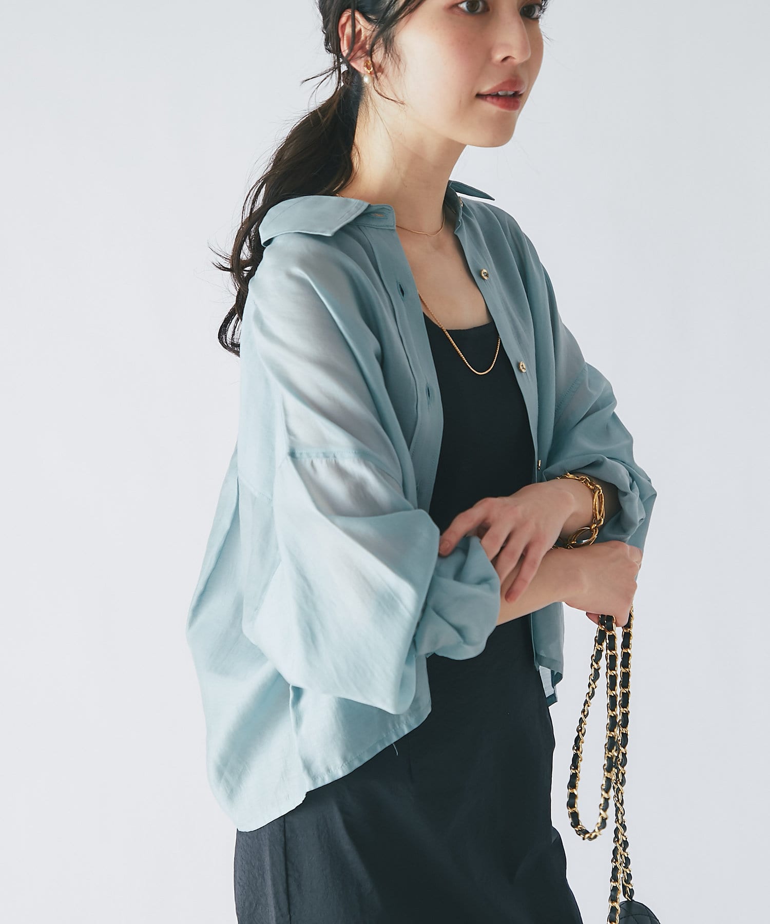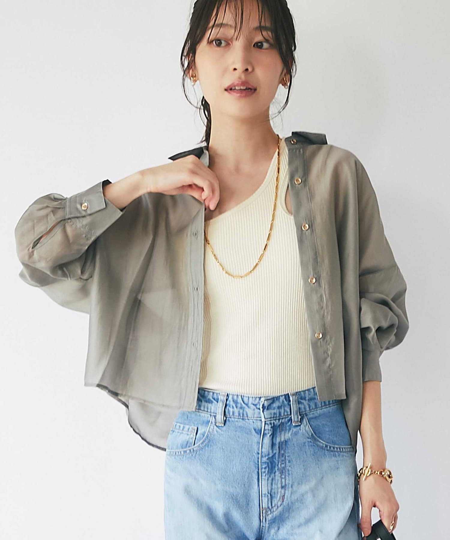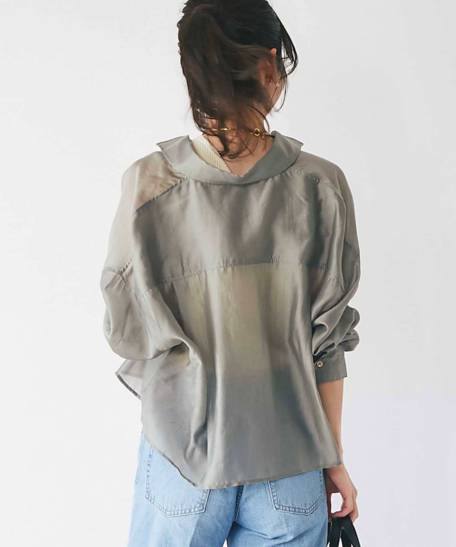 透け感があるので重ね着しても重い印象にならず、シーズン問わず着られるアイテム。